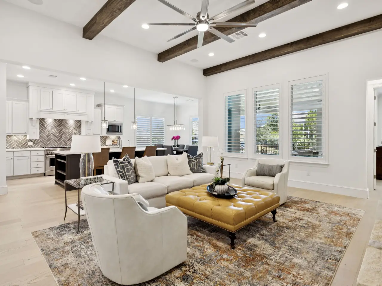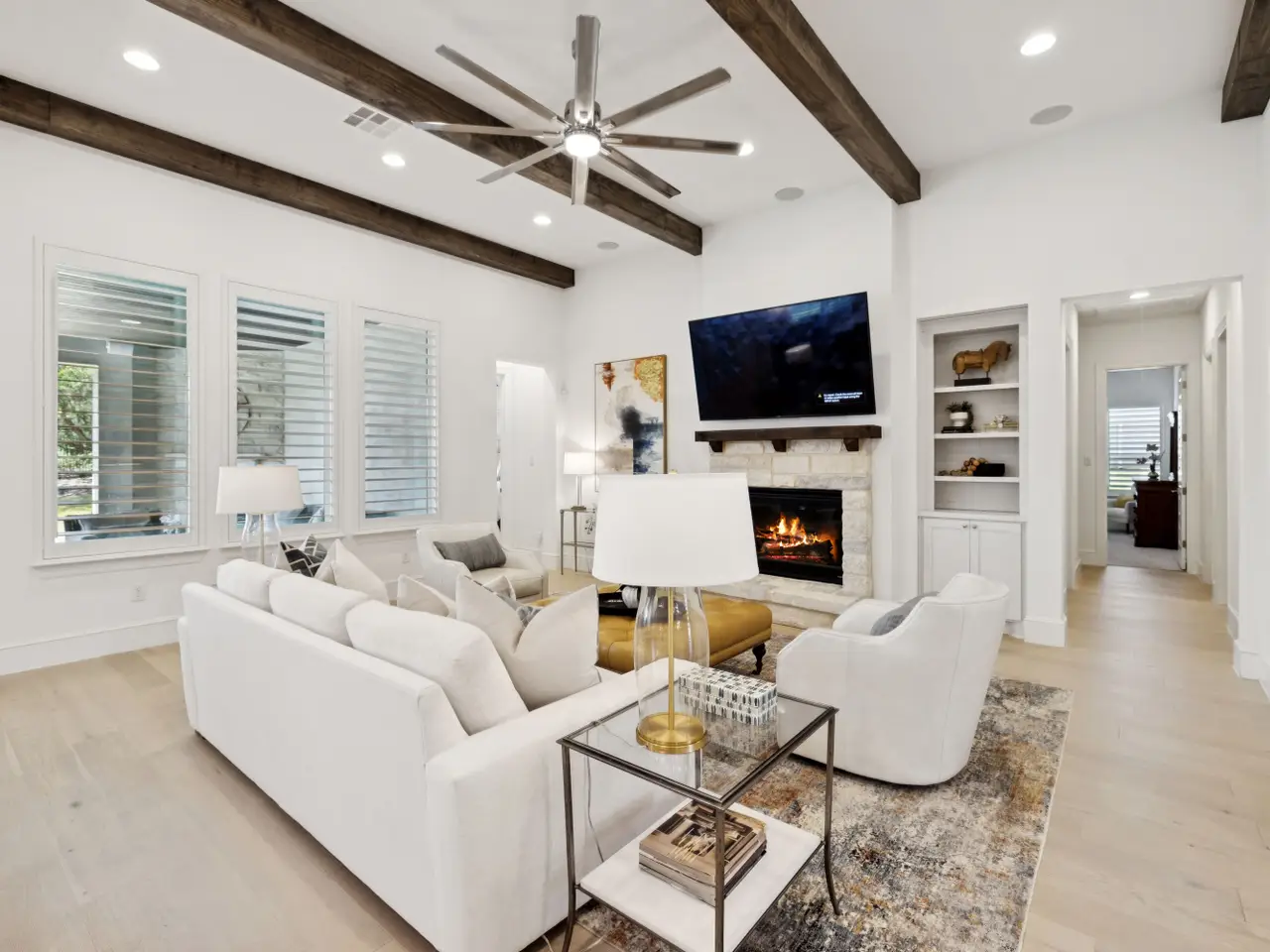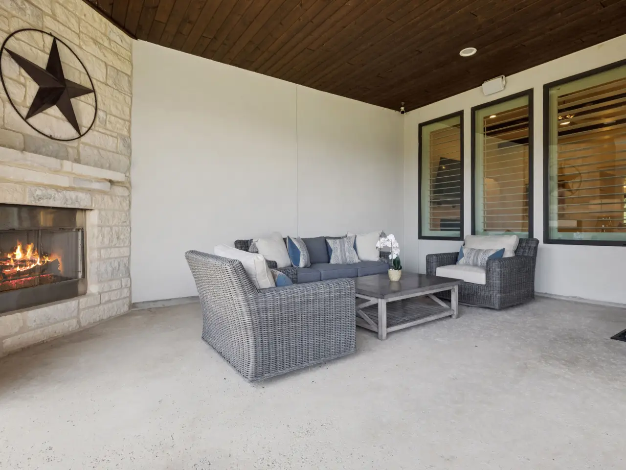 Step into modern luxury in the exclusive gated community of Palacios at Cibolo Canyons where timeless elegance meets modern convenience. Bathed in natural light, this home greets you with wide-plank wood floors, soaring ceilings, and an effortless flow designed for both refined entertaining and everyday living. A stately study with custom built-ins offers the perfect retreat, while the expansive kitchen is a chef’s dream - featuring stainless steel appliances, a six-burner gas stove with griddle, and a WiFi-controlled oven. The kitchen opens to a striking dining space, complemented by a large wet bar and floor-to-ceiling mirrors, creating a setting that feels equal parts chic and inviting. The primary suite is a sanctuary, showcasing a spa-inspired bathroom with dual vanities and an oversized walkthrough shower. The space leads out to a small garage that could easily be turned into a home gym. Three spacious secondary bedrooms, each with its own ensuite, ensure privacy and comfort for family or guests. A private media room completes the home-ideal for movie nights or game-day gatherings. Step outside on the back porch for an evening by the fire and outdoor kitchen. This home isn't just beautiful, it's built smart - with energy-efficient foam insulation and water-saving low-flow fixtures blending sustainability with sophistication. Enjoy two amenity centers, two adult pools, a kiddy pool with a splash pad and lazy river, fitness center, event space, and miles of paved walking/biking trails. Only one mile from the JW Marriott & TPC San Antonio and only two miles from restaurants and shopping. Come see what this beautiful home and community have to offer!