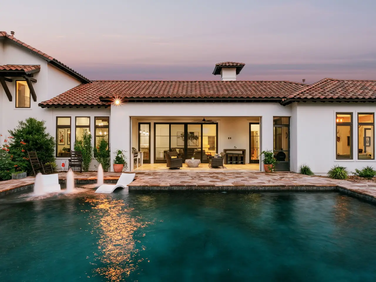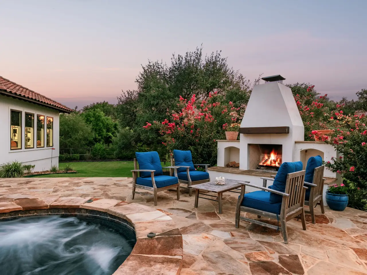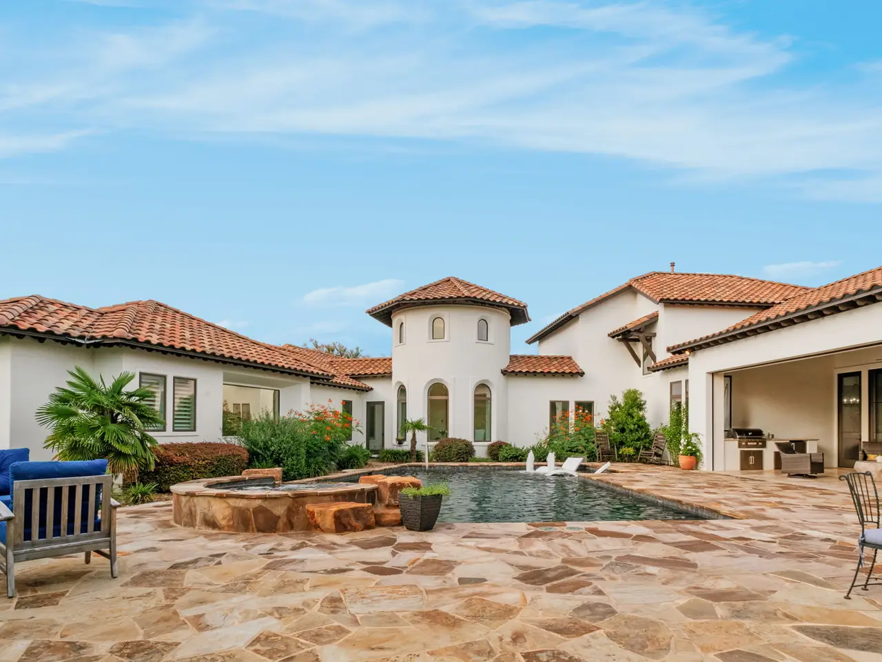 Welcome to luxury living in the prestigious gated community of The Huntington at Shavano Park. This exceptional estate, built by multi award-winning Burdick Homes, sits on a private, manicured 1-acre greenbelt lot designed for elegant entertaining and everyday resort-style living. The open-concept layout is anchored by a chef]s kitchen featuring Taj Mahal quartzite countertops, professional-grade stainless steel appliances, built-in refrigerator, double ovens, pot filler, gas cooking, farm sink, custom soft close Amaya cabinetry, and an oversized walk-in pantry-all overlooking a spacious family room with soaring ceilings and wood beam accents. Step outside to a true backyard oasis with a covered patio, full summer kitchen, outdoor fireplace, and a luxurious Keith Zars pool and spa surrounded by pristine landscaping and breathtaking greenbelt views. The elegant primary suite offers a spa-like bath with an oversized walk-in shower, soaking tub, dual vanities, and custom-designed closet. Flooring includes custom rich hickory and French Oak wide plank hardwood flooring, hand crank windows throughout, and a private safe room. A large secondary suite with ensuite bath and high ceilings on the main level provides privacy for guests or multigenerational living. Additional highlights include a dedicated Pilates studio and gym with serene backyard views, a secondary living area with built-in bar, an abundance of storage, and sliding glass doors lead to the pool/spa area. All of this in an unbeatable location just minutes from The Rim, the Rock at La Cantera, Fiesta Texas, and UTSA. KEY FEATURES: 5 Bedrooms, 4 1/2 bathrooms, 6,595 square feet, 3-car garage, 1.14 acre Private Greenbelt Lot, Keith Zars Pool & Spa, Outdoor Fireplace & Summer Kitchen, Home Gym/Pilates Studio.