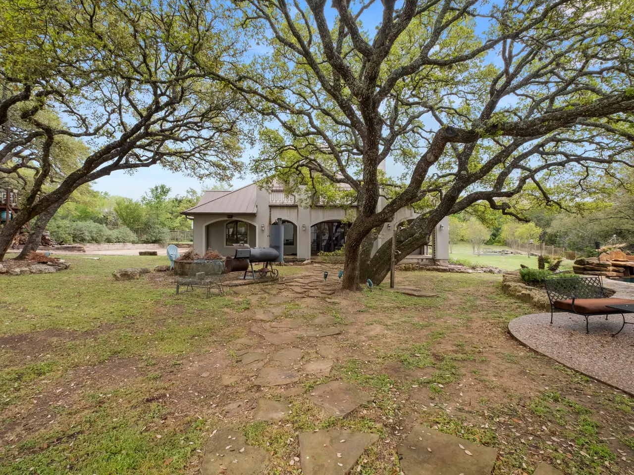 Welcome to 25052 Whistling Wind, a Mediterranean masterpiece nestled in the exclusive Hidden Spring Estates. This gated community gem, crafted by the esteemed Malatek Home Builders, rests on nearly 3 acres of lush, picturesque land, offering breathtaking views of the enchanting Hill Country. As you enter this luxurious estate, you'll find two distinct residences: a grand main house and a charming guest house. The main house, spanning approximately 3,200 square feet, boasts a thoughtfully designed floor plan. The primary suite, located on the first floor, serves as a serene retreat with a sumptuous en-suite bathroom featuring an oversized garden tub and a stand-up shower. The main level also includes an elegant dining room, perfect for cozy dinners, and a spacious island kitchen that flows seamlessly into the inviting living area, ideal for entertaining loved ones. Upstairs, the home offers comfortable and private secondary bedrooms. Step outside to find an expansive wooden deck, creating an intimate setting for special gatherings and memorable moments. Beyond the deck, a generous sparkling pool awaits, heated for year-round enjoyment and relaxation. Additional outdoor amenities include an in-ground trampoline, a dog run, and a tree house. The main house includes an attached 2-car garage. Designed with the famous Ballory Hotel in New York City mind, the nearly 1,600-square-foot guest house, ensures that visitors feel right at home with every comfort provided. It features a full kitchen and family room, two bedrooms downstairs, and an upstairs loft that can serve as an office, media room, or third bedroom. The walkout balcony on the second level provides extensive views of the surrounding hill country. The guest house also includes an attached 2-car garage. A private utility drive provides convenient access for contractors needing to service the property. 25052 Whistling Wind is a rare sanctuary in San Antonio, offering an exquisite blend of luxury, space, and tranquility amidst the stunning beauty of the Hill Country. Welcome home.