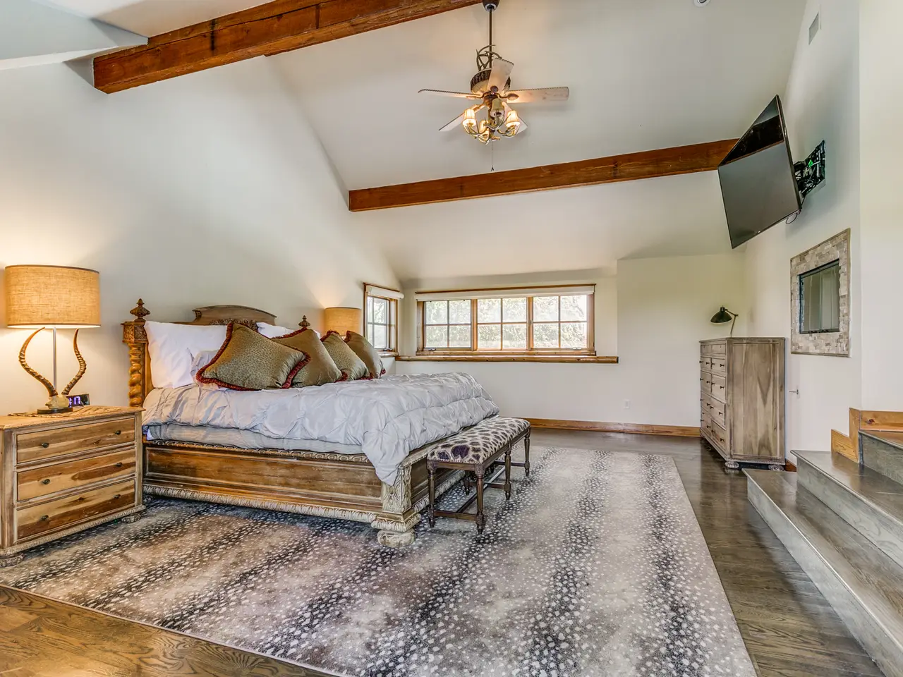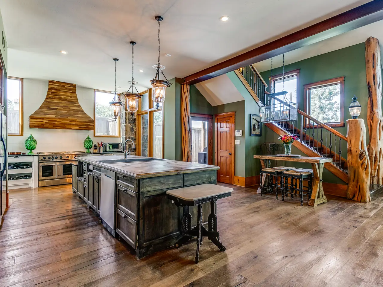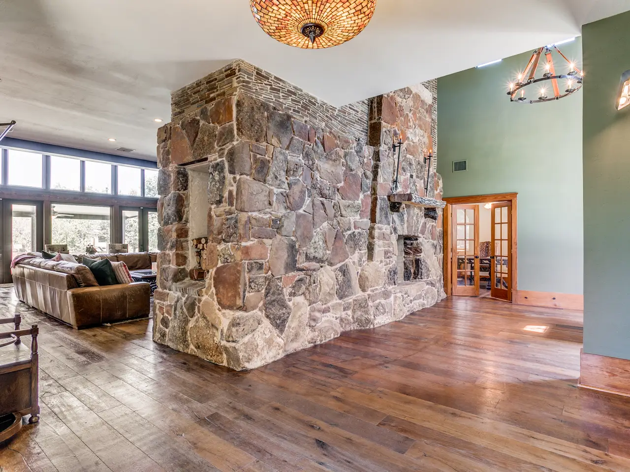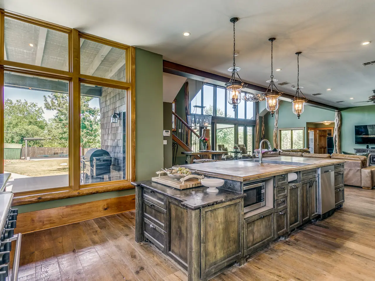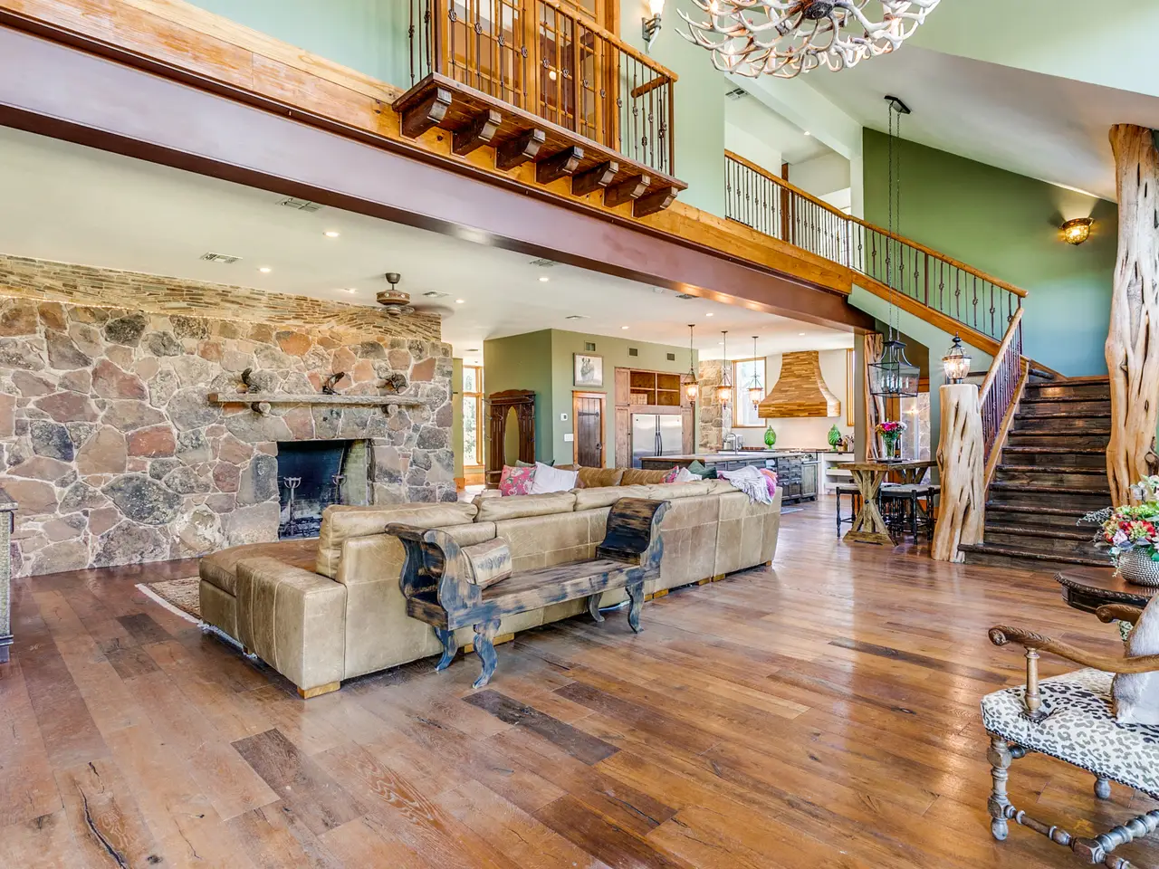 Discover this striking custom-designed home nestled on a sprawling lot in the coveted community of Terrell Hills. The expressive stone exterior sets the stage for the exquisite craftsmanship found inside. Step into a grand interior featuring soaring ceilings with exposed beams, walls of windows that bring in abundant natural light, and rich wide-plank wood flooring. The impressive culinary kitchen is a chef's dream, boasting a commercial-grade gas stove, a stunning wood-detailed vent hood, a spacious gathering island, chic open shelving, and a large walk-in pantry. Designed for effortless entertaining, the kitchen seamlessly flows into the living and dining areas, anchored by dual-sided stone fireplaces that add warmth and elegance. The main level offers three spacious bedrooms, while the primary suite occupies the upper level, showcasing a vaulted ceiling, a cozy fireplace, and a luxurious spa-inspired bath with a soaking tub, walk-in shower, dual vanities, and an expansive walk-in closet. Ascend to the third-floor office or fitness room, which opens to a private balcony offering breathtaking city views. Step outside to the covered patio, perfect for year-round enjoyment, overlooking a private, beautifully landscaped yard with mature trees. This one-of-a-kind property is a true retreat, offering both style and serenity. Possibility exists to pay tuition to attend Alamo Heights Schools. Contact AHISD for more details.