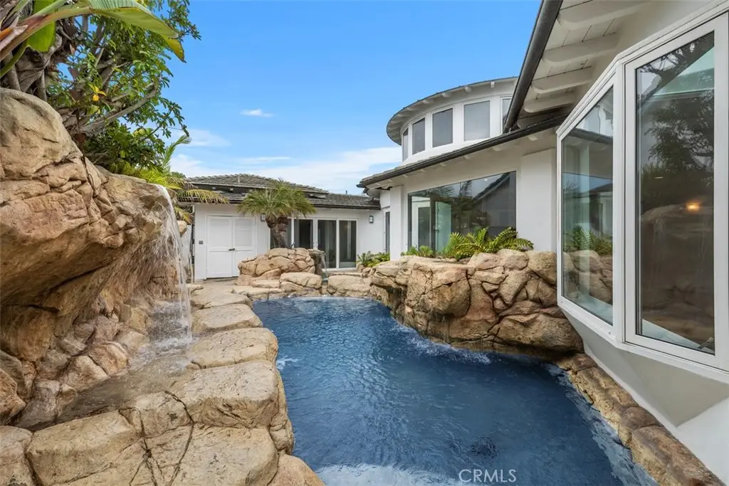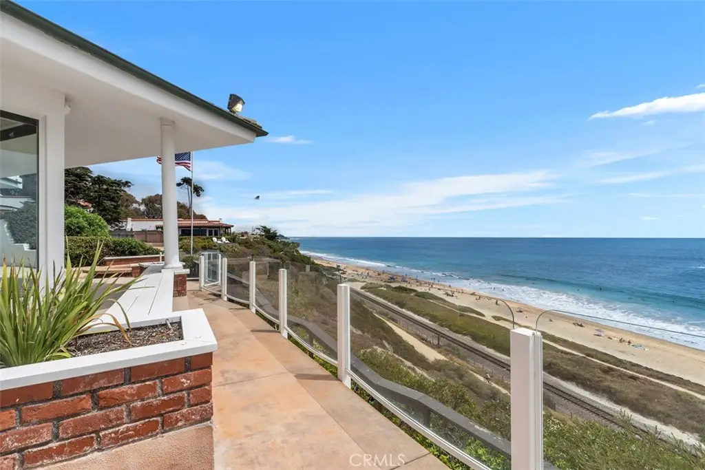 Stunning Oceanfront Estate with Panoramic Views. Exquisite sapphire-blue ocean views and sophisticated design converge in this one-of-a-kind oceanfront estate, masterfully crafted by renowned architect John Garcia, the amenities area too many to list but for one to experience. Set on a premier lot overlooking Seal Rock, Riviera Beach, and Lost Winds Beach. And captivation views of the San Clemente Pier and Dana Point Harbor, this custom residence offers the pinnacle of Southern California coastal living. Step inside to find floor-to-ceiling windows, a light-filled open floor plan featuring clean lines, generous living spaces, and seamless indoor-outdoor flow. The dramatic great room boasts wall-to-wall windows for amazing views of the Pacific Ocean and sliding glass doors opening to an expansive oceanfront patio with multiple levels of decks. The chef's kitchen and adjacent sunroom/breakfast room--with wet bar--make everyday living and entertaining a breeze. The sunroom/breakfast room is accessible to the interior courtyard, providing a serene private oasis with a rock-scape pool, spa, and water elements, this room opens to another family room with fireplace and is perfect for relaxation or entertaining. The opulent primary suite occupies a prime ocean-facing position and includes a private balcony with 180-degree coastline-whitewater views, step into a spa-inspired marble jacuzzi tub with adjacent large dual head shower, also with captivating panoramic views. Two oversized secondary suites offer flexibility and privacy: one with a built-in bed, beautiful stone shower, wine fridge, and custom-built-ins. This suite is ideal for a guest retreat or executive office. The second suite also features a built-in bed, in-suite bathroom, oversized tub/shower combination and direct access to the poolside courtyard and tranquil water features. Private steps from the back patio lead directly to the sand, offering unmatched access to one of San Clemente's most coveted family-friendly beaches--ideal for surfing, paddleboarding, swimming, or sunset strolls. All just minutes from downtown San Clemente, the pier, local dining, shopping, the train station, and the coastal amenities of Dana Point and San Juan Capistrano. NO MELLO ROOS or HOA