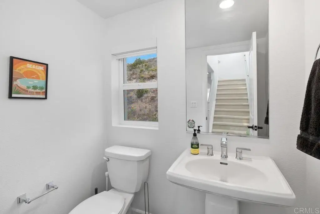 Citrine at 3Roots - Sorrento Mesa: Modern living awaits in this newly constructed Citrine residence, set on a premium-size lot with a view of the canyon hill reserve (open space) within the desirable 3Roots master-planned community. Offering 4 spacious bedrooms, 3.5 baths, and 2,316 sq. ft., the home's contemporary floor plan is designed for comfort and function. Sun-filled interiors showcase upgraded flooring, quartz countertops, custom cabinetry, and premium stainless steel appliances throughout the chef-inspired kitchen. On the entry level, a versatile suite with an ensuite bath provides the perfect space for guests or a dedicated home office. The second floor opens to expansive living and dining areas, seamlessly connected to a covered balcony--ideal for entertaining or enjoying California's indoor-outdoor lifestyle. The owner's suite is a restful retreat featuring a luxurious bath with a soaking tub and a private balcony. Continuing, there are two spacious secondary bedrooms and a full bathroom with a double sink vanity on the same floor. Additional features include a two-car garage and drought-tolerant landscaped grounds. Eco-friendly living with rooftop solar, Smart home technology, integrated air filtration system, providing sustainable energy and long-term savings, and Ring security. Residents of 3Roots enjoy access to an exclusive array of amenities: a cutting-edge fitness center, resort-inspired pool, multiple parks, playgrounds, sports courts, and scenic walking trails throughout the community, reflecting a commitment to wellness and convenience. Perfectly positioned in Sorrento Mesa, this home offers quick access to area beaches, shopping, dining, and major employment centers. Contact today for a private showing and make this exceptional Citrine home your next address in San Diego.