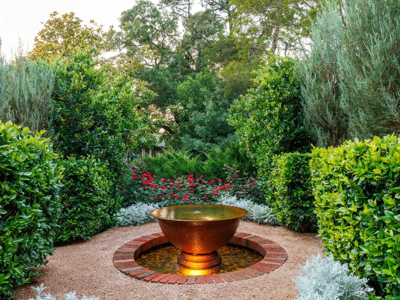 Intimate pool with multiple fountain features