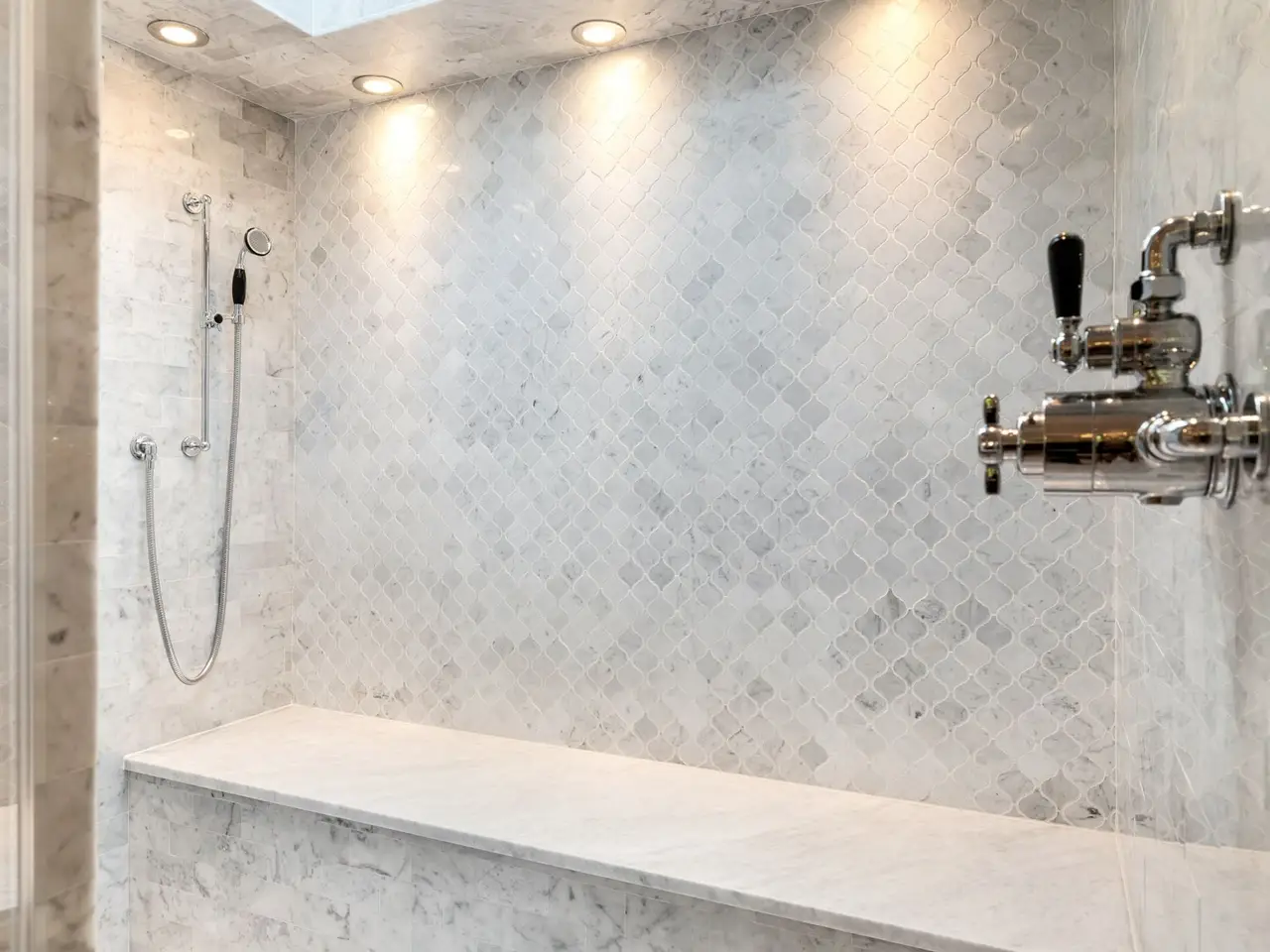 Oversized shower with steam unit