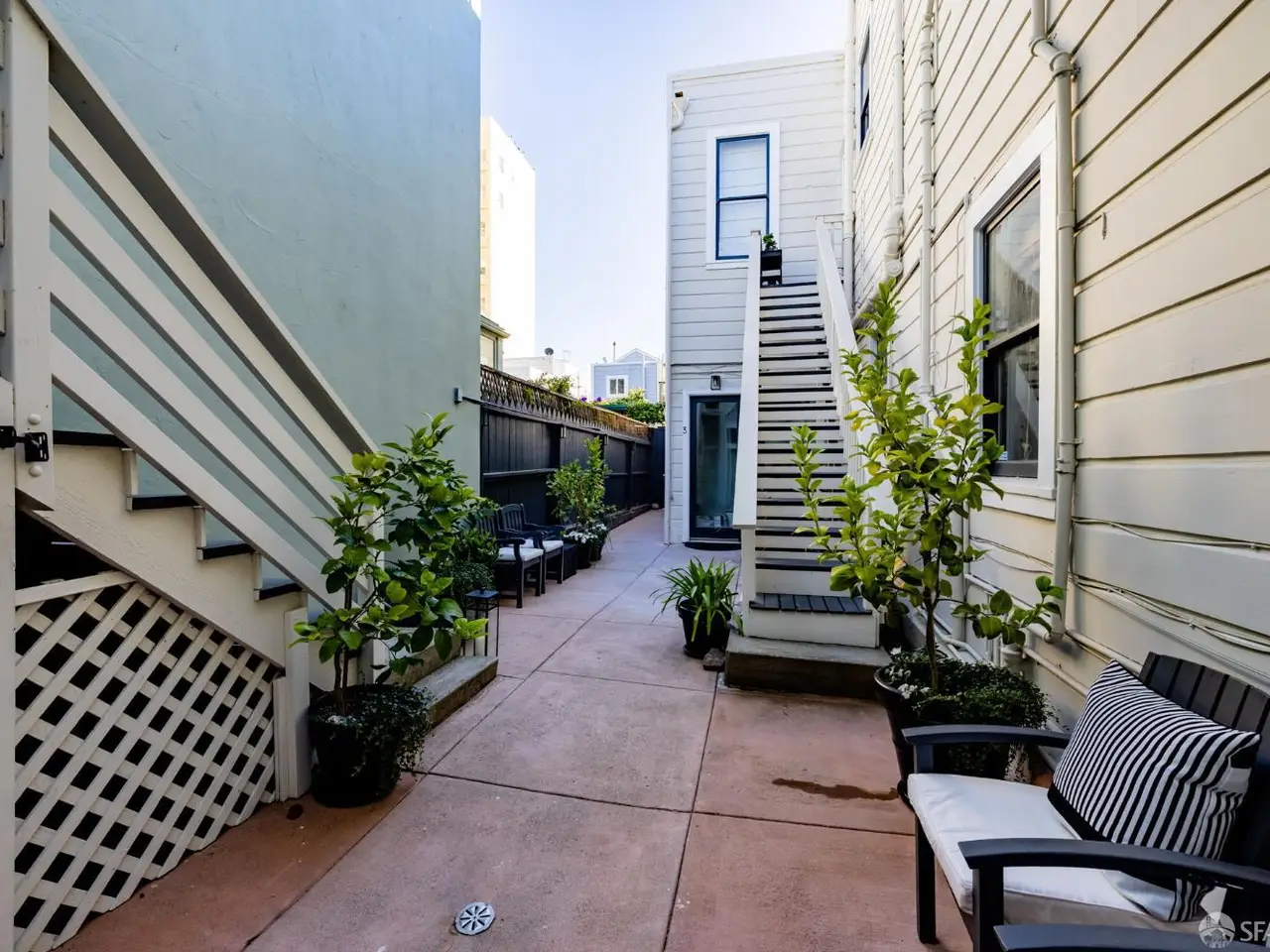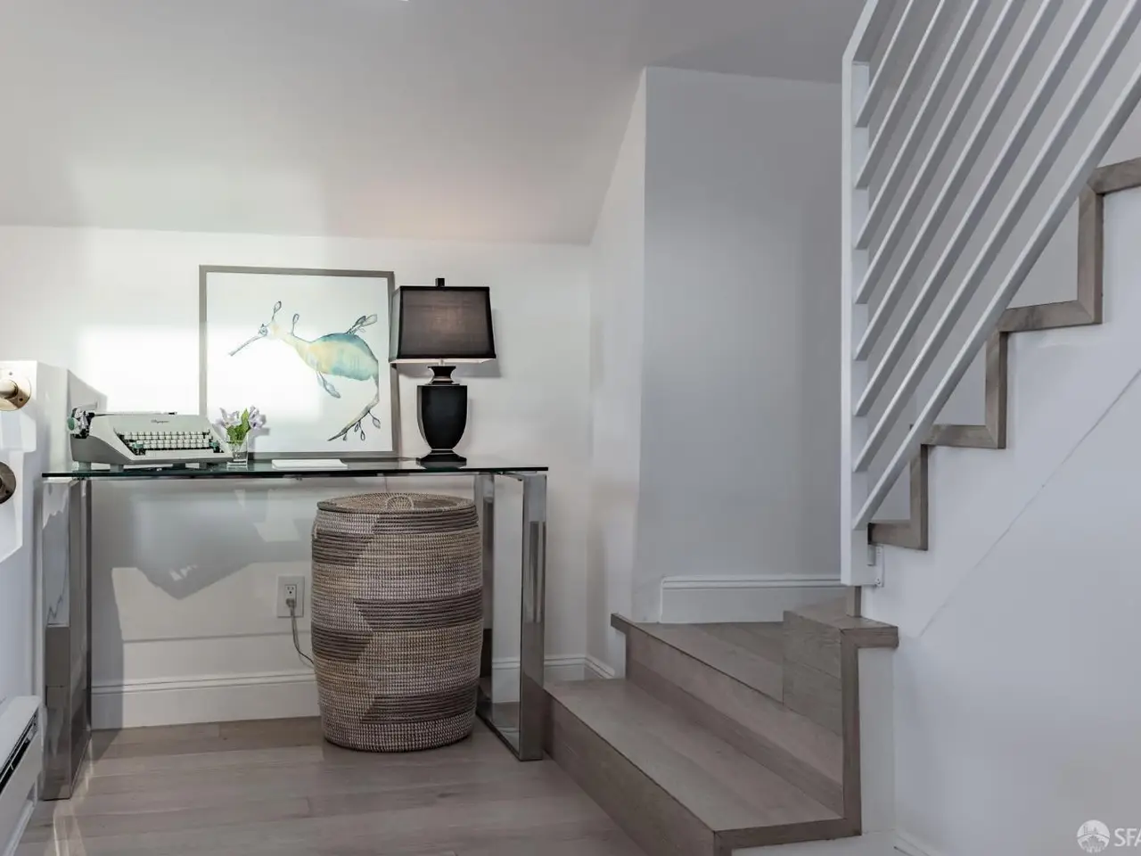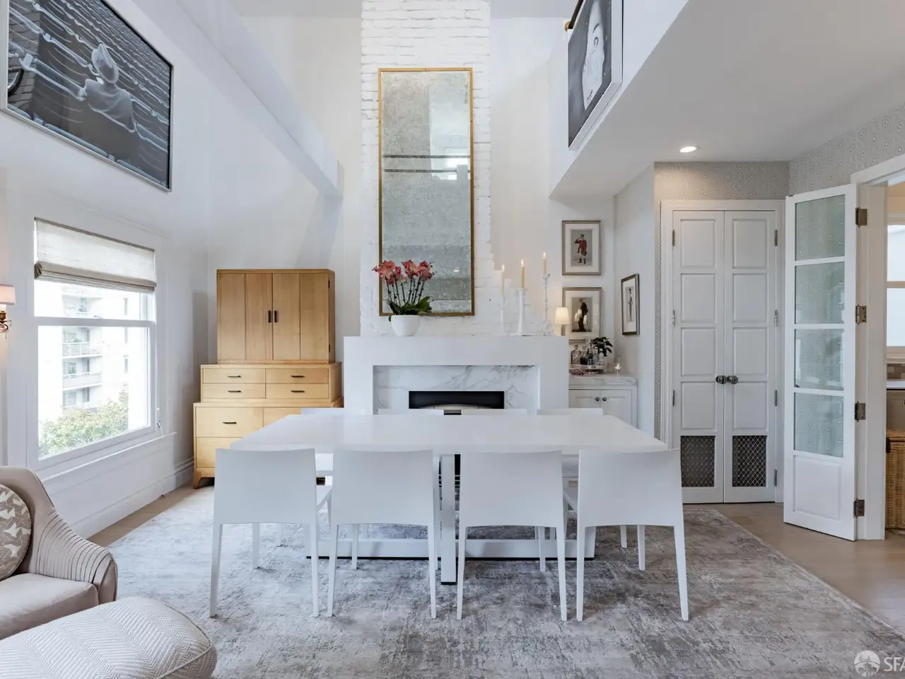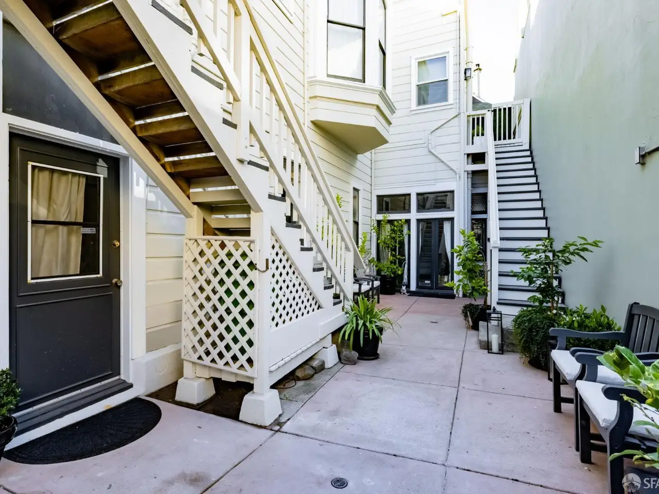 This stunning, pent level condo in prime Pacific Heights is truly one of a kind. Flooded with both natural light and old San Francisco charm, this home benefitted from an elegant, down-to-the-studs 2017 remodel and now boasts wide plank white oak floors, all new cabinets, countertops and appliances, and new windows throughout. The main level of this gorgeous home includes the primary bedroom with double closets and private patio (the first of two private outdoor spaces), remodeled bath with travertine walls and floors, living/dining room complete with fireplace and cathedral ceilings, and chef's kitchen with Bertazzoni gas range, new faucet by Hansgrohe and imported English cabinet pulls, in unit washer and dryer. Upstairs is your light and bright lofted second bedroom with custom under-stair storage casework, an office nook, and access to your private roof deck, which includes a heater and a marble island. Separate storage and a third shared common patio complete this exquisite residence.