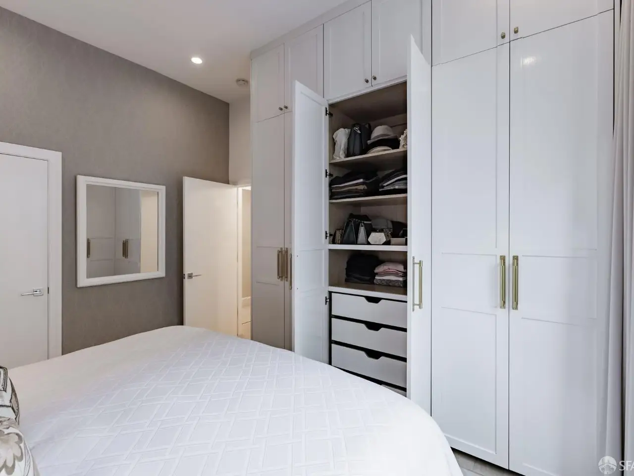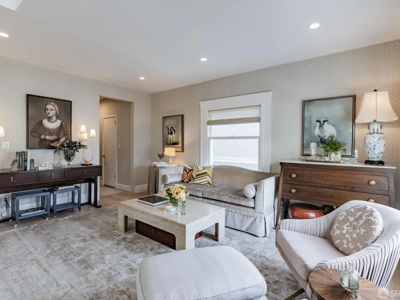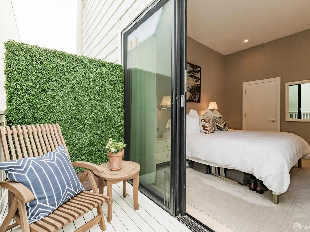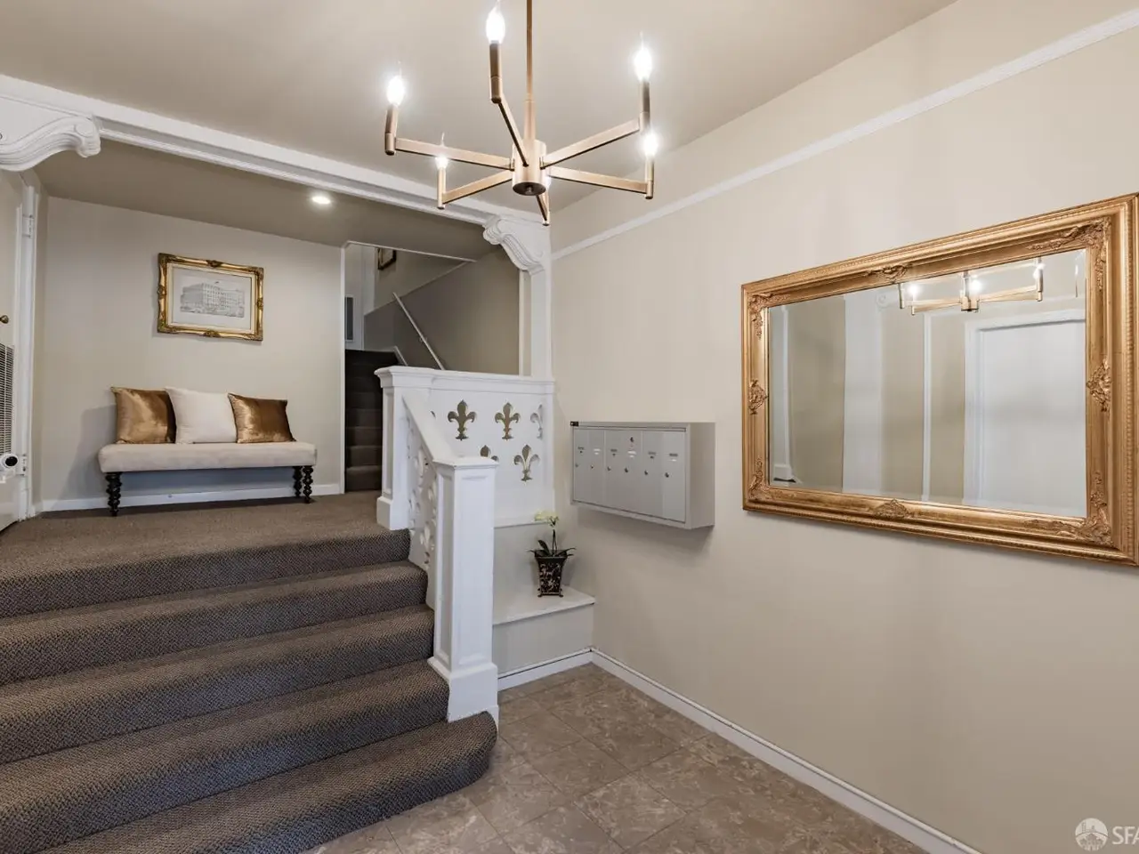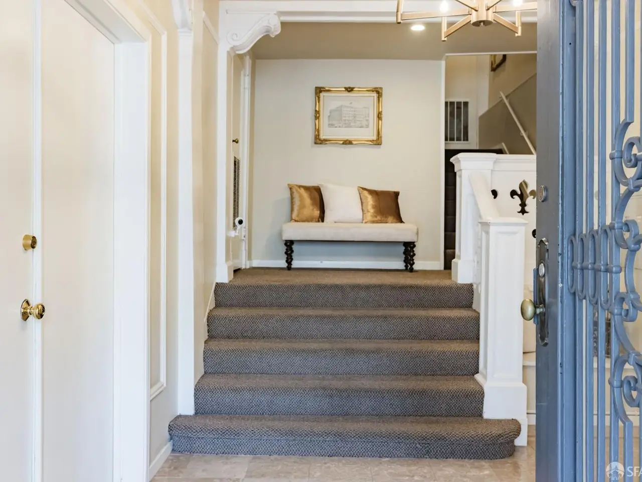 This stunning, pent level condo in prime Pacific Heights is truly one of a kind. Flooded with both natural light and old San Francisco charm, this home benefitted from an elegant, down-to-the-studs 2017 remodel and now boasts wide plank white oak floors, all new cabinets, countertops and appliances, and new windows throughout. The main level of this gorgeous home includes the primary bedroom with double closets and private patio (the first of two private outdoor spaces), remodeled bath with travertine walls and floors, living/dining room complete with fireplace and cathedral ceilings, and chef's kitchen with Bertazzoni gas range, new faucet by Hansgrohe and imported English cabinet pulls, in unit washer and dryer. Upstairs is your light and bright lofted second bedroom with custom under-stair storage casework, an office nook, and access to your private roof deck, which includes a heater and a marble island. Separate storage and a third shared common patio complete this exquisite residence.