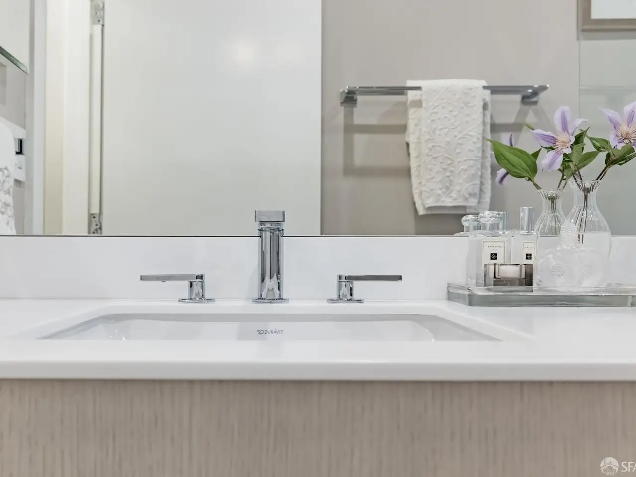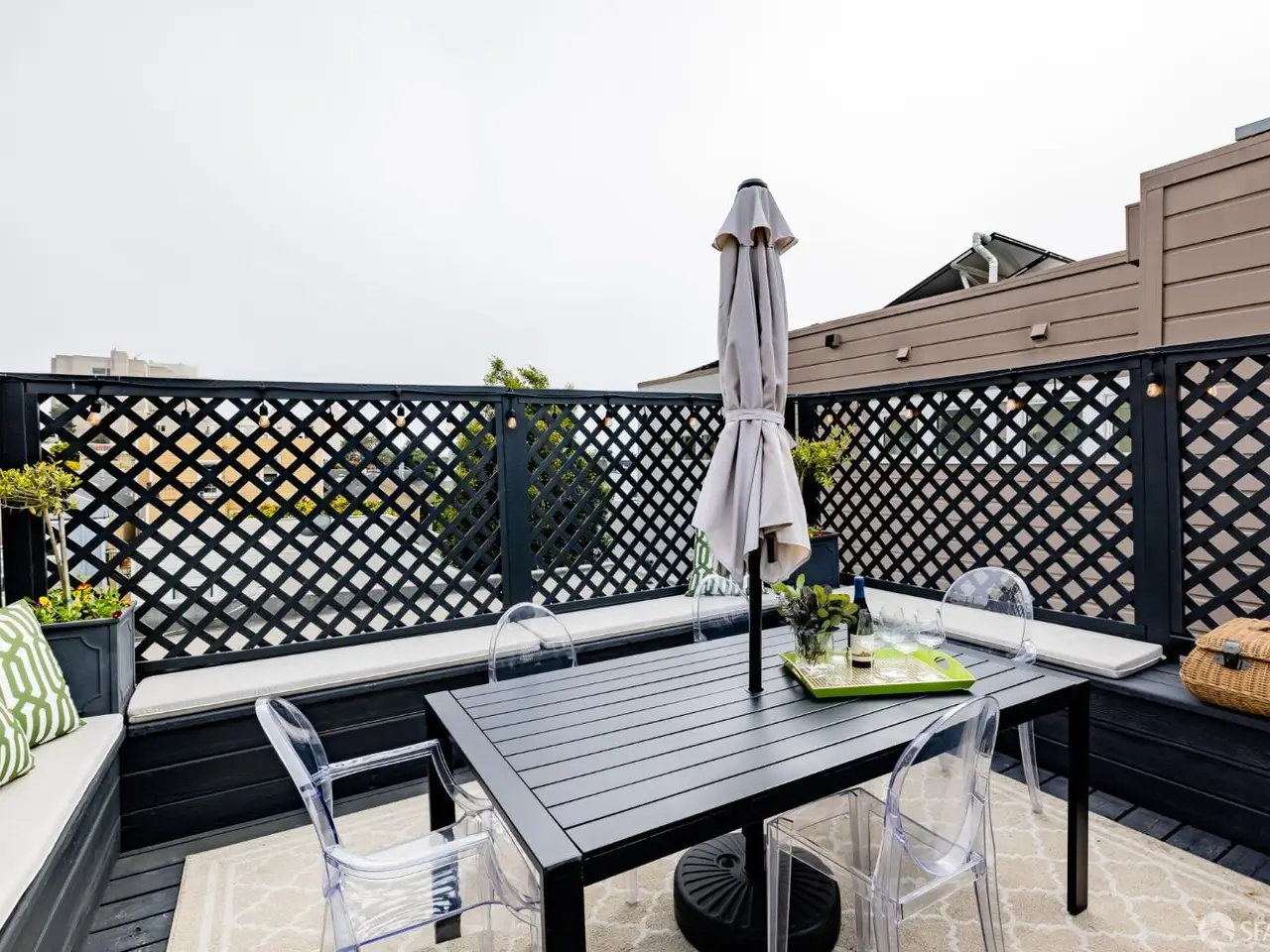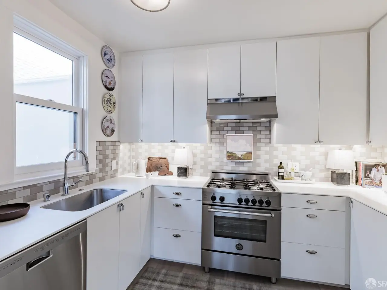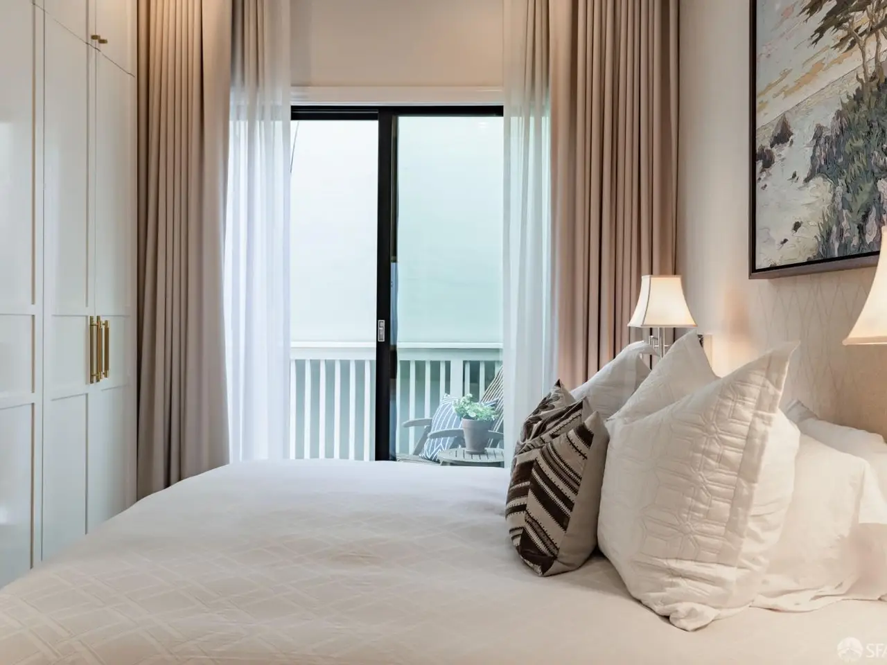 This stunning, pent level condo in prime Pacific Heights is truly one of a kind. Flooded with both natural light and old San Francisco charm, this home benefitted from an elegant, down-to-the-studs 2017 remodel and now boasts wide plank white oak floors, all new cabinets, countertops and appliances, and new windows throughout. The main level of this gorgeous home includes the primary bedroom with double closets and private patio (the first of two private outdoor spaces), remodeled bath with travertine walls and floors, living/dining room complete with fireplace and cathedral ceilings, and chef's kitchen with Bertazzoni gas range, new faucet by Hansgrohe and imported English cabinet pulls, in unit washer and dryer. Upstairs is your light and bright lofted second bedroom with custom under-stair storage casework, an office nook, and access to your private roof deck, which includes a heater and a marble island. Separate storage and a third shared common patio complete this exquisite residence.
