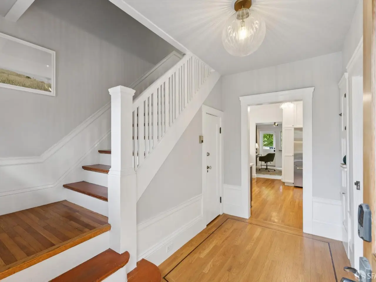 Situated on the border of the Mission District and Bernal Heights, sits this handsome Edwardian style home. On the main level, you enter through the foyer to find two large living spaces, a spacious dining room, and a renovated kitchen. A powder room, a laundry area and a space that can be used as an office or pantry complete this main level of the home. The large rear deck sits under a canopy of magnolia trees. The deck overlooks a spacious, flat yard that is a blank canvas for the new owner(s). Upstairs, you will find the large primary bedroom with 2 large closets, a secondary bedroom, a bonus room, and a full bathroom with an elegant mixture of period fixtures and modern updates. On the ground level, there is spacious garage with room for storage and another sizable bonus room with a wet bar and wine fridge, and a full bathroom. This level also has access to the shaded patio and peaceful backyard. This area of the Mission district has an array of restaurants, lots of shopping and easy access to public transportation and the freeways. Being about a block from both Precita Park and Garfield Pool offers lots of options for fun activities close to home.