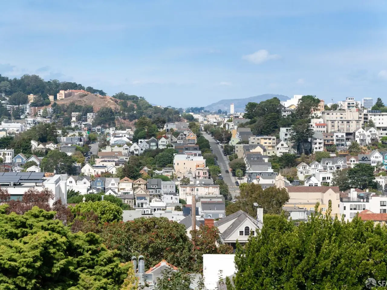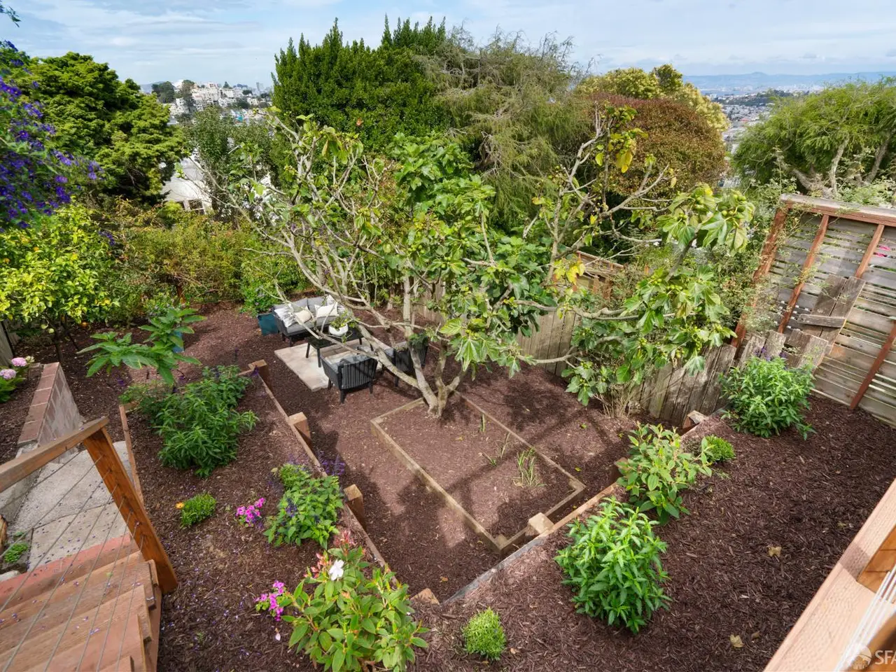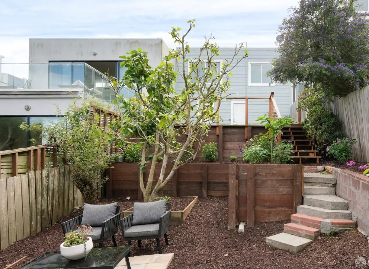 This impeccable mid-century home offers 2 bedrooms, 1 bathroom, a large bonus room and bath and breathtaking views. Set on an extra-deep lot in the Noe Valley hills, the home enjoys panoramic outlooks from Twin Peaks and the San Francisco skyline. Features include front and rear landscaped gardens, wide plank engineered wood floors, dual pane windows, custom lighting and nest thermostat. The main level features a spacious living room with a handsome wood-burning fireplace and a spacious dining area adjacent to a newly remodeled kitchen featuring new quartz counters, custom cabinets, tile backsplash, stainless gas range, hood, dishwasher and 4-door refrigerator. 2 well appointed bedrooms both with city views, and a full bathroom with tub and shower. Downstairs, an additional room and full bath provide flexible space for guests, office, or media. The deep landscaped walk-out rear garden, also with great views, includes a generous lawn, terraced beds, and mature fruit trees-perfect for entertaining or relaxing. Highlights include a one-car garage, laundry, and abundant storage. Close to shopping, dining, cafes and entertainment, access to public transit and freeways. Children and dog lovers and outdoor enthusiasts enjoy many outdoor areas, parks and dog parks