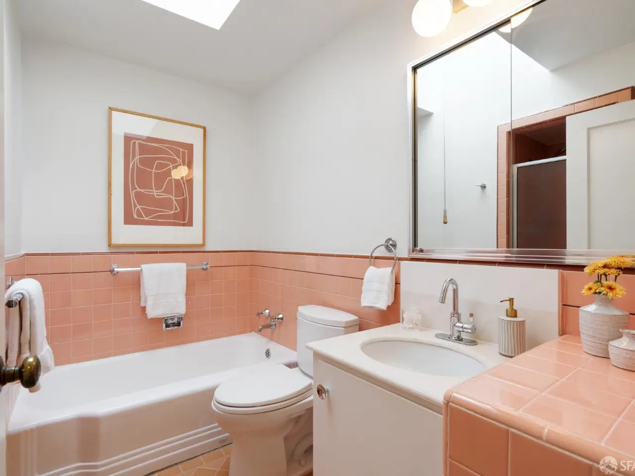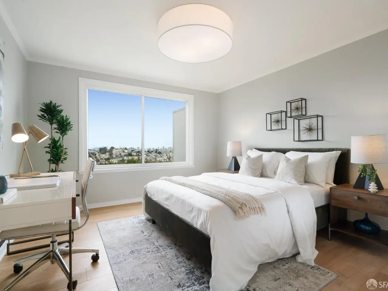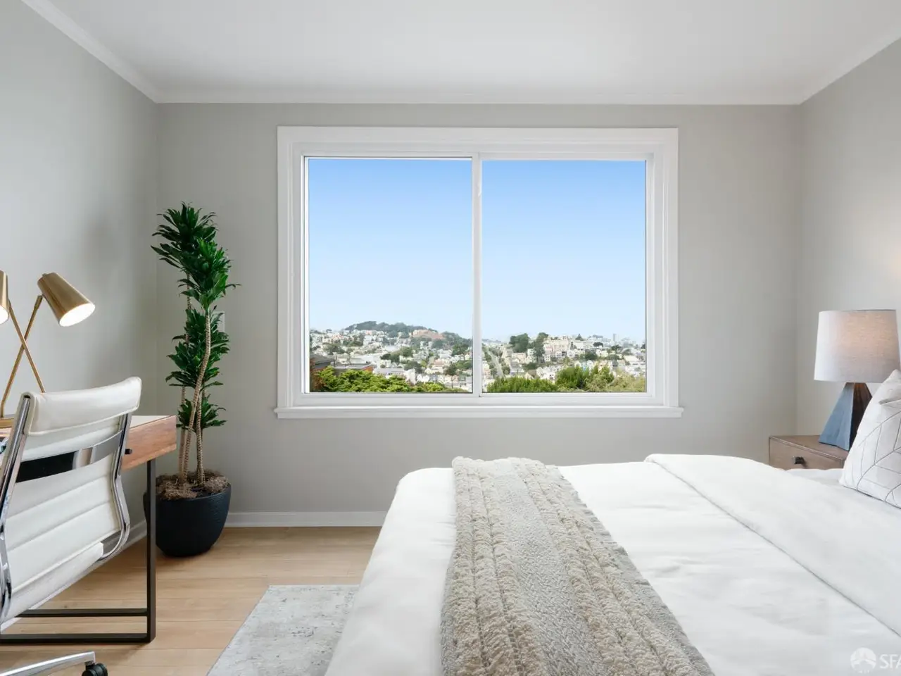 This impeccable mid-century home offers 2 bedrooms, 1 bathroom, a large bonus room and bath and breathtaking views. Set on an extra-deep lot in the Noe Valley hills, the home enjoys panoramic outlooks from Twin Peaks and the San Francisco skyline. Features include front and rear landscaped gardens, wide plank engineered wood floors, dual pane windows, custom lighting and nest thermostat. The main level features a spacious living room with a handsome wood-burning fireplace and a spacious dining area adjacent to a newly remodeled kitchen featuring new quartz counters, custom cabinets, tile backsplash, stainless gas range, hood, dishwasher and 4-door refrigerator. 2 well appointed bedrooms both with city views, and a full bathroom with tub and shower. Downstairs, an additional room and full bath provide flexible space for guests, office, or media. The deep landscaped walk-out rear garden, also with great views, includes a generous lawn, terraced beds, and mature fruit trees-perfect for entertaining or relaxing. Highlights include a one-car garage, laundry, and abundant storage. Close to shopping, dining, cafes and entertainment, access to public transit and freeways. Children and dog lovers and outdoor enthusiasts enjoy many outdoor areas, parks and dog parks