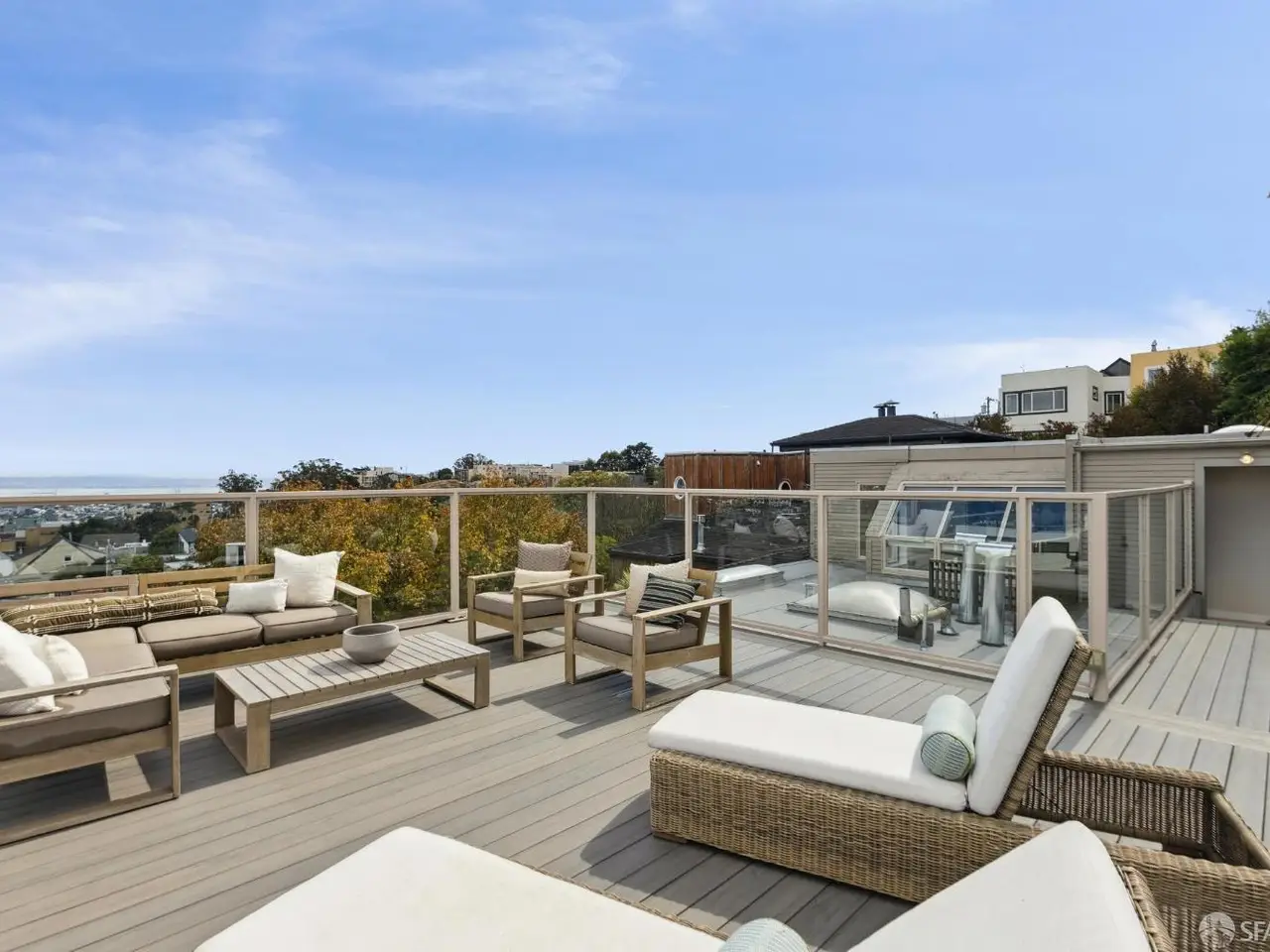 Nestled on a tranquil street in San Francisco's Noe Valley neighborhood, just moments from the vibrant 24th Street shopping corridor, this stunning home features four bedrooms and three and a half baths. The kitchen and bathrooms have been meticulously remodeled, showcasing high-end fixtures and appliances. Enjoy sweeping views from various decks and outdoor living areas. The main level boasts a bright, open floor plan, offering captivating views of downtown and the serene rear yard from both the living and dining rooms. On the top floor, you'll find a spacious primary suite with access to an expansive roof deckideal for entertaining with panoramic views of downtown and Twin Peaks. The beautifully landscaped backyard serves as a private sanctuary, perfect for escaping the city's hustle and bustle. Additional features include a two-car side-by-side garage with internal access, equipped with a Tesla charger, and two additional parking spaces in the driveway.