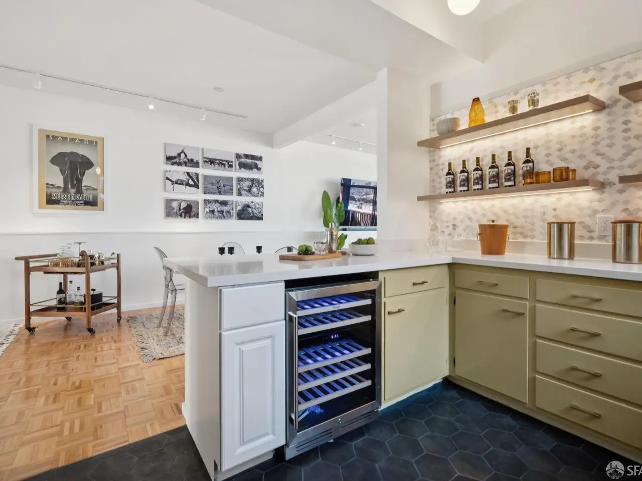 Show-stopping built-in bar with artisan tile