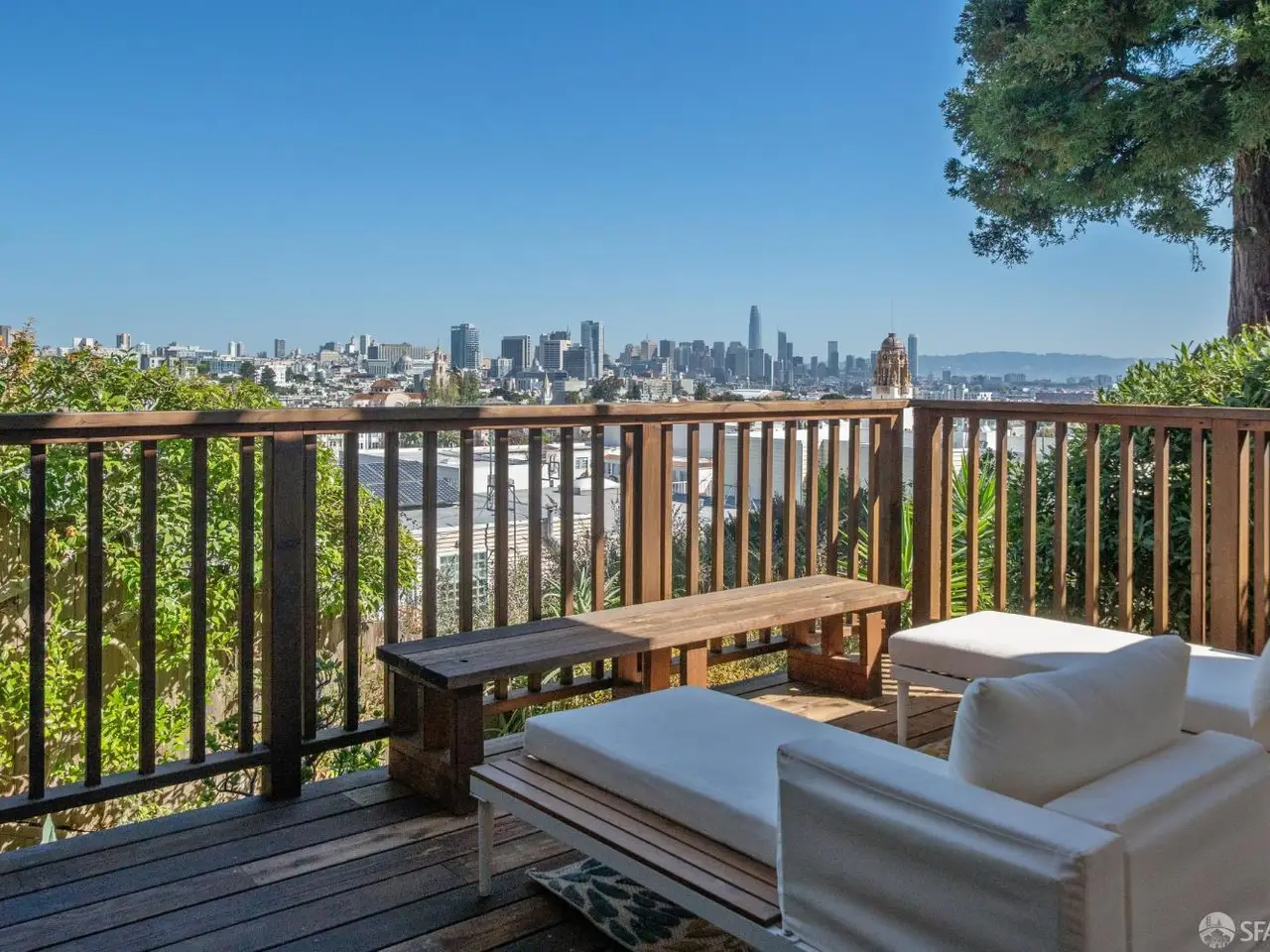 Prime Dolores Heights. Walls of glass. Skyline for days. Reimagined from its duplex roots into a luxurious single-family residence, 3838 19th Street delivers two dramatic levels of indoor-outdoor living with sweeping downtown views from virtually every vantage. A double-height entry atrium sets the tone, leading to grand, glass-wrapped living and dining spaces above and a lounge level that opens wide to a walk-out deck. Entertain at the show-stopping built-in bar clad in gorgeous artisan tile, or slide open the doors upstairs to a view balcony for sunset cocktails. An interior terrace and garden create a private backdrop for al-fresco dinners at scale. Add a wine cellar, laundry room, and rare 2-car, side-by-side carport, and you have the ultimate city homeequal parts polished, playful, and unmistakably San Francisco. On a coveted Dolores Heights block just steps to Dolores Park, you're minutes from the Valencia Corridor and the Castro's destination restaurants, cafes, bakeries, and boutiques. Commuting is easy with the J-Church Muni nearby and excellent bike routes at your doorurban living with a resort-level view.