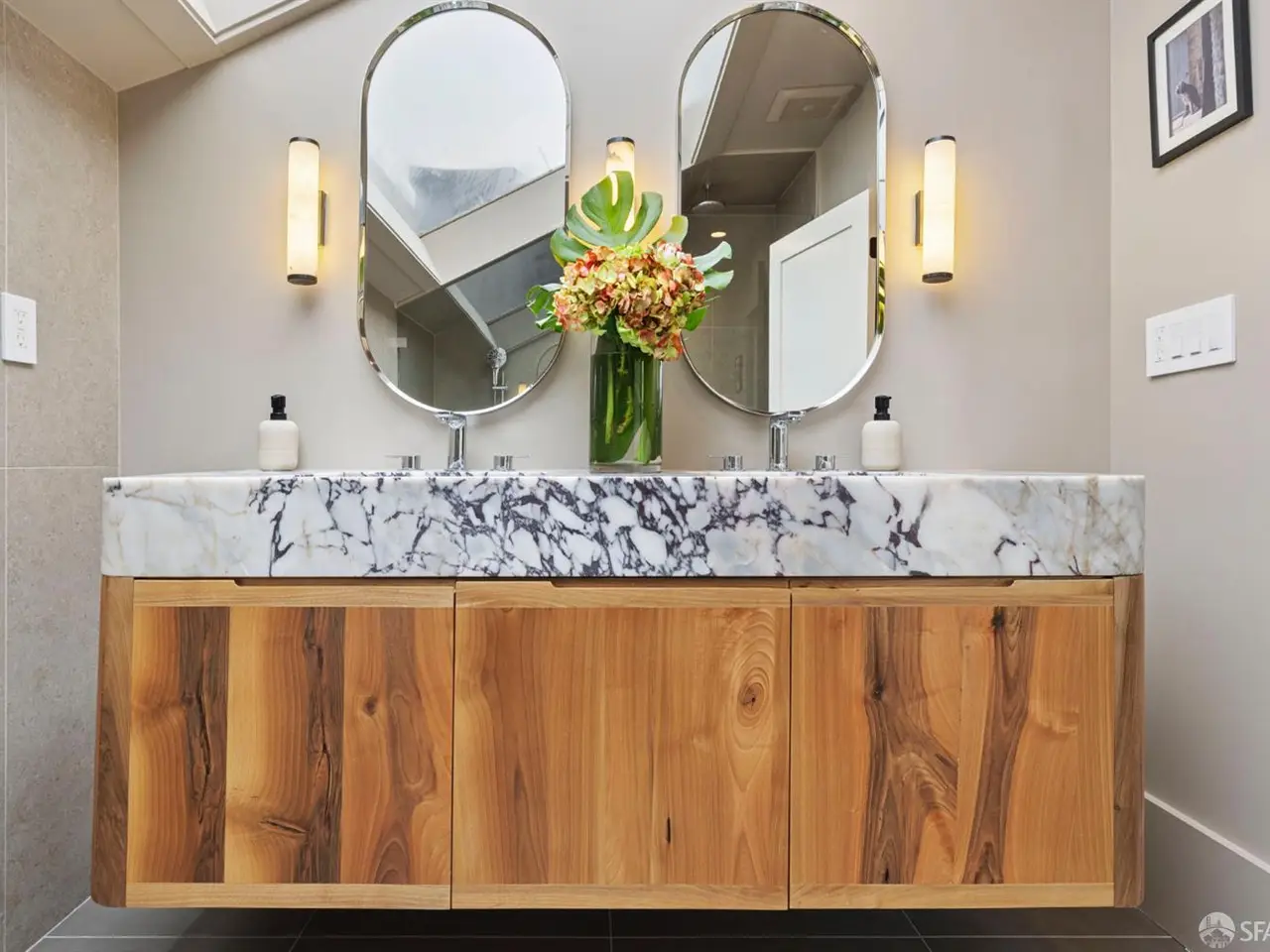 Commanding the block after a 2025 renovation, this moody Edwardian rises in Dolores Heights, one of San Francisco's most coveted hillside enclaves known for leafy streets & cinematic views. Three generous levels unfold w/grand scale & sophistication. The main entertaining level is anchored by a 25' full-width living room, two fireplaces, a grand dining room, all while being bathed in abundant natural light. The impressive entertainer's kitchen features a professional-grade Bosch appliance suite & a layout designed for both culinary ambition & everyday ease. This level also has direct access to the lush, private garden. Upstairs, three serene bedrooms serve as private retreats, each with custom wardrobes, & desirable outlooks. Every bathroom evokes a boutique-hotel experience, w/ single-slab honed Viola marble vanities, imported tiles, & premium Grohe/Duravit fixtures. The fourth bedroom on the main level offers versatility for guests, media, or an inspiring garden-side office. Outside, the garden unfolds as a true urban refuge, featuring an outdoor kitchen, professionally-designed garden beds, & a doggy relief area. Smart home updates include: Lutron dimmable lighting, WiFi appliances, Eero WiFi network, & Nest video entry, ensure the home lives as smart as it looks.