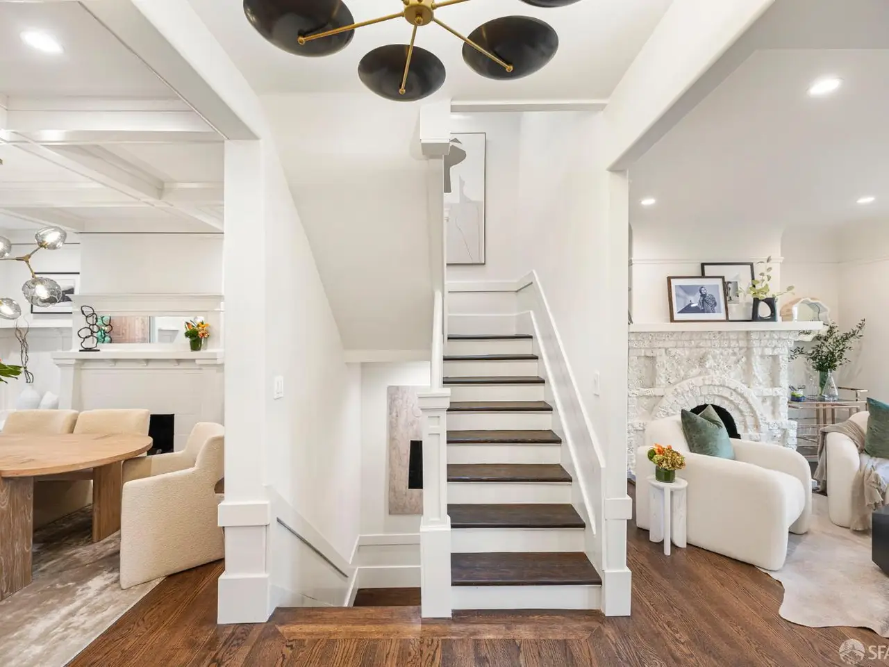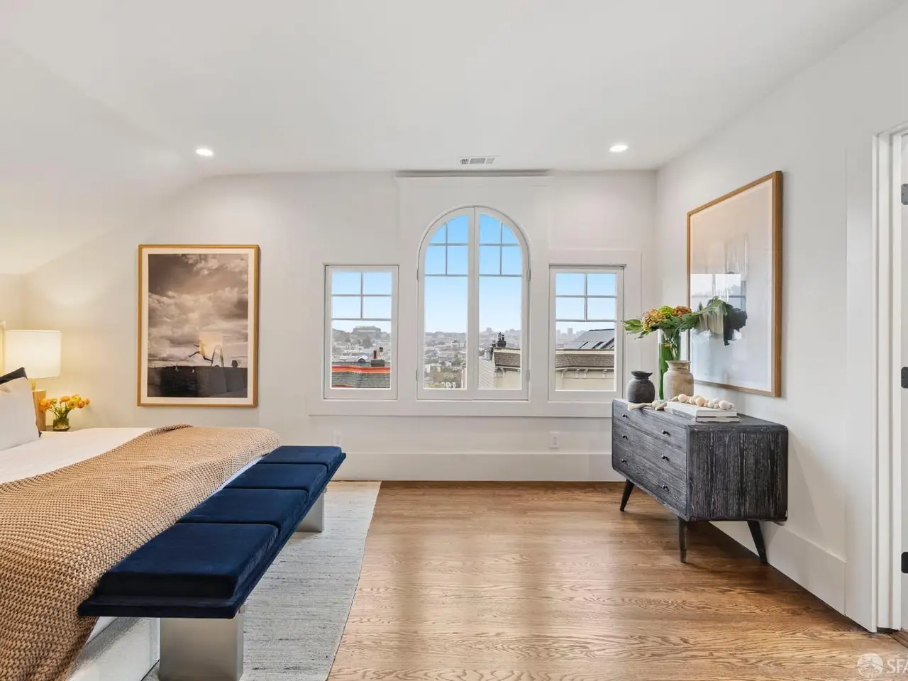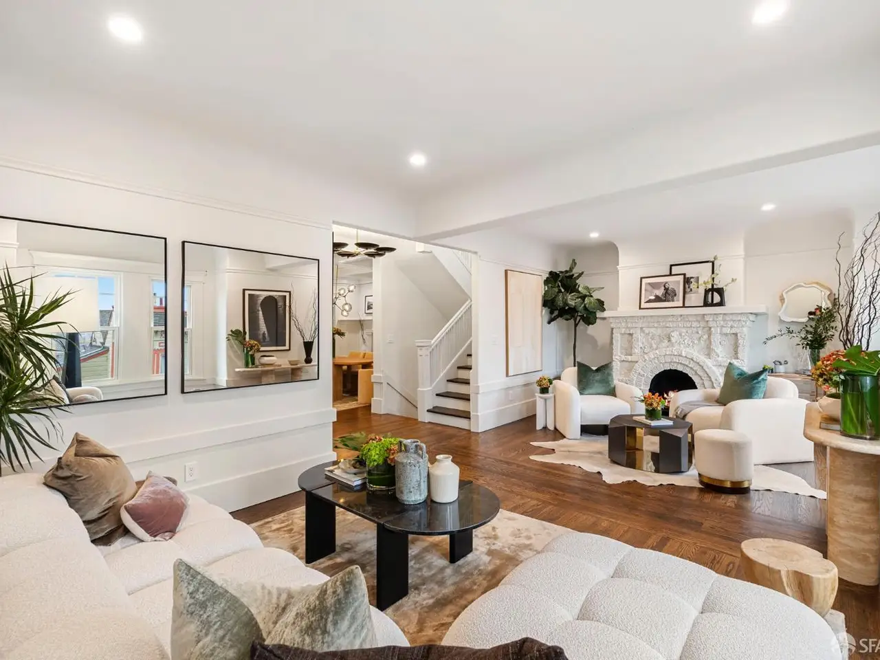 Commanding the block after a 2025 renovation, this moody Edwardian rises in Dolores Heights, one of San Francisco's most coveted hillside enclaves known for leafy streets & cinematic views. Three generous levels unfold w/grand scale & sophistication. The main entertaining level is anchored by a 25' full-width living room, two fireplaces, a grand dining room, all while being bathed in abundant natural light. The impressive entertainer's kitchen features a professional-grade Bosch appliance suite & a layout designed for both culinary ambition & everyday ease. This level also has direct access to the lush, private garden. Upstairs, three serene bedrooms serve as private retreats, each with custom wardrobes, & desirable outlooks. Every bathroom evokes a boutique-hotel experience, w/ single-slab honed Viola marble vanities, imported tiles, & premium Grohe/Duravit fixtures. The fourth bedroom on the main level offers versatility for guests, media, or an inspiring garden-side office. Outside, the garden unfolds as a true urban refuge, featuring an outdoor kitchen, professionally-designed garden beds, & a doggy relief area. Smart home updates include: Lutron dimmable lighting, WiFi appliances, Eero WiFi network, & Nest video entry, ensure the home lives as smart as it looks.