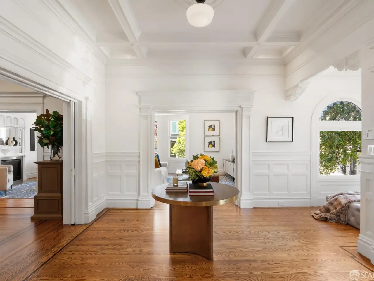 Designed by Swedish architect Nicolaus August Nordin, 199 Carl Street is a stately corner single-family home nestled in the desirable Cole Valley neighborhood. This thoughtfully remodeled residence combines timeless period details with modern luxury, offering an exceptional living experience across four expansive levels. The spacious floor plan features high ceilings and generous living spaces throughout. The main level boasts a chef's kitchen outfitted with top-of-the-line appliances and a large island, a welcoming foyer, a sophisticated living room, and an elegant dining area perfect for entertaining. A half bathroom and direct access to the professionally landscaped backyard complete this level. Upstairs, you'll find three bedrooms, including the primary suite, each with its own ensuite bathroom. The top floor also includes a large family room for children's activities, an additional bathroom, and flexible rooms that can serve as home offices, guest bedrooms, or fitness spaces. The lowest level offers abundant storage options, a half bathroom, and a versatile ballroom, ideal for entertaining guests or creating a luxurious guest retreat. This extraordinary home seamlessly blends historic charm with contemporary amenities, offering a truly exceptional lifestyle.