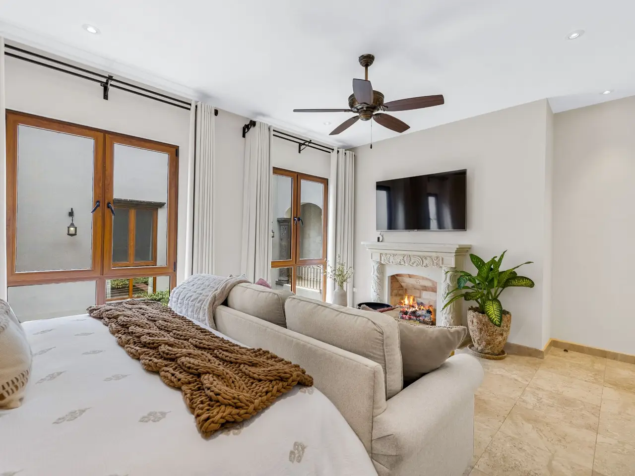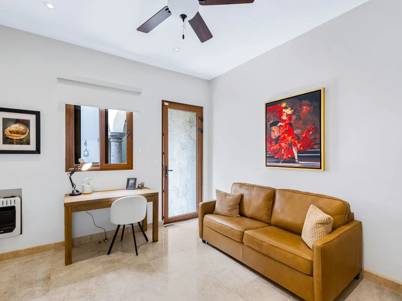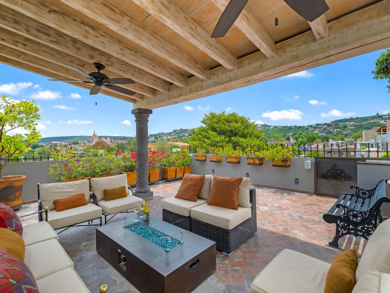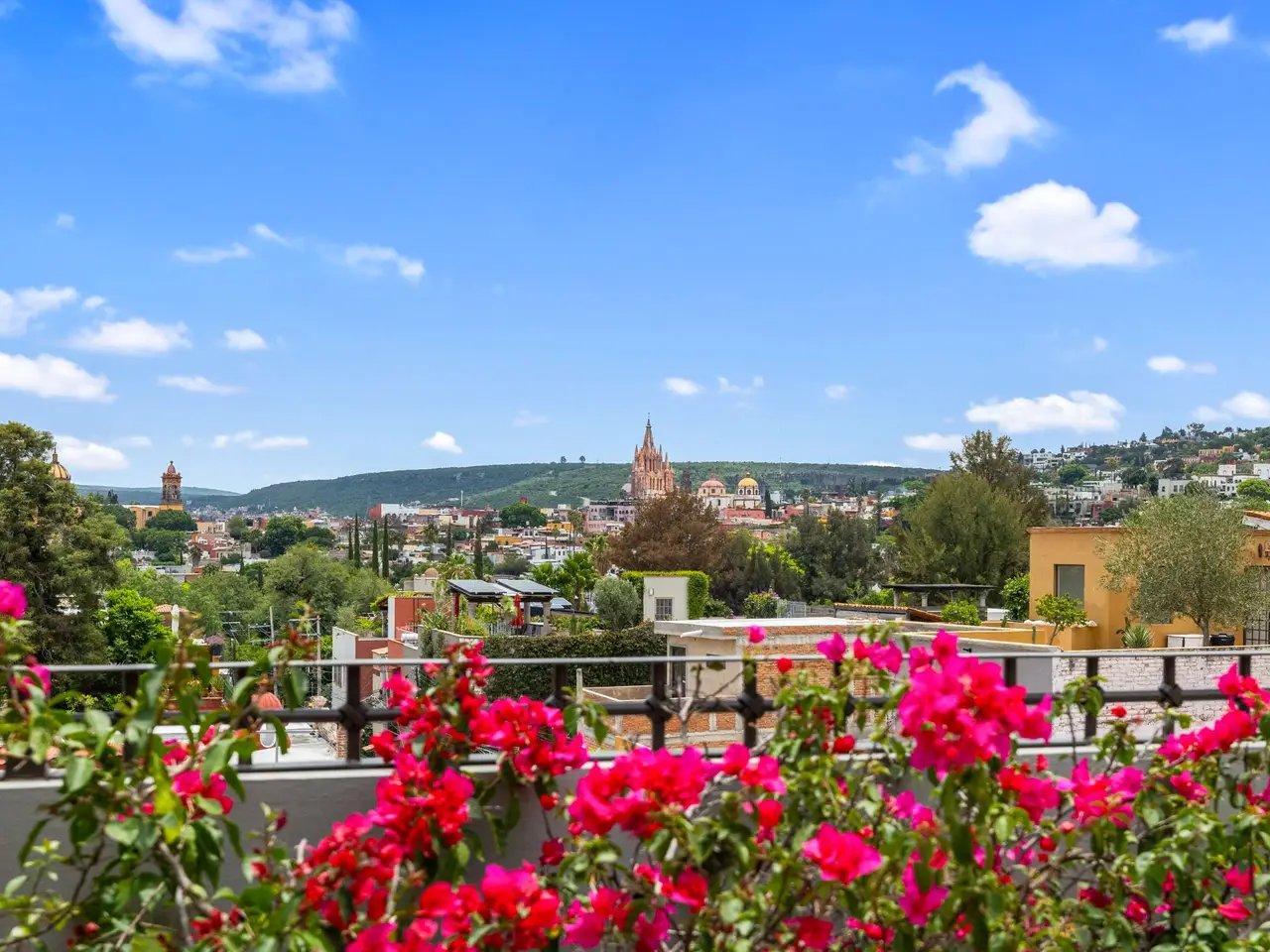 “A Contemporary Sanctuary with Colonial Soul in the Heart of San Miguel de Allende” Ideal for a discerning couple or family seeking the soul of Mexico with the comforts of contemporary living, Casa Mi Sueño is a stunning three-level residence that masterfully balances design, function, and location. Set on Avenida Allende—widely considered the most desirable street in the San Antonio neighborhood—this architectural gem by renowned architect Ana Delia López blends sophisticated minimalism with the charm and texture of colonial architecture. Just a short stroll from Instituto Allende, Juárez Park, the Rosewood Hotel, and the Parroquia de San Miguel Arcángel, this home places you at the cultural heart of the city while offering a peaceful private retreat. Upon entering at street level, you're welcomed into a serene vestibule with a gas fireplace, creating a warm and inviting first impression. A covered garage sits adjacent, providing both security and convenience. The heart of the home unfolds in the dramatic central courtyard, a tranquil open-air space designed for entertaining and relaxation. It features a grilling area, dining space, wiping wall fountain, gas fireplace, and a touch of greenery. A covered gallery connects the entry to the main living areas—allowing you to move freely and comfortably even during rainy days. Past the courtyard, the interior opens into a beautifully proportioned living room, dining area, and kitchen, all part of an open-concept layout that invites natural light and seamless flow. Finishes include travertine marble floors, sleek custom cabinetry, and double-pane windows that insulate both sound and temperature. A discreet half bathroom completes the main floor. The second level offers privacy and comfort. A spacious guest suite features its own sitting area and gas fireplace, while a versatile office/TV room with en-suite bath can serve as an overflow bedroom. The highlight of this floor is the luxurious primary suite—a light-filled sanctuary with fireplace, generous proportions, and a spa-like bathroom complete with a soaking tub, double sinks, makeup vanity, and a vaulted bóveda ceiling that adds architectural drama. A large walk-in closet completes this refined retreat. The third floor is designed to dazzle. A covered rooftop terrace offers unobstructed panoramic views of the city’s most iconic landmarks, including the Parroquia, Las Monjas, and the surrounding skyline. The fourth bedroom, perched at the top, commands some of the best views in the house, with large windows framing the churches of downtown San Miguel. This suite includes a coffee bar, full bath, and closet—making it ideal for guests or as an inspiring creative space. Just outside the door, a jacuzzi overlooks the city in spectacular fashion—perfect for sunset soaks and stargazing. Additional features include a solar panel system with backup batteries, mini-split A/C units throughout the property, and high-end, brand-new furnishings—all included. Every detail has been thoughtfully considered to ensure comfort, efficiency, and aesthetic harmony. Just a 10-minute walk from the Jardín, and steps from world-class art galleries, restaurants, and cultural venues, Casa Mi Sueño offers not just a home, but a lifestyle—refined, relaxed, and unmistakably San Miguel.