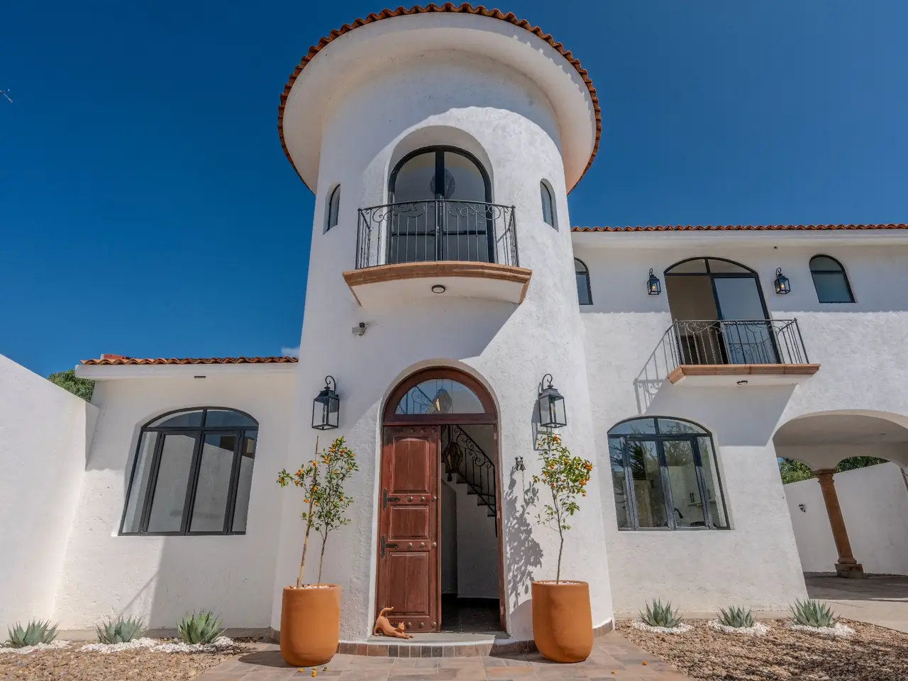 Charming Home with Guest Apartment in Vista Antigua — Just 5 Minutes from Centro San Miguel de Allende Welcome to this charming home located in the exclusive gated community of Vista Antigua, just five minutes from the vibrant heart of San Miguel de Allende. This spacious property offers a unique opportunity to enjoy comfort, privacy, and style in a peaceful, secure setting. The main house is thoughtfully designed on one level and features two bedrooms and two and a half bathrooms. The master suite includes a fireplace, a spacious walk-in closet, and an ensuite bathroom with both shower and tub. Large glass doors open to a private outdoor area as well as an interior patio, creating a seamless connection between indoor and outdoor living. Throughout the home, natural light fills the spaces, highlighting the pitched clay tile roof and creating a warm, inviting ambiance. Upstairs, a fully equipped guest area with two bedrooms and a separate entrance offers a private space for friends or family. With its own kitchen, living area, bathrooms and private terrace, it’s ideal for hosting unexpected or long-term guests. The property also includes a laundry room, storage room, and a basement with a wine cellar, as well as three fireplaces in the dining room, den and principal bedroom, for cozy evenings. Four security cameras provide peace of mind, and there is ample parking for up to four vehicles. Outside, the large lot offers a blank canvas with ample space to design and landscape a lush garden that complements the home’s tranquil atmosphere. Whether you're looking for a full-time residence, a vacation retreat, or an investment property, this beautiful home in Vista Antigua offers the perfect blend of charm, flexibility, and potential — all just minutes from the historic center of San Miguel de Allende.