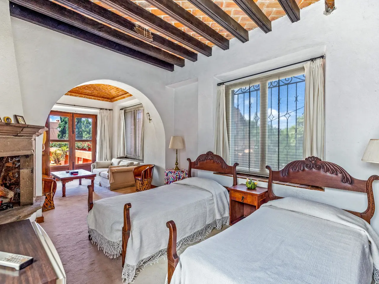 Casa Peaches is truly a diamond in the rough, perfect for the discerning buyer who appreciates the character and authenticity of a traditional San Miguel home. Built over 50 years ago, this residence sits in Guadiana, one of San Miguel de Allende’s most coveted neighborhoods. Known for its leafy park, tranquil streets, and nearly flat walk to the historic center, Guadiana offers a rare blend of peace, beauty, and convenience. Just steps away you’ll find the city’s iconic Juárez Park, the popular Mercado Sano organic market, charming cafés, galleries, and restaurants. Inside, Casa Peaches exudes colonial charm with a solid structure that transcends time. A wide entry corridor welcomes you, linking the light-filled living room to the left with a gracious hacienda-style patio to the right. Just off the entry sits the versatile green room—ideal as a guest suite or TV room—with an en-suite bath. Toward the back of the house, the spacious double dining room with fireplace and dramatic bóveda ceilings overlooks the grand patio. The adjoining kitchen and breakfast room are generous in size and ideal for family gatherings. Also on this level, a large principal bedroom with an en-suite bath and soaking tub provides comfortable one-level living. The second floor offers flexibility with three guest bedrooms, two sharing a bath, plus another large bedroom that could easily serve as a second principal suite, library, or den. Outdoors, the property unfolds over 9,256 square feet, featuring a pool and pool house that invite entertaining and relaxation, enhancing the sense of privacy and serenity. Open spaces frame beautiful views in the upper terraces. Key Features 1. Authentic colonial home with solid 50+ year construction 2. Spacious living and dining areas with fireplace and bóveda ceilings 3. 6+ bedrooms including flexible guest and principal suites 4. Large hacienda-style patio and multiple entertaining areas 5. Pool and pool house for gatherings and leisure 6. Walking distance to Juárez Park and San Miguel’s historic center 7. Convenient to Mercado Sano, cafés, restaurants, and galleries Casa Peaches offers a rare opportunity to restore and personalize a classic San Miguel home in one of the city’s most desirable neighborhoods.