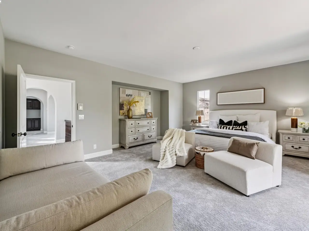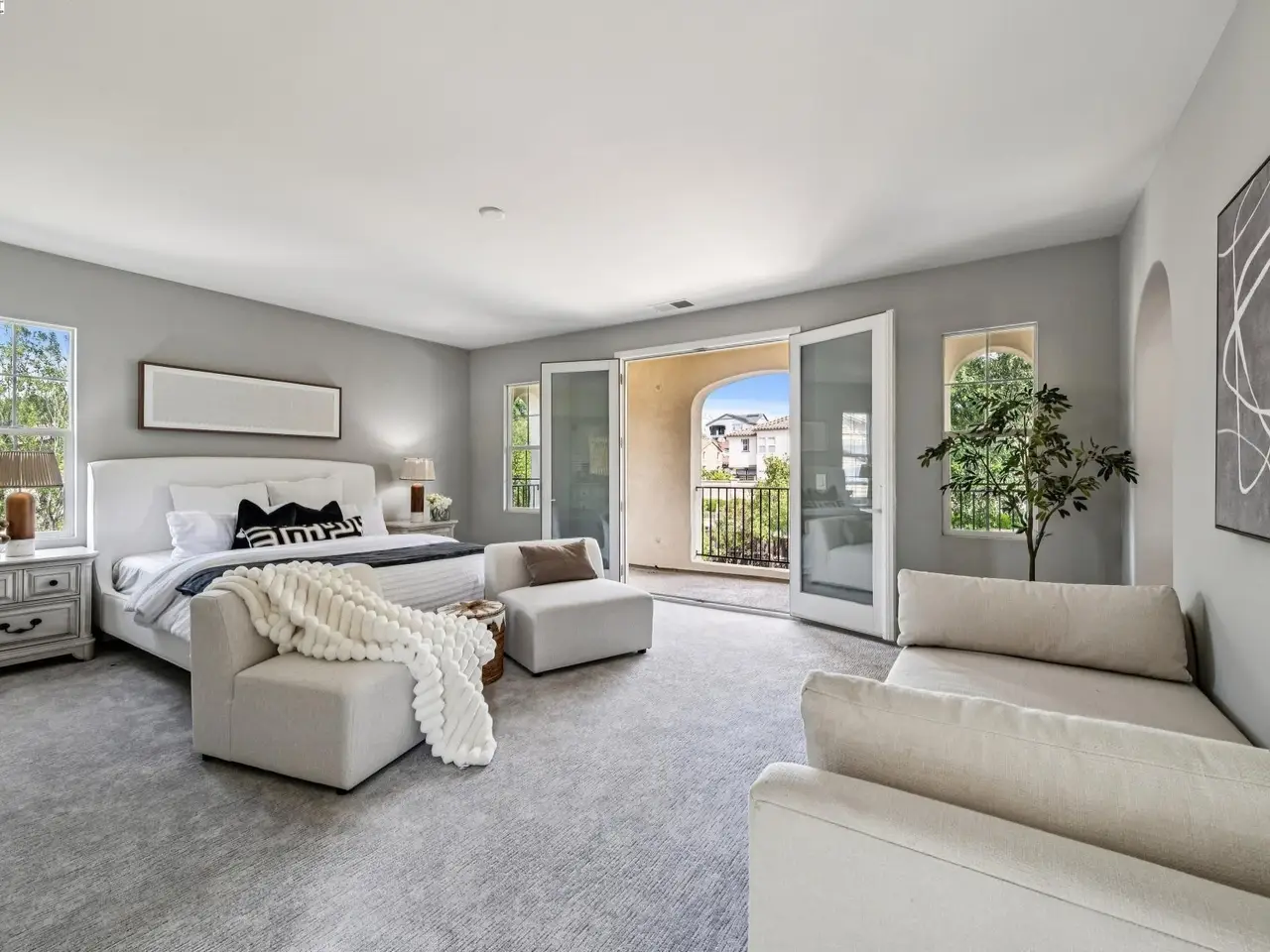 Welcome to this stunning home in the highly sought-after Gallery at Gale Ranch! Featuring elegant arches, balconies & refined architectural details, this residence combines luxury & functionality. Formal living & dining rooms provide a grand setting for entertaining, while the open-concept family room & chef’s kitchen—with a large island, gas cooktop & casual dining area—create the perfect space for everyday living. French doors open to a charming courtyard for seamless indoor-outdoor flow. The 1st-floor bedroom & full bath are ideal for guests or in-laws. Upstairs, the primary suite offers a private balcony overlooking the backyard, walk-in closet, dual vanities, large shower & jetted tub. A versatile loft & two additional bedrooms complete the upper level. The private guest suite in a separate wing includes its own living room, bedroom, bath & kitchenette—perfect for multi-gen living. Enjoy resort-style outdoor living w/pool, spa, patio, lawn, no rear neighbors & owned solar. Close to top rated schools, restaurants & entertainment (The Plaza at Gale Ranch, City Center Bishop Ranch, The Bridges Golf Course & Blackhawk Plaza). Walk to Monarch Park, scenic biking and hiking trails.