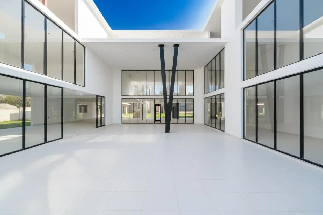 Rising from one of Bryanston’s most exclusive and boomed-off enclaves, this architectural masterpiece stands proudly on a 4,084sqm fully walled stand, offering an unrivalled sense of privacy and scale. With a total building area of 2,441sqm, this visionary residence redefines modern luxury through bold geometry, vast glass façades, and a commanding architectural form. Every element - from the floating concrete slabs and cantilevered walkways to the double-volume glass entrance framed in steel - has been designed to impress. Expansive proportions flow seamlessly across three magnificent levels, each capturing breathtaking panoramic views over the lush Bryanston treetops. This is more than just a property - it’s an opportunity to bring your vision to life. Some of the images shown are architectural renders, showcasing the extraordinary potential of what this home can become once completed. The scale, size, and layout set the foundation for a world-class mega-home, with interiors that can be finished to your exact taste and standard. Surrounded by manicured lawns and full boundary walls, this structure represents immense value, with the current replacement cost of what’s been built already exceeding the asking price. A true architectural canvas awaiting completion, this is your chance to craft one of Bryanston’s most iconic residences - where design, opportunity, and potential converge.