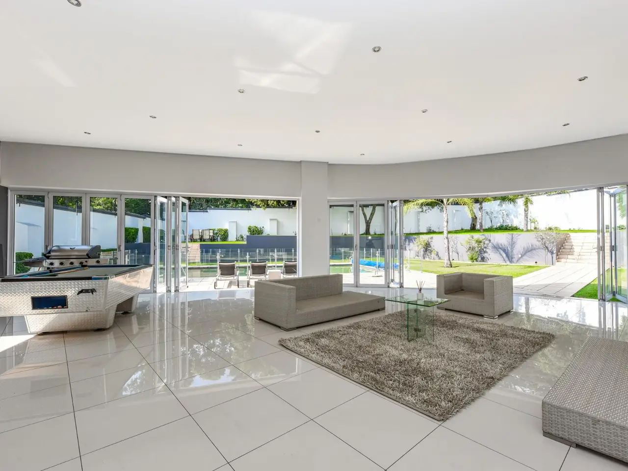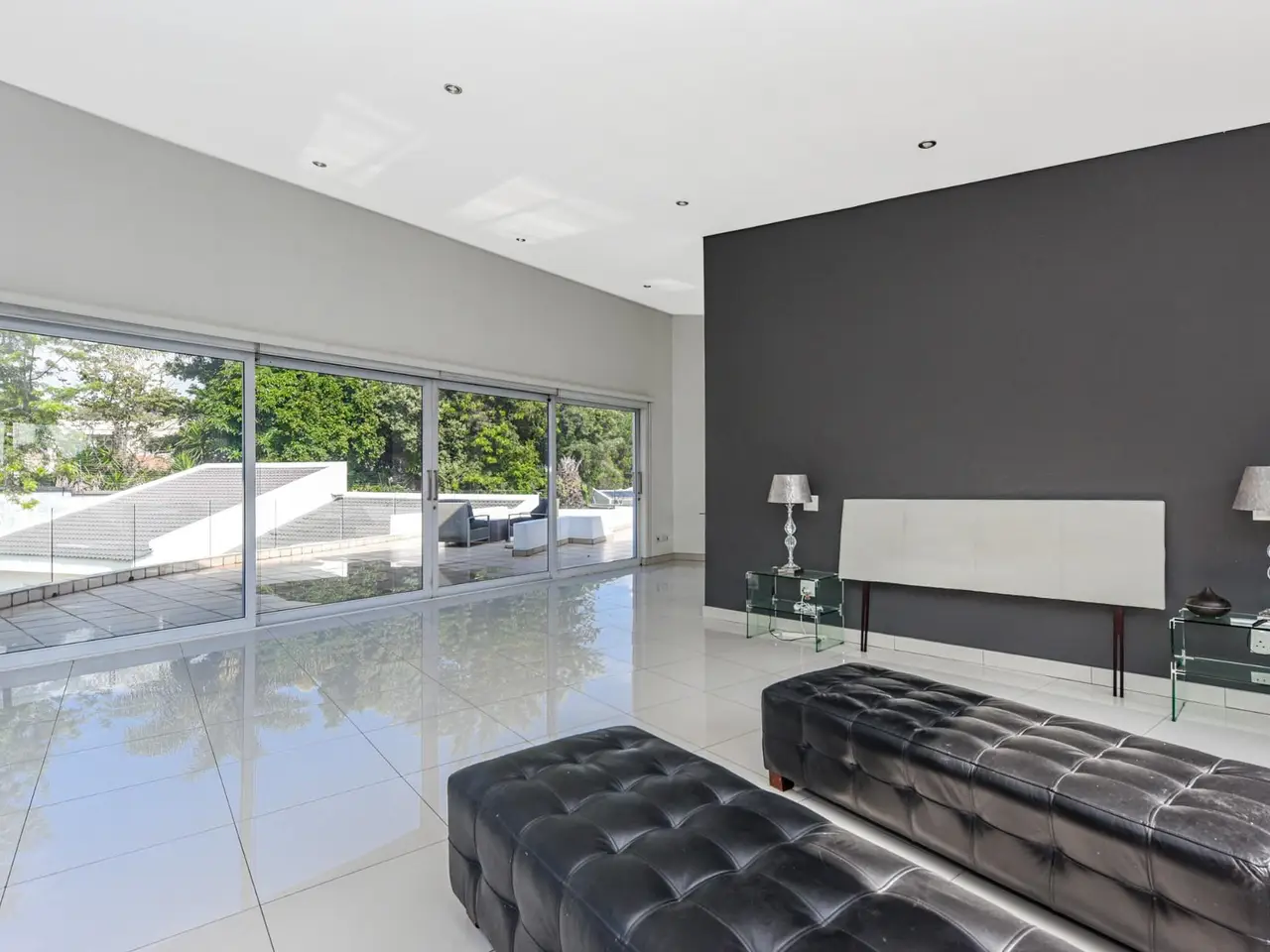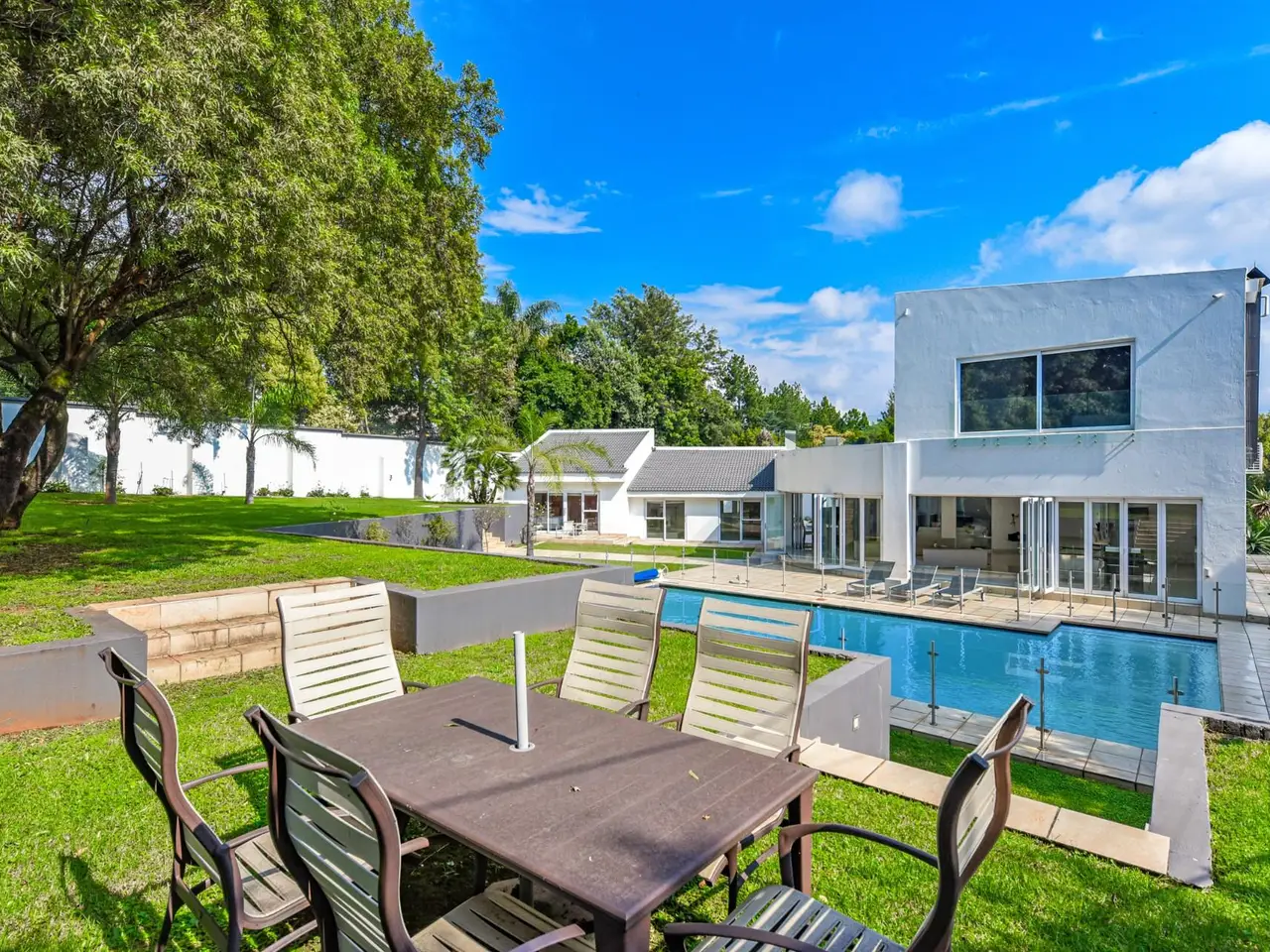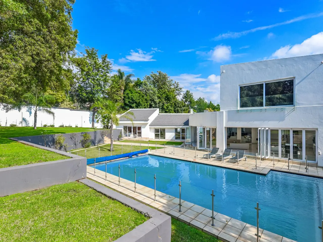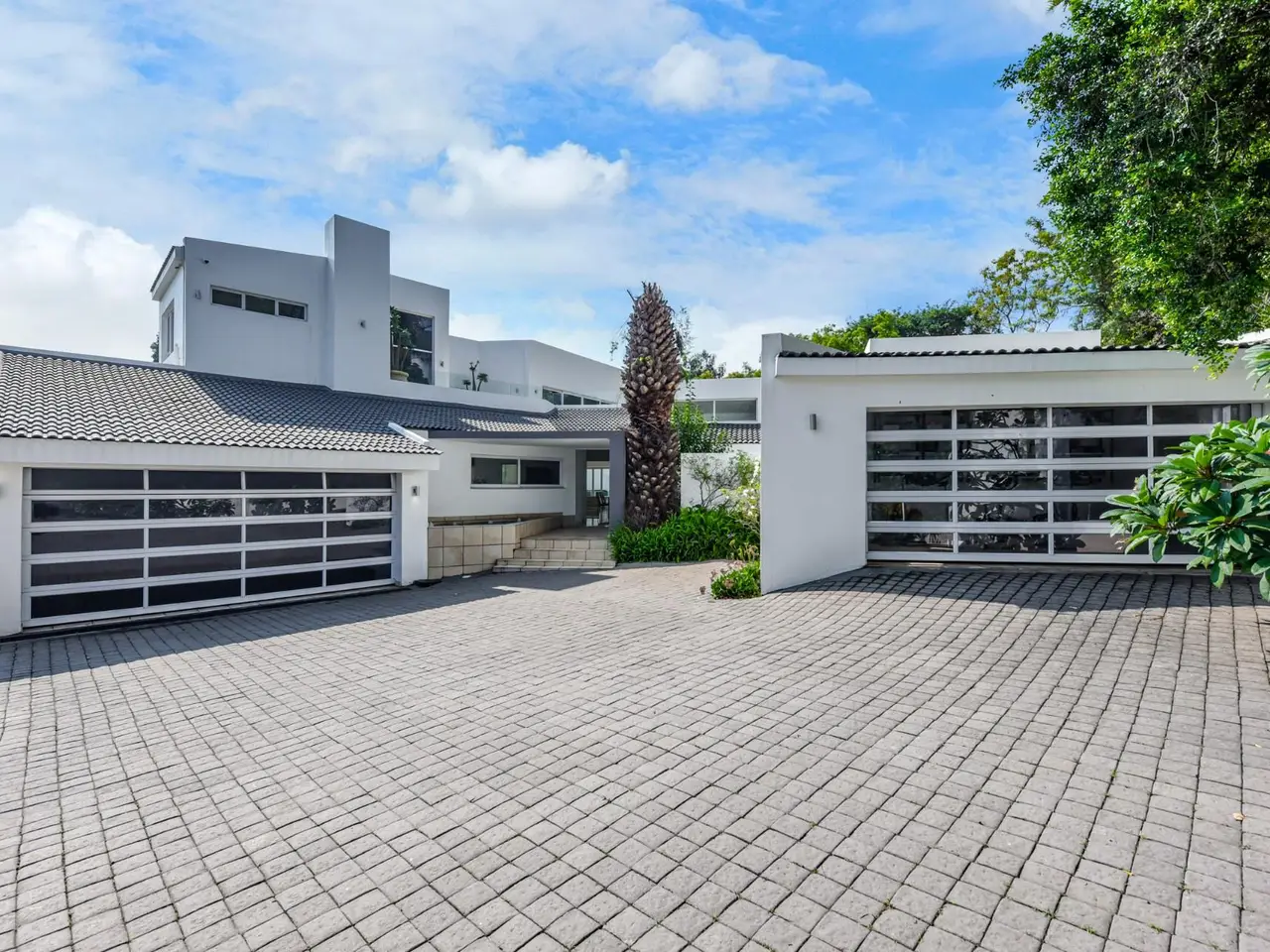 Modern Miami Feel Modern Mansion Masterpiece Tucked away at the end of a long, private driveway, this sleek, architectural statement offers over 2,000 square meters of contemporary luxury. A truly seamless blend of sophistication, comfort, and high-end entertaining, this five bedroom residence is designed for those who appreciate space, privacy, and effortless style.***Grand Entrance and Living Spaces***Private and secure, this home is set back from the road for ultimate tranquility and discretion, with two double glass garages welcoming you home. Plus, ample parking in the drive. A showpiece open plan kitchen is a food lovers dream, with top-tier appliances, sleek finishes, and fluid integration into the grand, modern dining and lounge areas. A seamless flow of all the living areas, whilst being large enough for personal space, is divided by a stunning central gas fireplace that just anchors the living space.The living spaces lead to a vast, covered entertainers area with a sleek built-in bar and ample chill space - perfect for South Africas signature indoor-outdoor lifestyle.This is absolute elevated luxury and entertainment for those who are open to a fabulous lifestyle.Sprawling scullery and ample storage space keeping the home pristine and organised with ample storage throughout.Three bedrooms downstairs (one ensuite) all opening to the lush gardens and pool area. PLUS a dedicated home office, for a perfect quiet, private space for work or study.A striking winding staircase leads to the upper level entertainment hub and living area.Here you will find the Primary bedroom ensuite and an additional substantial bedroom also ensuite. Pure luxury and elegance.Upstairs there is also large lounge and equipped entertainment area, a glass wrapped balcony plus an airy, light-filled retreat come patio opening onto a rooftop deck with panoramic garden and pool views.Sunlit interiors and expansive skylights flood the home with natural light, creating an atmosphere of warmth and openness.Staff quarters, ensuring full-service convenience.This bold, contemporary home is more than just a residence it is a statement of modern luxury, crafted for those who LIVE LARGE, entertain often, and appreciate the finest in design and comfort.