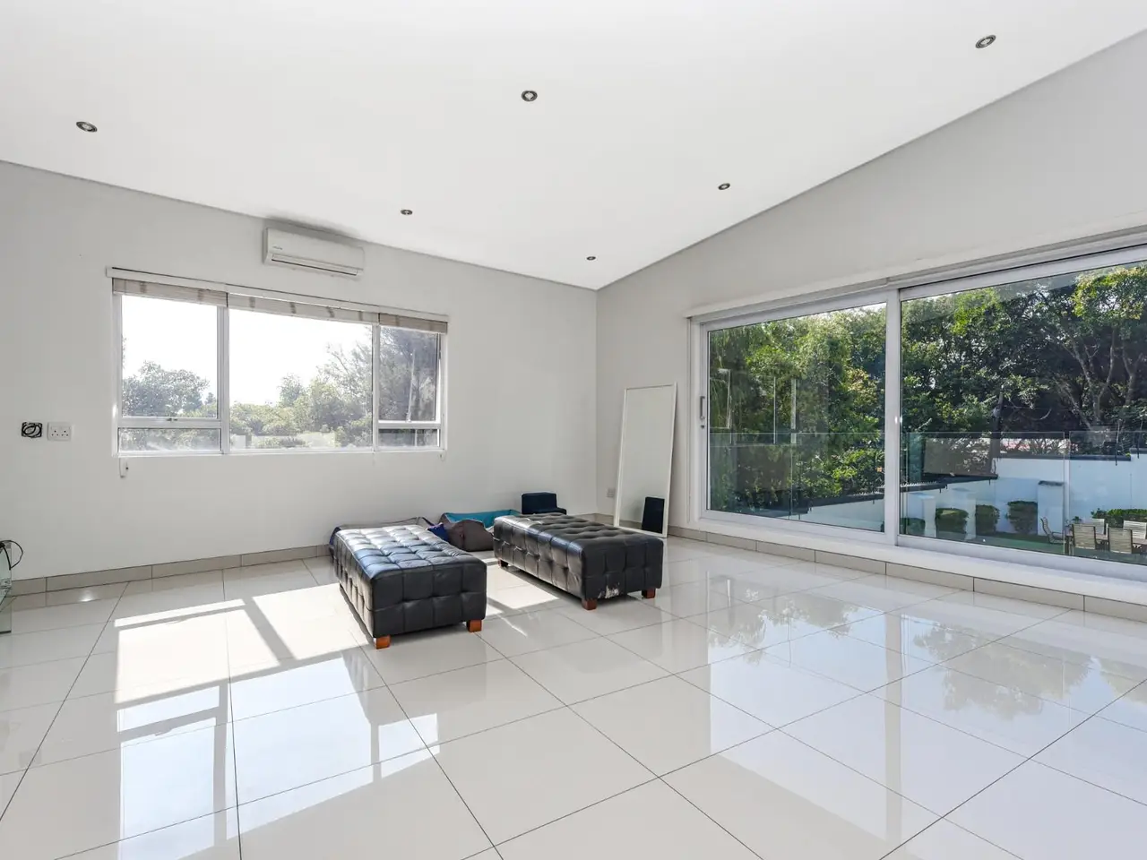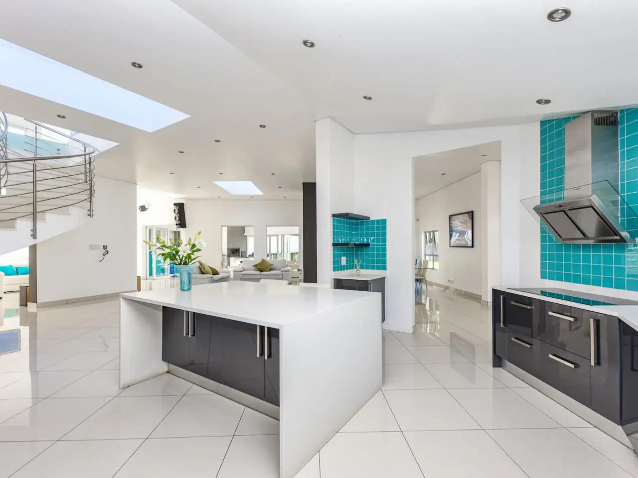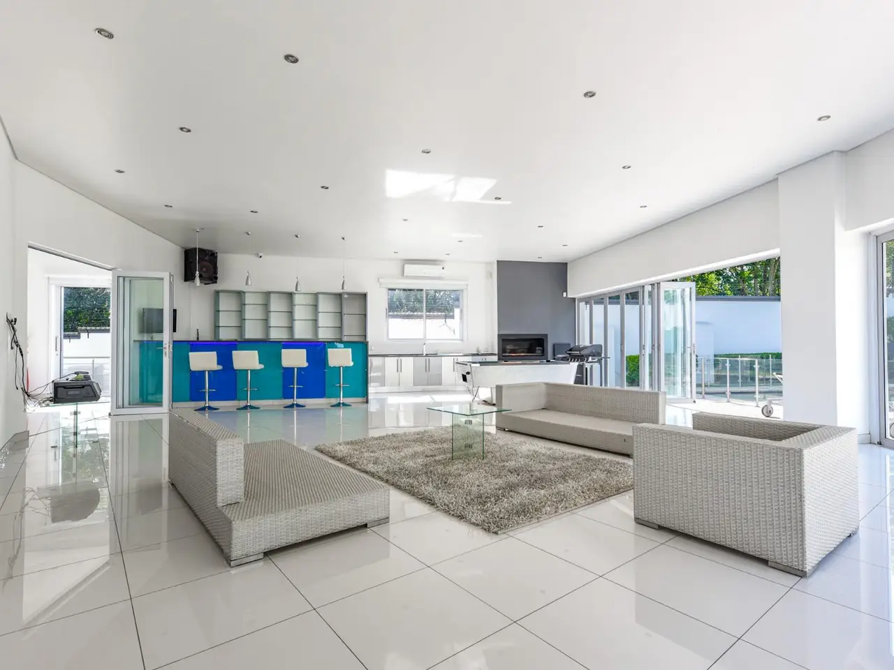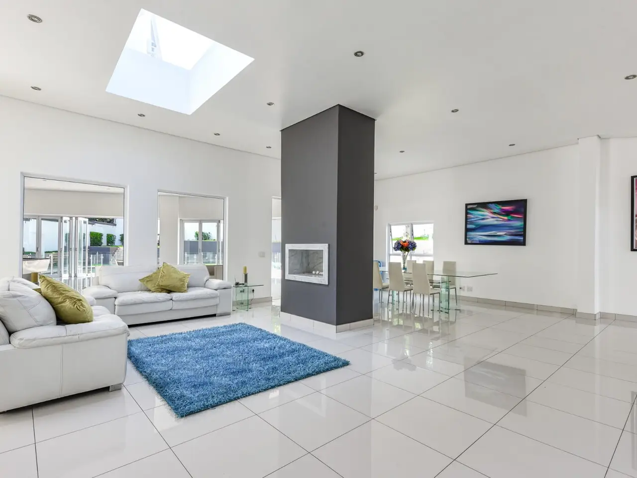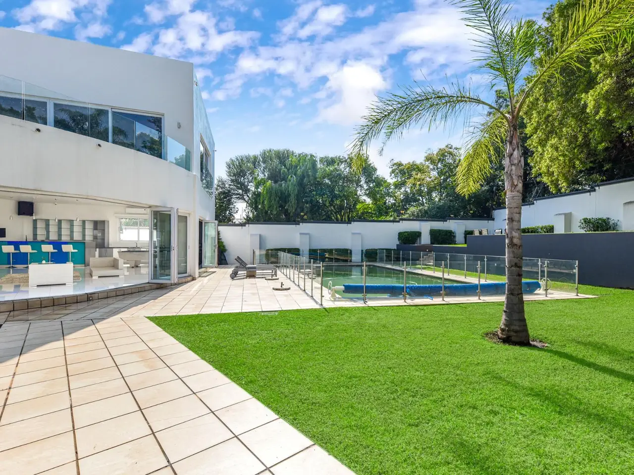 Modern Miami Feel Modern Mansion Masterpiece Tucked away at the end of a long, private driveway, this sleek, architectural statement offers over 2,000 square meters of contemporary luxury. A truly seamless blend of sophistication, comfort, and high-end entertaining, this five bedroom residence is designed for those who appreciate space, privacy, and effortless style.***Grand Entrance and Living Spaces***Private and secure, this home is set back from the road for ultimate tranquility and discretion, with two double glass garages welcoming you home. Plus, ample parking in the drive. A showpiece open plan kitchen is a food lovers dream, with top-tier appliances, sleek finishes, and fluid integration into the grand, modern dining and lounge areas. A seamless flow of all the living areas, whilst being large enough for personal space, is divided by a stunning central gas fireplace that just anchors the living space.The living spaces lead to a vast, covered entertainers area with a sleek built-in bar and ample chill space - perfect for South Africas signature indoor-outdoor lifestyle.This is absolute elevated luxury and entertainment for those who are open to a fabulous lifestyle.Sprawling scullery and ample storage space keeping the home pristine and organised with ample storage throughout.Three bedrooms downstairs (one ensuite) all opening to the lush gardens and pool area. PLUS a dedicated home office, for a perfect quiet, private space for work or study.A striking winding staircase leads to the upper level entertainment hub and living area.Here you will find the Primary bedroom ensuite and an additional substantial bedroom also ensuite. Pure luxury and elegance.Upstairs there is also large lounge and equipped entertainment area, a glass wrapped balcony plus an airy, light-filled retreat come patio opening onto a rooftop deck with panoramic garden and pool views.Sunlit interiors and expansive skylights flood the home with natural light, creating an atmosphere of warmth and openness.Staff quarters, ensuring full-service convenience.This bold, contemporary home is more than just a residence it is a statement of modern luxury, crafted for those who LIVE LARGE, entertain often, and appreciate the finest in design and comfort.