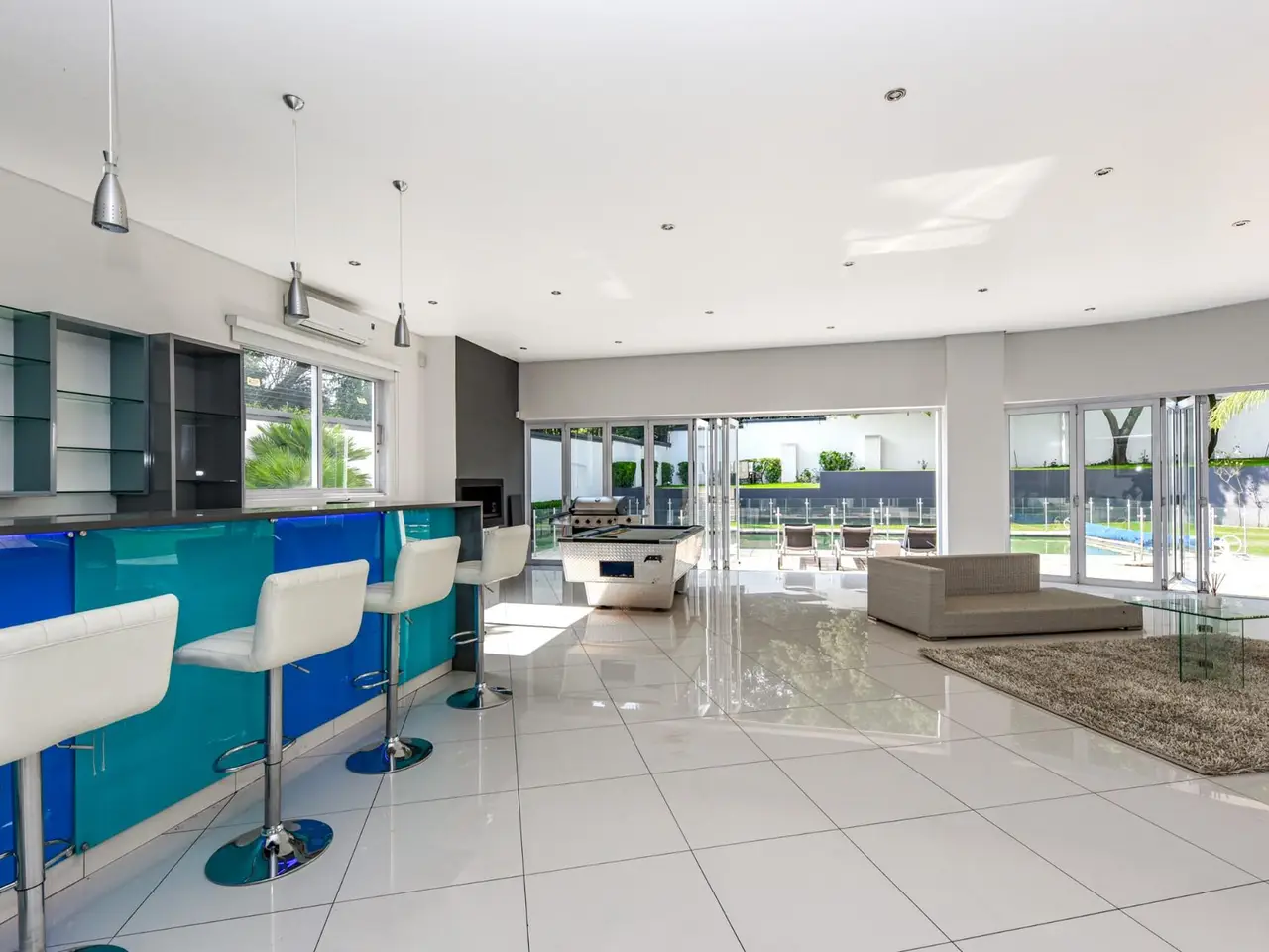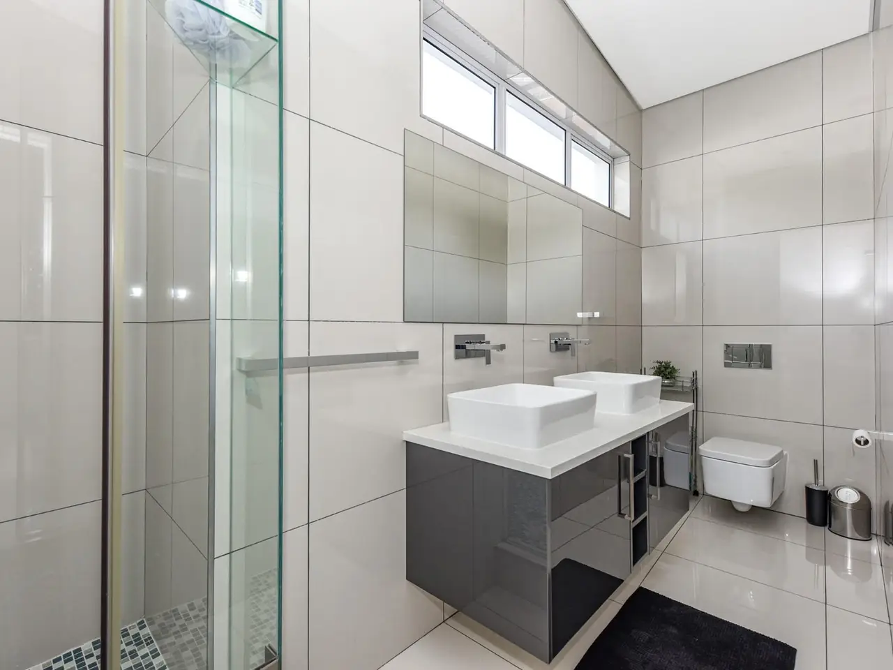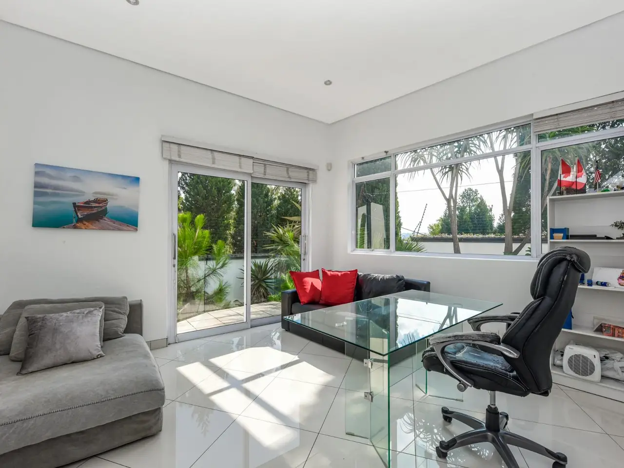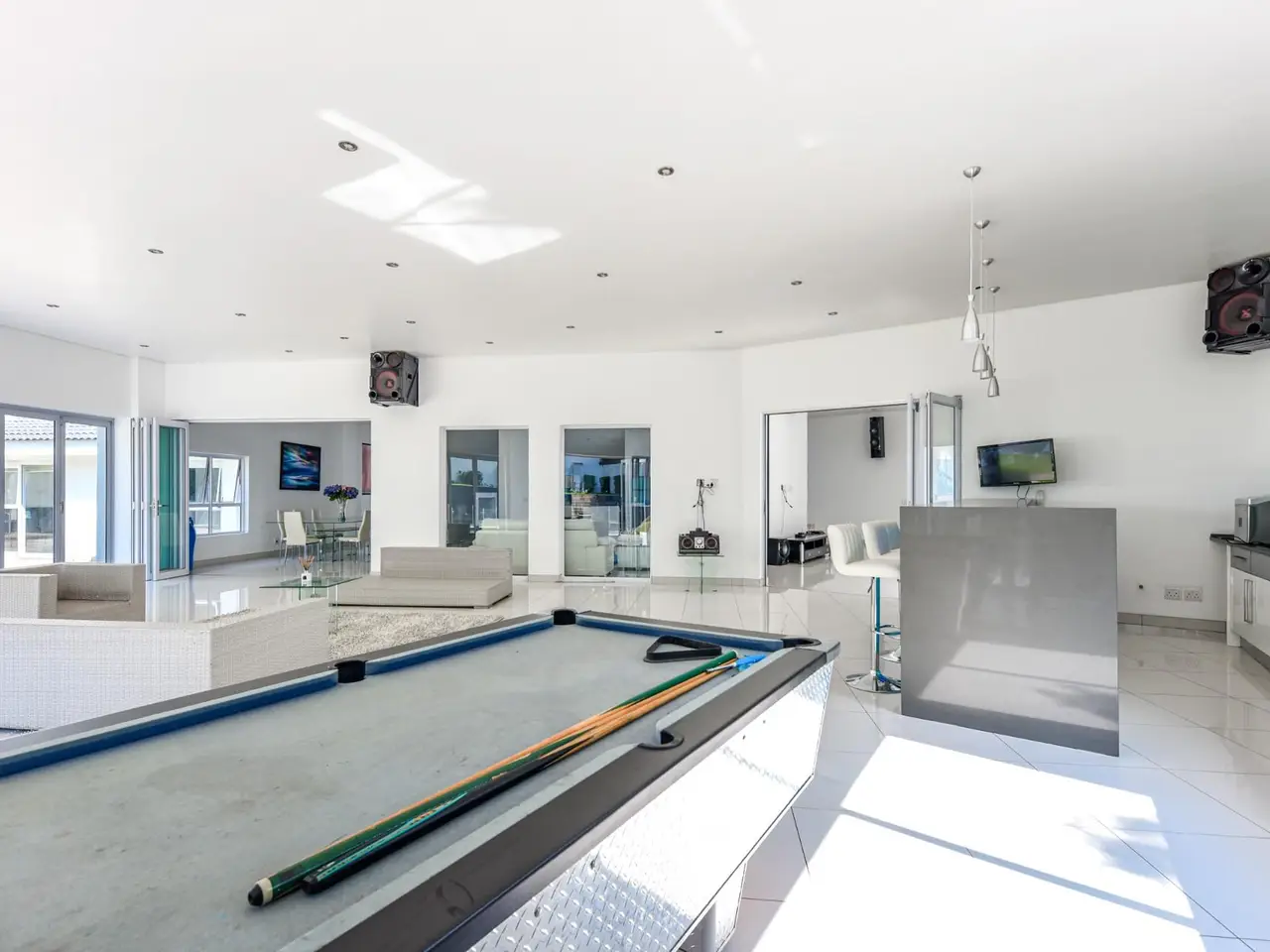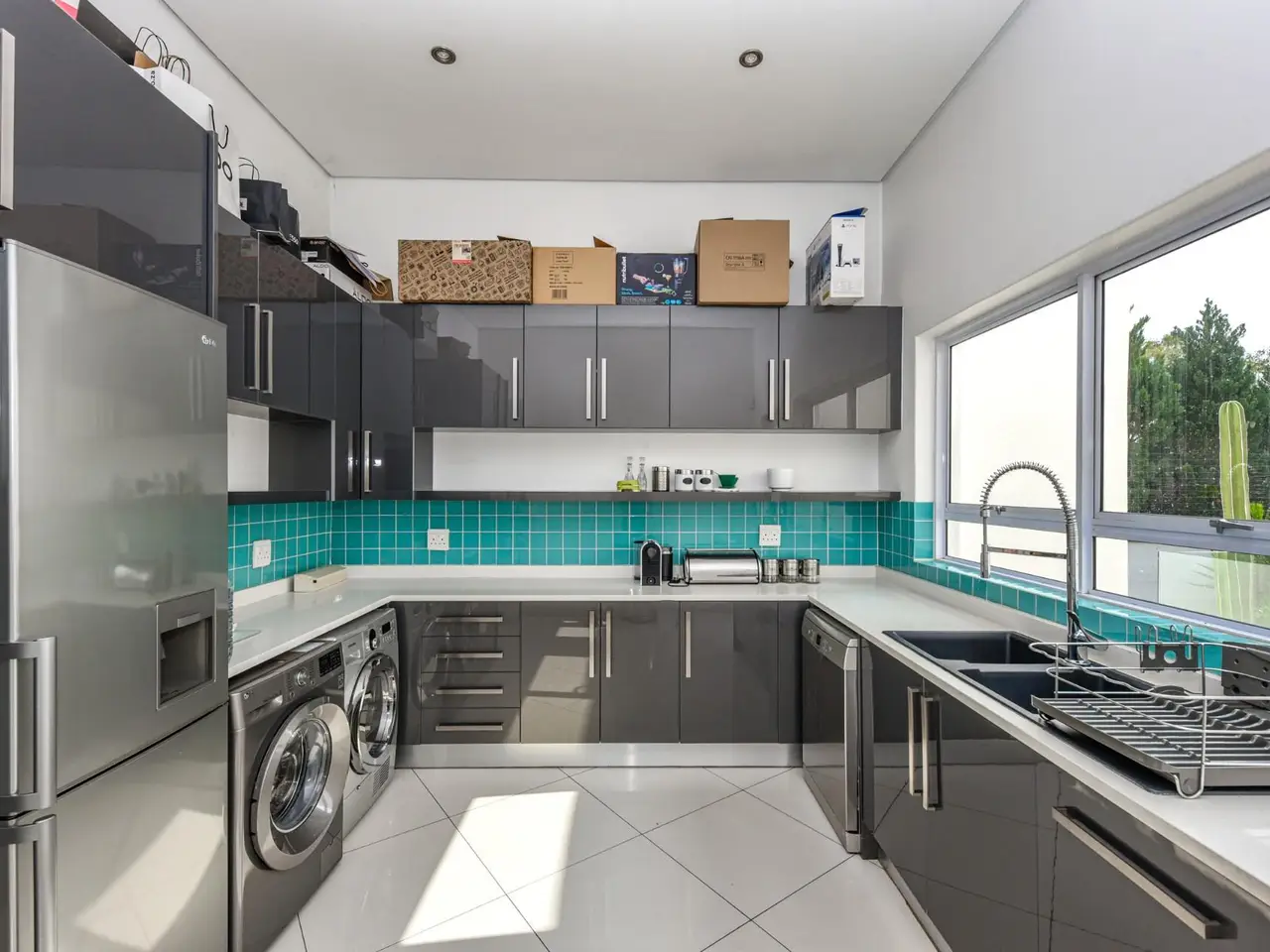 Modern Miami Feel Modern Mansion Masterpiece Tucked away at the end of a long, private driveway, this sleek, architectural statement offers over 2,000 square meters of contemporary luxury. A truly seamless blend of sophistication, comfort, and high-end entertaining, this five bedroom residence is designed for those who appreciate space, privacy, and effortless style.***Grand Entrance and Living Spaces***Private and secure, this home is set back from the road for ultimate tranquility and discretion, with two double glass garages welcoming you home. Plus, ample parking in the drive. A showpiece open plan kitchen is a food lovers dream, with top-tier appliances, sleek finishes, and fluid integration into the grand, modern dining and lounge areas. A seamless flow of all the living areas, whilst being large enough for personal space, is divided by a stunning central gas fireplace that just anchors the living space.The living spaces lead to a vast, covered entertainers area with a sleek built-in bar and ample chill space - perfect for South Africas signature indoor-outdoor lifestyle.This is absolute elevated luxury and entertainment for those who are open to a fabulous lifestyle.Sprawling scullery and ample storage space keeping the home pristine and organised with ample storage throughout.Three bedrooms downstairs (one ensuite) all opening to the lush gardens and pool area. PLUS a dedicated home office, for a perfect quiet, private space for work or study.A striking winding staircase leads to the upper level entertainment hub and living area.Here you will find the Primary bedroom ensuite and an additional substantial bedroom also ensuite. Pure luxury and elegance.Upstairs there is also large lounge and equipped entertainment area, a glass wrapped balcony plus an airy, light-filled retreat come patio opening onto a rooftop deck with panoramic garden and pool views.Sunlit interiors and expansive skylights flood the home with natural light, creating an atmosphere of warmth and openness.Staff quarters, ensuring full-service convenience.This bold, contemporary home is more than just a residence it is a statement of modern luxury, crafted for those who LIVE LARGE, entertain often, and appreciate the finest in design and comfort.