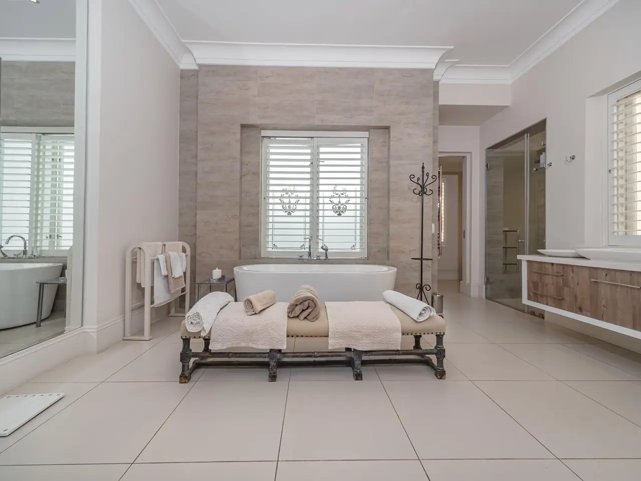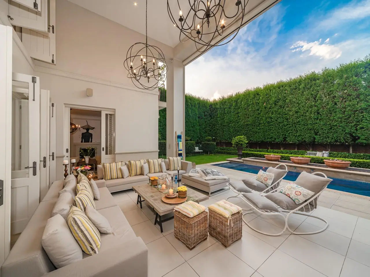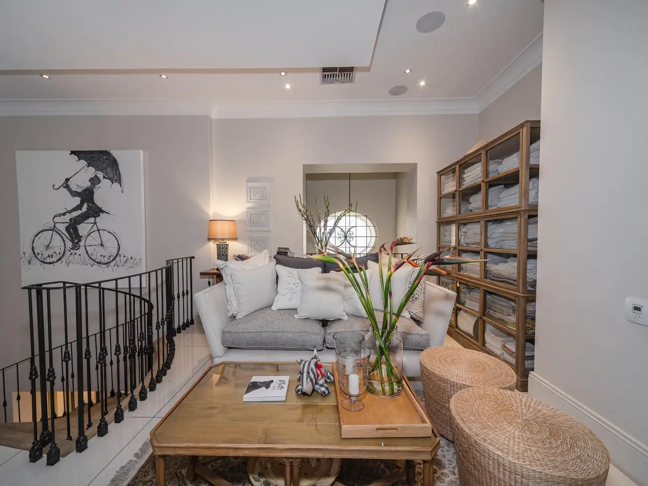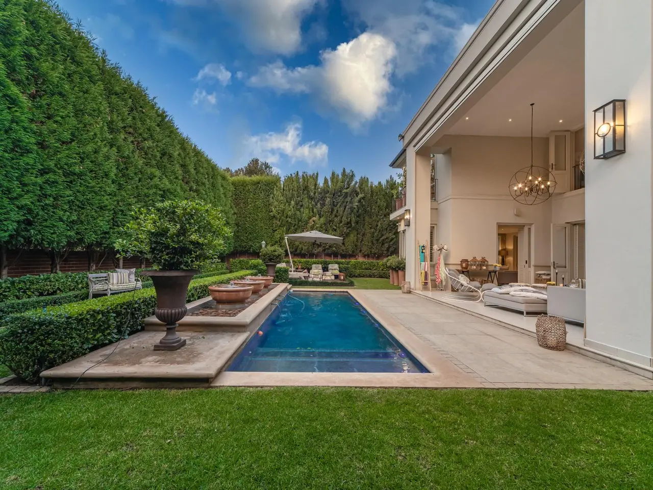 Exquisite Luxury Cluster Home in Hyde Park Discover a masterpiece of luxury and design in the heart of Hyde Park, where timeless elegance meets modern convenience. This 737m-¦ north-facing cluster home is situated in an exclusive, secure complex of only eight units, set on a boomed and guarded road with 24-hour armed guards, ensuring unparalleled privacy and safety. Designed by renowned architect Krynauw Nel and impeccably maintained, this residence offers the ultimate in sophistication and functionality. As you approach, decorative wrought iron gates open onto a landscaped forecourt, leading to an imposing double front door. Inside, a double-volume entrance hall welcomes you with its Classico white porcelain flooring, bespoke chandeliers, and a sweeping solid wood-clad staircase with intricate wrought iron balustrades. The entrance hall flows effortlessly into expansive reception areas, including a sitting room, a formal dining room, and a study which could easily be converted into a fifth bedroom suite. Custom Fornasetti wallpaper, American security shutters, and built-in gas fireplaces add to the luxurious ambiance.The heart of the home is the stunning eat-in kitchen, a chefGÇÖs dream with a waterfall granite island, Smeg appliances, a separate scullery, a server room, and a walk-in cold room. Exposed brick features lend a touch of character, while double French doors open onto a private courtyard perfect for informal dining.The outdoor spaces are equally breathtaking. The meticulously landscaped garden, with Italian Plaisir du Jardin pots, conifer trees, and decorative fountains, creates a tranquil oasis. A deep, double-volume veranda, complete with motorized blinds and a wind sensor, overlooks the heated Gunite swimming pool. Perfect for entertaining, the outdoor terrace is adorned with decorative chandeliers and offers both formal and casual seating areas.Upstairs, the home boasts four master-level en-suite bedrooms, each a sanctuary of luxury. The main suite is a retreat unto itself, featuring bespoke cabinetry, French oak flooring, a designer dressing room with wall-to-wall cupboards, and a central island. The spacious bathroom includes a double vanity, a freestanding bath, a walk-in shower, and separate water closet.Additional features include a Control4 home automation system, underfloor heating, piped air conditioning, a lift, and a solar hybrid heat pump system. Cavity doors throughout the home provide seamless transitions between spaces, enhancing both functionality and style.Security is paramount, with an alarm system, sensors, cameras, ClearVu fencing, and an armed guard station. The estate offers a generator, while the home is equipped with its own inverter for backup power.Completing this extraordinary offering is a full staff cottage, a double garage with GarageTek organizing system, and ample off-street parking.This residence is more than a home; it is a statement of elegance, privacy, and unparalleled luxury. Situated in one of JohannesburgGÇÖs most prestigious suburbs, it represents the pinnacle of refined living.Property Highlights:GÇó 4 en-suite bedroomsGÇó Heated swimming poolGÇó Landscaped garden with irrigationGÇó Bespoke finishes and fittingsGÇó State-of-the-art security and home automationGÇó Generator and inverter for power backupGÇó Water Back upExperience the finest in Hyde Park living with this immaculate, secure cluster home.
