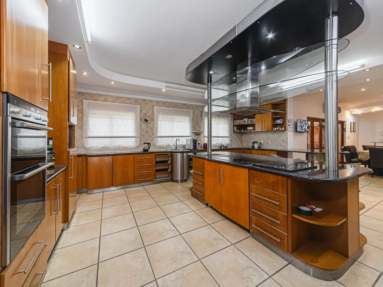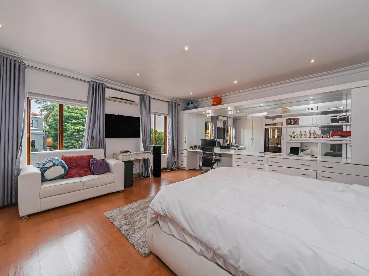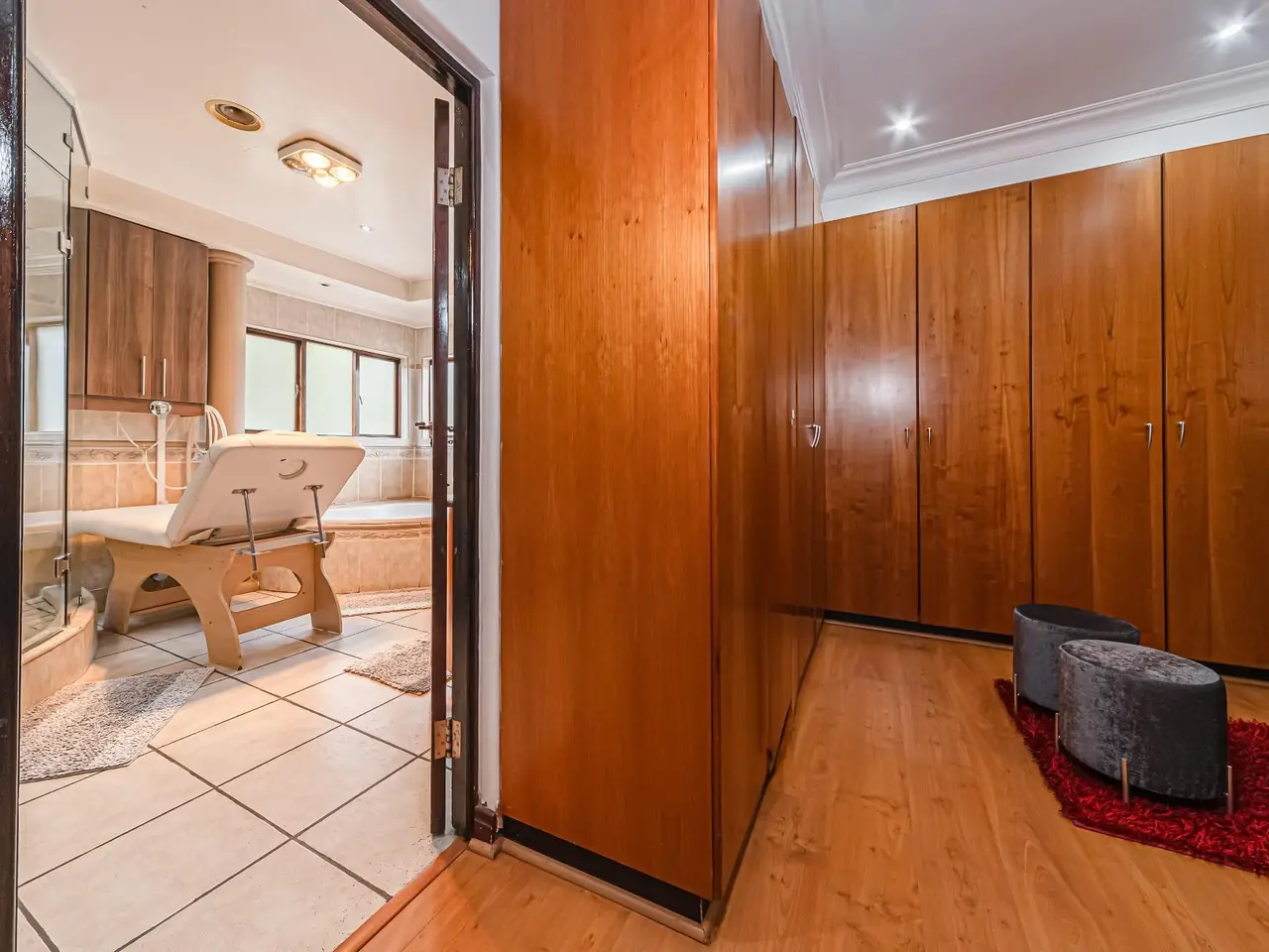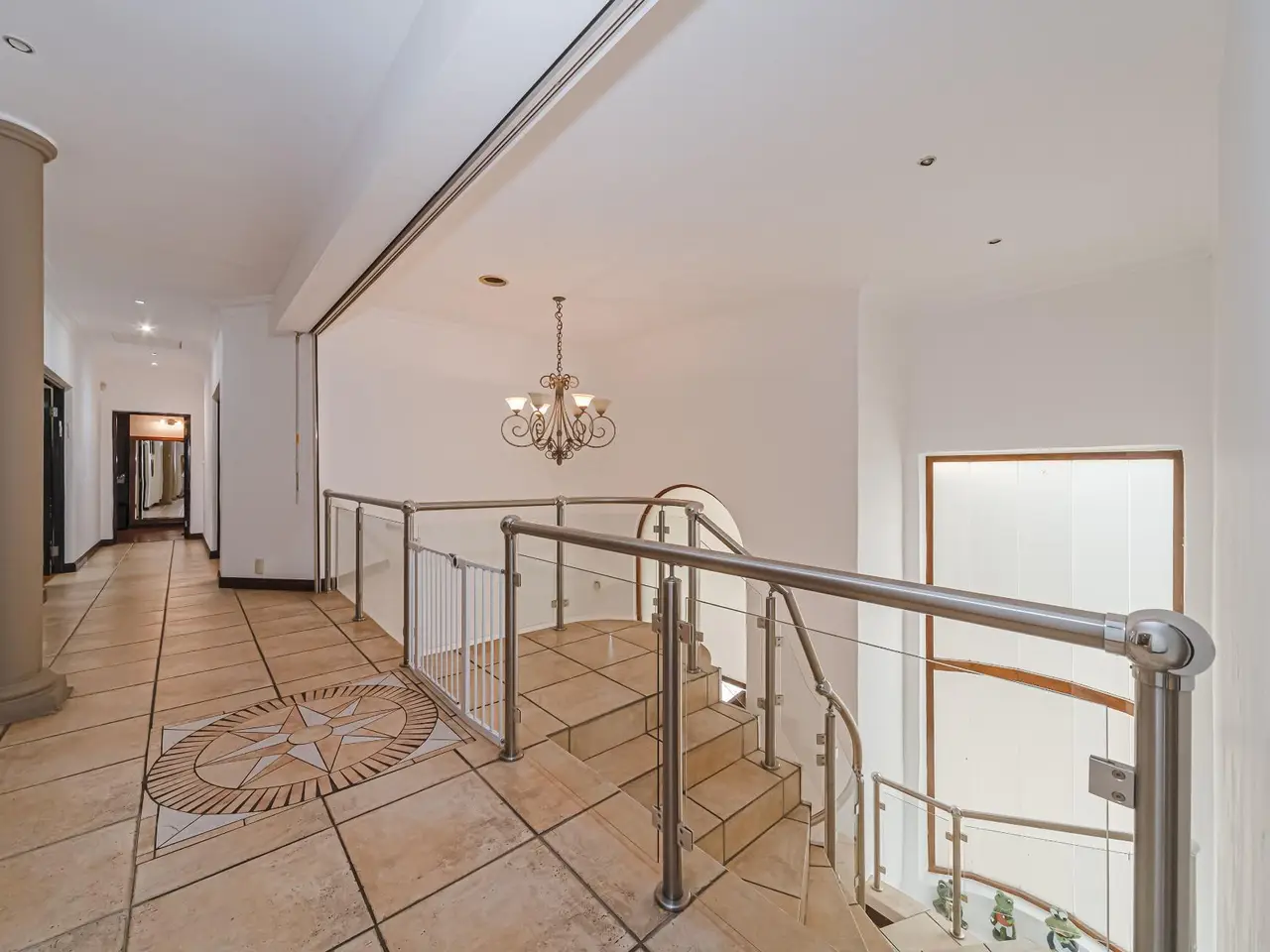 BIGGER IS BETTER for a large family. HIGH LEVEL SECURITY AND PRIVACY Welcome to one of the largest homes in the prominent, secure Ashby Estate in Woodmead, Sandton. At 1774sqms, this elegant, warm and sprawling family home offers a secure compound for those looking to live and grow with their families. The home, which is on a double stand in this secure estate has been built by the most esteemed masons of the time, resulting in a solid structure that boasts a contemporary Tuscan-style home with 6 bedrooms and 6.5 bathrooms. Upon entering the double doors, you are welcomed by the free flowing double volume and open planned living area all custom designed with Tuscan-inspired architecture. The central focus of this home is voluminous gourmet contemporary kitchen with granite counter tops throughout and light wood built-in-cupboards. A substantial centre island is perfect for a family get together offering a seamless fusion of chic and functionality. A separate laundry and scullery, allow for a spacious environment for all appliances and daily home keeping tasks. The continuous flow, formal lounge, dining area and TV rooms all are lead out to the tiled covered patio, with a built-in-braai overlooking the well-manicured garden. If entertaining is your way of life, this outdoor oasis featuring a luxurious sparkling swimming pool and inviting jacuzzi, are ideal for hosting guests and blissful relaxation. The basement offers the perfect space for fitness enthusiasts or those who would like to create a private cinema room. The master bedroom is truly magnificent, with walk in closet, a full bathroom ensuite tiled to the ceiling, includes a covered separate sunroom balcony and endless built in cupboards and storage space. Feel relaxed, safe and secure in this upmarket immaculate estate. No power outage concerns as this property as the home includes a 30KVA generator, ensuring peace of mind. This property has 3 staff rooms and a fully self-contained cottage, offering private accommodations for guests or family members.