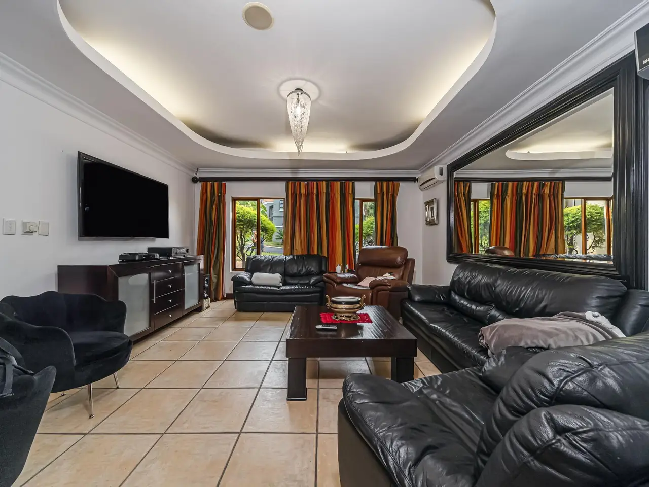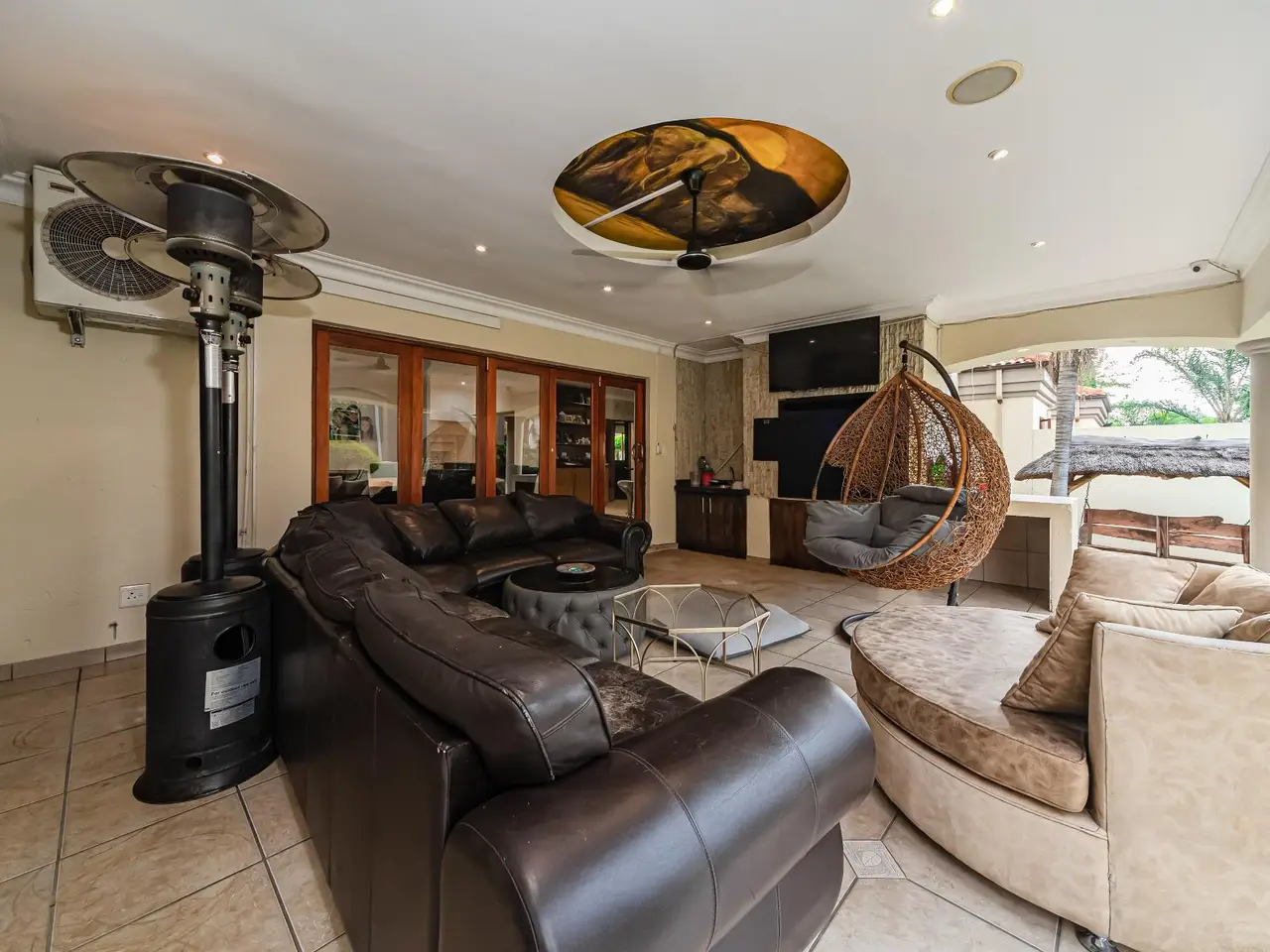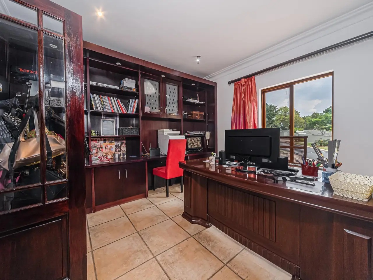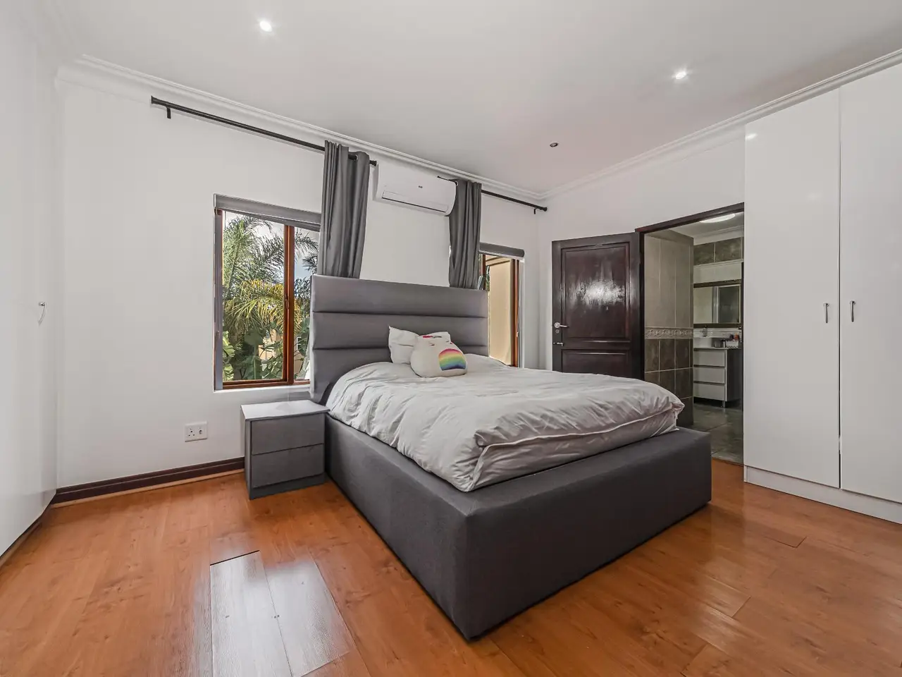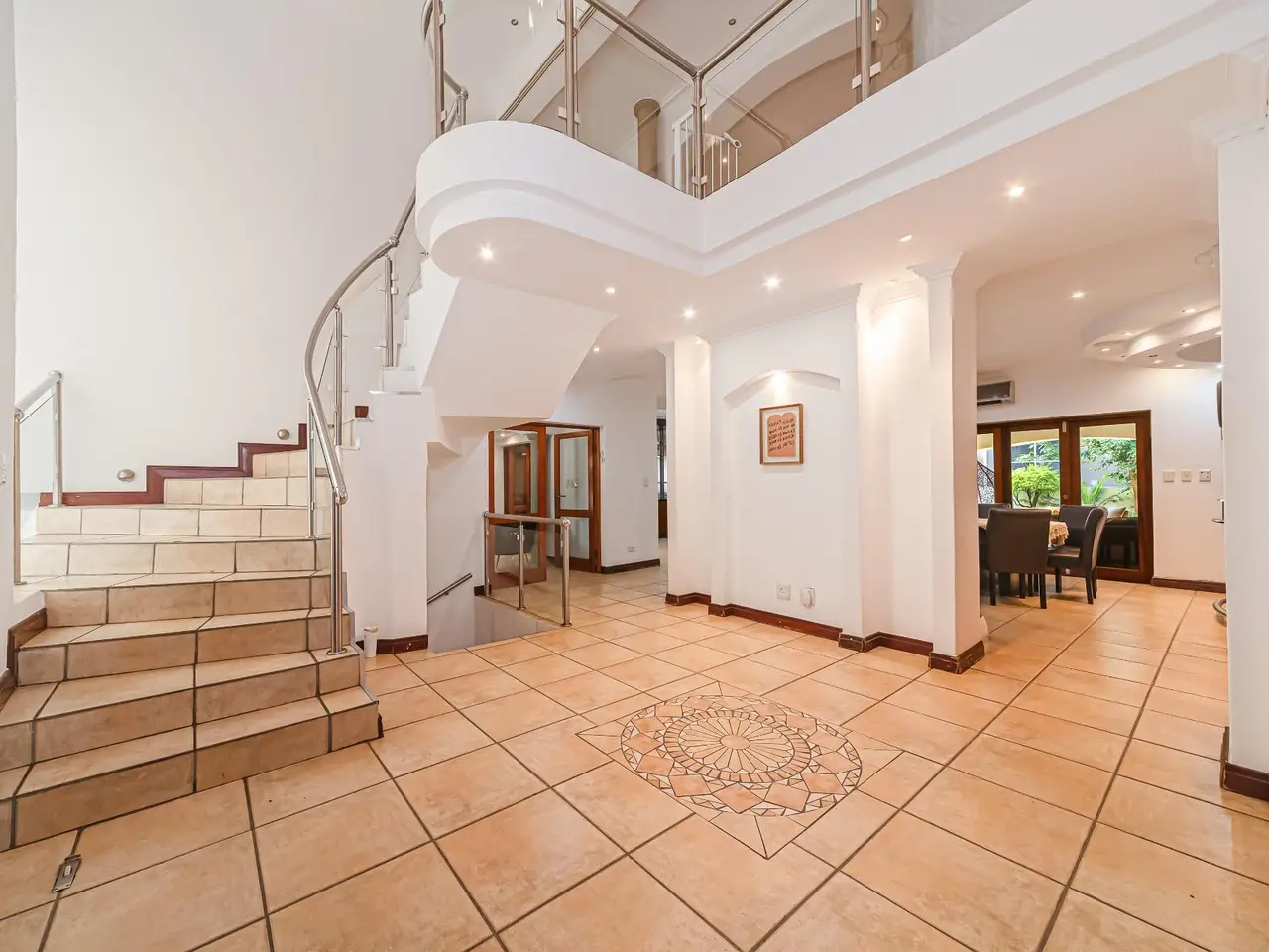 BIGGER IS BETTER for a large family. HIGH LEVEL SECURITY AND PRIVACY Welcome to one of the largest homes in the prominent, secure Ashby Estate in Woodmead, Sandton. At 1774sqms, this elegant, warm and sprawling family home offers a secure compound for those looking to live and grow with their families. The home, which is on a double stand in this secure estate has been built by the most esteemed masons of the time, resulting in a solid structure that boasts a contemporary Tuscan-style home with 6 bedrooms and 6.5 bathrooms. Upon entering the double doors, you are welcomed by the free flowing double volume and open planned living area all custom designed with Tuscan-inspired architecture. The central focus of this home is voluminous gourmet contemporary kitchen with granite counter tops throughout and light wood built-in-cupboards. A substantial centre island is perfect for a family get together offering a seamless fusion of chic and functionality. A separate laundry and scullery, allow for a spacious environment for all appliances and daily home keeping tasks. The continuous flow, formal lounge, dining area and TV rooms all are lead out to the tiled covered patio, with a built-in-braai overlooking the well-manicured garden. If entertaining is your way of life, this outdoor oasis featuring a luxurious sparkling swimming pool and inviting jacuzzi, are ideal for hosting guests and blissful relaxation. The basement offers the perfect space for fitness enthusiasts or those who would like to create a private cinema room. The master bedroom is truly magnificent, with walk in closet, a full bathroom ensuite tiled to the ceiling, includes a covered separate sunroom balcony and endless built in cupboards and storage space. Feel relaxed, safe and secure in this upmarket immaculate estate. No power outage concerns as this property as the home includes a 30KVA generator, ensuring peace of mind. This property has 3 staff rooms and a fully self-contained cottage, offering private accommodations for guests or family members.