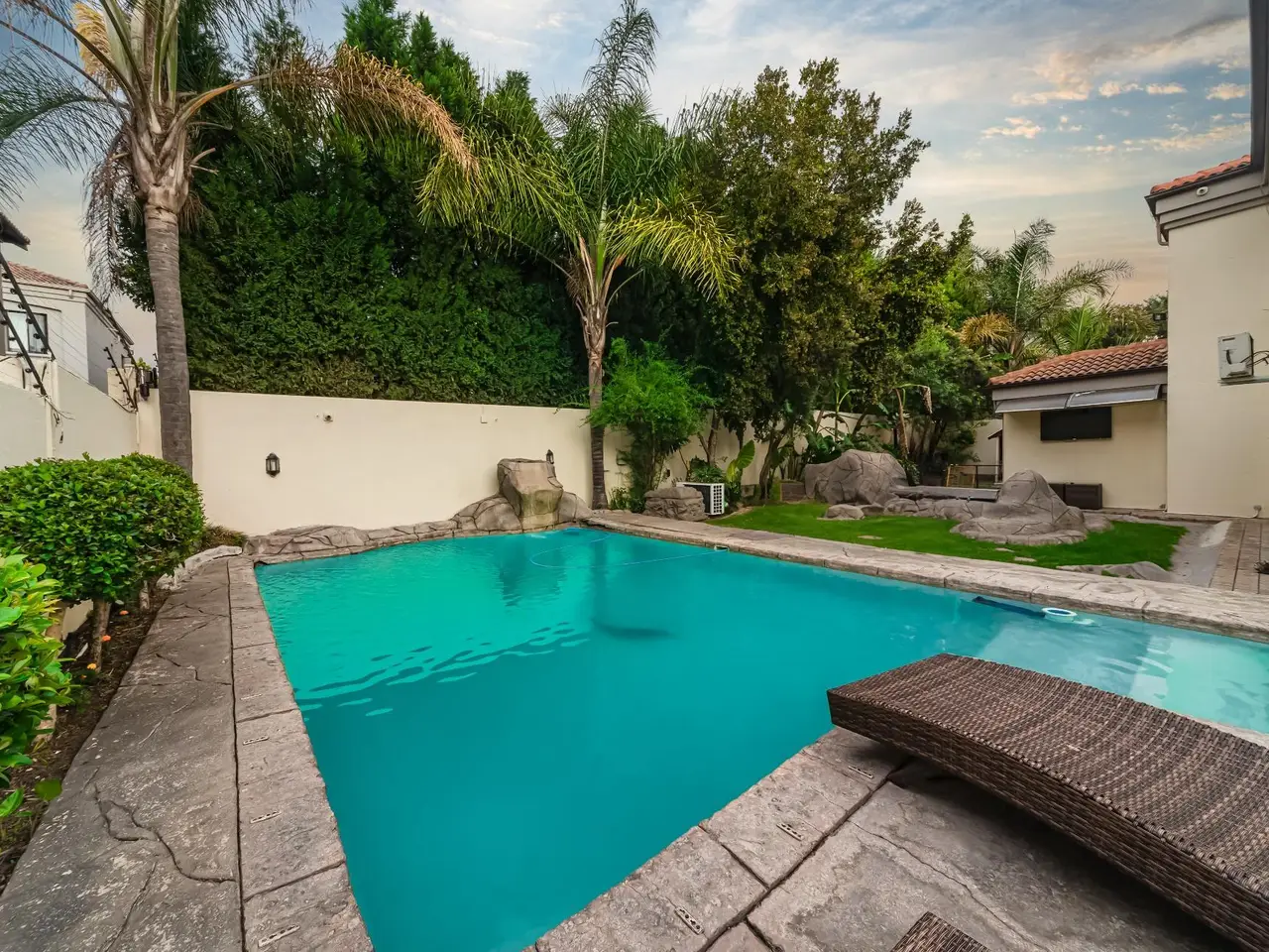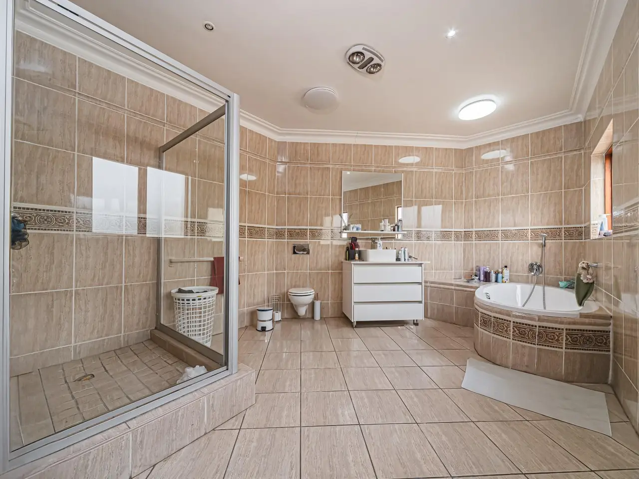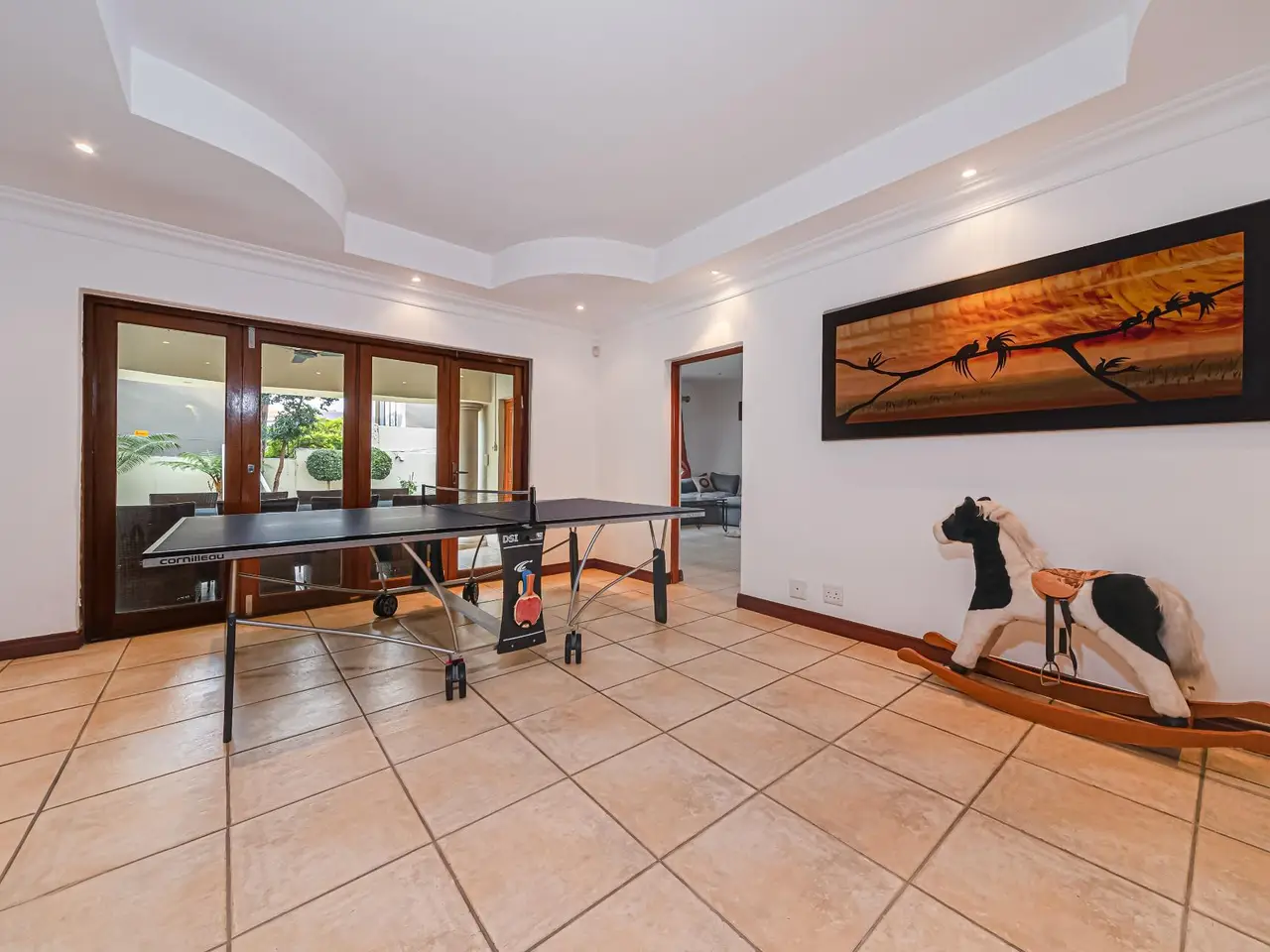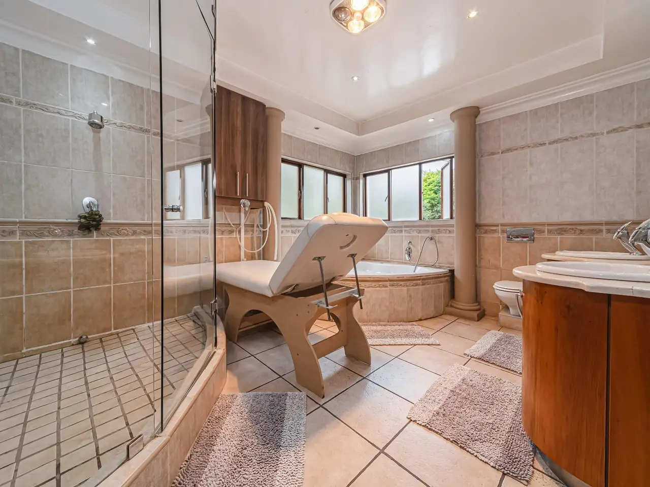 BIGGER IS BETTER for a large family. HIGH LEVEL SECURITY AND PRIVACY Welcome to one of the largest homes in the prominent, secure Ashby Estate in Woodmead, Sandton. At 1774sqms, this elegant, warm and sprawling family home offers a secure compound for those looking to live and grow with their families. The home, which is on a double stand in this secure estate has been built by the most esteemed masons of the time, resulting in a solid structure that boasts a contemporary Tuscan-style home with 6 bedrooms and 6.5 bathrooms. Upon entering the double doors, you are welcomed by the free flowing double volume and open planned living area all custom designed with Tuscan-inspired architecture. The central focus of this home is voluminous gourmet contemporary kitchen with granite counter tops throughout and light wood built-in-cupboards. A substantial centre island is perfect for a family get together offering a seamless fusion of chic and functionality. A separate laundry and scullery, allow for a spacious environment for all appliances and daily home keeping tasks. The continuous flow, formal lounge, dining area and TV rooms all are lead out to the tiled covered patio, with a built-in-braai overlooking the well-manicured garden. If entertaining is your way of life, this outdoor oasis featuring a luxurious sparkling swimming pool and inviting jacuzzi, are ideal for hosting guests and blissful relaxation. The basement offers the perfect space for fitness enthusiasts or those who would like to create a private cinema room. The master bedroom is truly magnificent, with walk in closet, a full bathroom ensuite tiled to the ceiling, includes a covered separate sunroom balcony and endless built in cupboards and storage space. Feel relaxed, safe and secure in this upmarket immaculate estate. No power outage concerns as this property as the home includes a 30KVA generator, ensuring peace of mind. This property has 3 staff rooms and a fully self-contained cottage, offering private accommodations for guests or family members.
