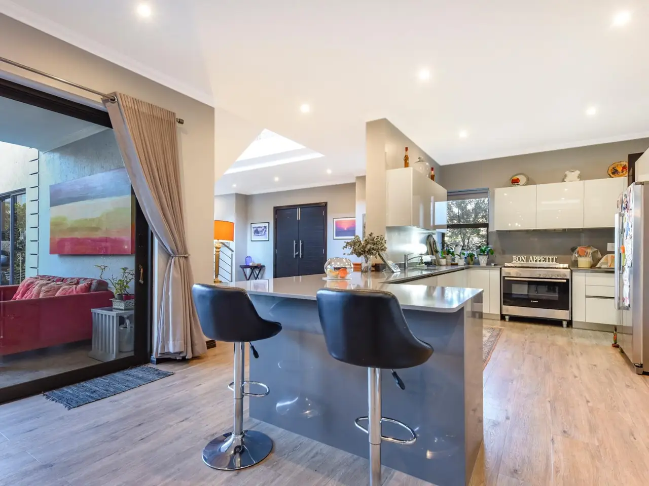 ONE FORREST ESTATE ~ Where Prestige Meets Privacy in this elite living estate. Ultra Exclusive, Impeccably Secure, Unapologetically Refined. A private, tree lined expansive sanctuary where luxury unfolds quietly and nature sets the tone. Wide avenues, serene greenbelts, and top notch security systems, create a lifestyle of peace, freedom, and absolute privacy. This contemporary double-storey home offers effortless, open plan living with an emphasis on light, space, and flow. Property features: 4 Bedrooms, all en suite 3 Bedrooms upstairs, 1 guest suite downstairs Spacious open-plan lounge, dining, and stunning kitchen Seamless indoor-outdoor flow to covered patio, large wooden deck and swimming pool and garden Double garage with direct access High ceilings, clean lines, premium finishes Staff Quarters Scullery and Laundry 3 Garages Storeroom and Gardeners WC Estate highlights: 24-hour security with biometric access Lush, established landscaping and walking paths Boutique collection of architect-designed homes Prime location close to top schools, Sandton CBD, and medical facilities A home for those who value elegance, privacy, and a deep connection to nature. ONE FORREST ESTATE is not just an address, it's a way of luxury and serenity.