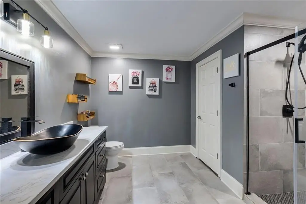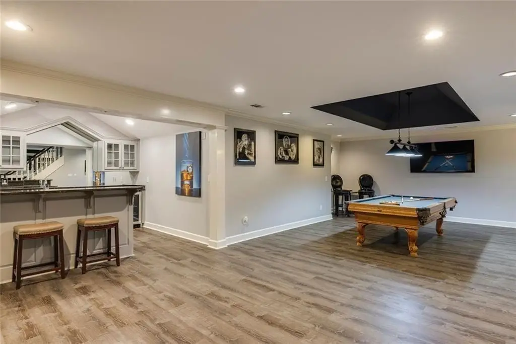 This stunning home, beautifully designed and thoughtfully renovated, sits on over an acre in a private cul-de-sac in the desirable Jeff Ferry Manor neighborhood. Surrounded by professionally landscaped grounds, the home has been impeccably maintained and offers the perfect blend of elegance, comfort, and modern sophistication. The grand two-story marble foyer opens to soaring ceilings, hardwood floors, and both front and rear staircases. The formal living room with fireplace flows into a banquet-sized dining room, while the breathtaking two-story great room features a dramatic wall of windows, stacked-stone fireplace, and custom cabinetry, opening to an expansive two-tier deck overlooking the private fenced backyard. The chef’s kitchen is a showpiece with custom white cabinetry, quartz counters, tile backsplash, professional-grade appliances, walk-in pantry, and a large center island where family and friends are sure to gather. A bright breakfast room with skylights connects to the vaulted family room with fireplace, creating an inviting everyday space. The oversized owner’s suite has an optional sitting area, spa-inspired bath, dual vanities, soaking tub, walk-in shower, and two spacious walk-in closets. Upstairs are three large ensuite bedrooms with large walk-in closets. A hidden sitting room is shared by two of the bedrooms-perfect for teenagers. The terrace level is built for entertaining and is equipped with a game room, full bar area, family room with fireplace, home theatre with custom seating and a state-of-the-art sound system. Not to be missed is a spectacular night sky ceiling. Additional spaces include a bedroom, full bath, office, exercise room, and flexible areas for whatever your lifestyle requires. With four fireplaces, new windows, an open layout, and attention to detail throughout, this home truly has it all. Located in Sandy Springs, it’s close to top public and private schools, shopping, dining, Dunwoody Country Club, and has offers convenient access to interstates for enjoying all Atlanta has to offer.