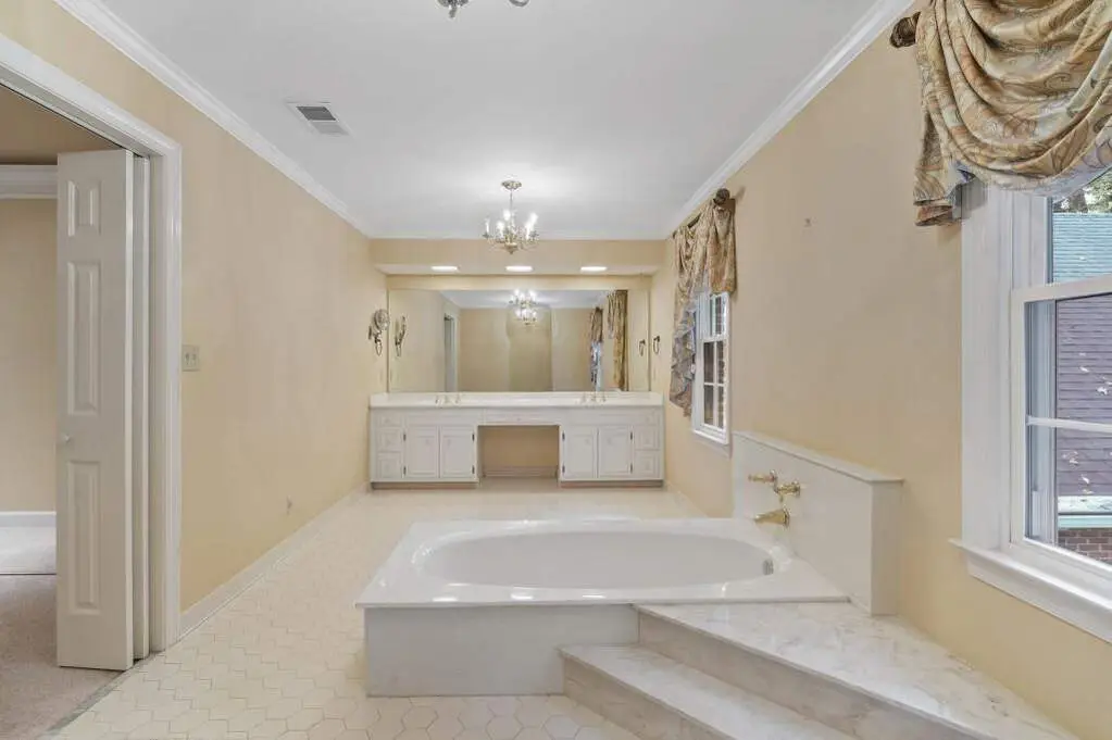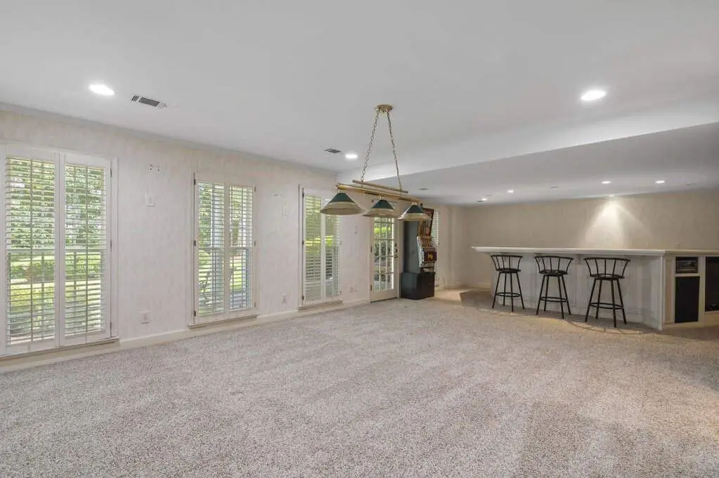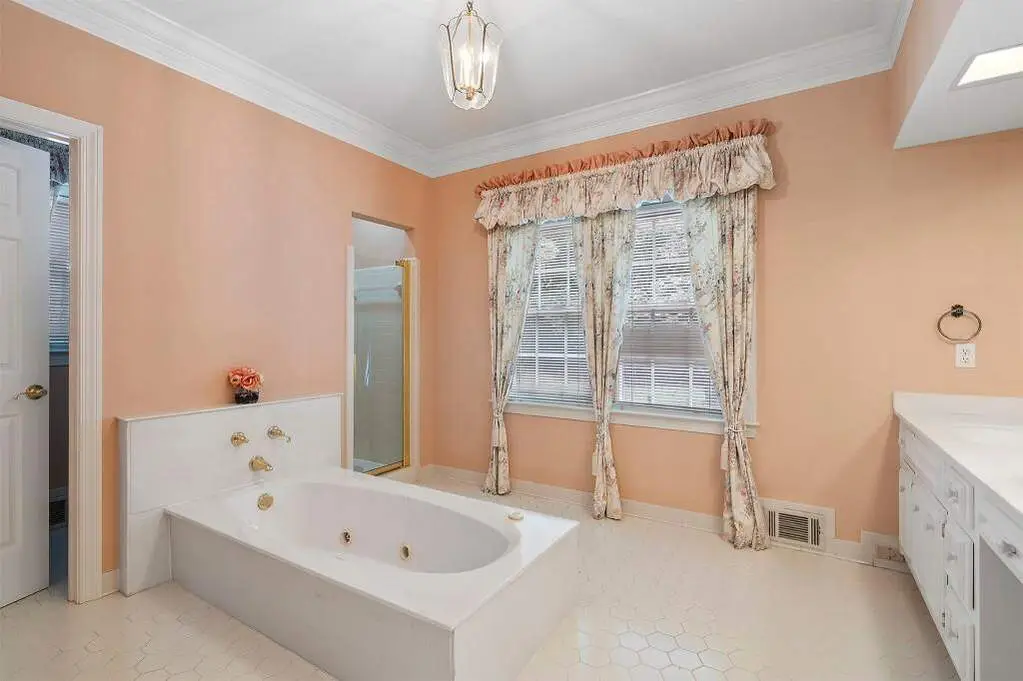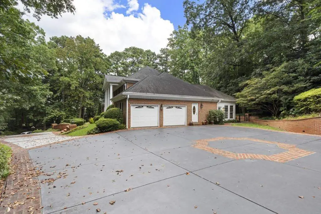 This elegant gated estate rests on 2.23 manicured acres in the heart of Sandy Springs, offering exceptional privacy, architectural sophistication, and an abundance of living space both inside and out. A long, landscaped driveway leads to a grand brick facade with classic columns. The grand double doors welcome you into a breathtaking two-story foyer featuring polished marble floors and a sweeping staircase. To the left, the formal living room invites conversation with its fireplace and abundant natural light, while across the foyer the formal dining room exudes elegance with marble flooring and a mirrored feature wall. The richly paneled den, accented by coffered ceilings and a fireplace, offers a warm and refined space for quiet reading or intimate gatherings. Nearby, a solarium with floor-to-ceiling windows and an antique fountain opens into an expansive media and entertainment room, complete with built-in cabinetry, a retractable awning, surround sound, and dramatic Palladian-style windows that flood the space with light. The heart of the home lies in the gourmet kitchen, with white custom cabinetry, porcelain tile flooring, stainless steel appliances including a built-in steamer, tile backsplash, and off-white Corian countertops. A spacious breakfast room and adjacent sunroom provide stunning views of the backyard, creating a peaceful setting for daily living. The main level also features a large primary suite with dual oversized closets and a private en suite bath, ideal for guests. Upstairs, the luxurious secondary primary suite is a true retreat, highlighted by a lighted double tray ceiling, spa-inspired bath with dual vanities, a jacuzzi tub, and a custom-designed oversized closet. Additional upstairs bedrooms are generously sized and share well-appointed baths, offering comfort and privacy for family and guests. The finished terrace level expands the home's living space with a versatile layout that includes a home office, a full bath, a wet bar, a game area