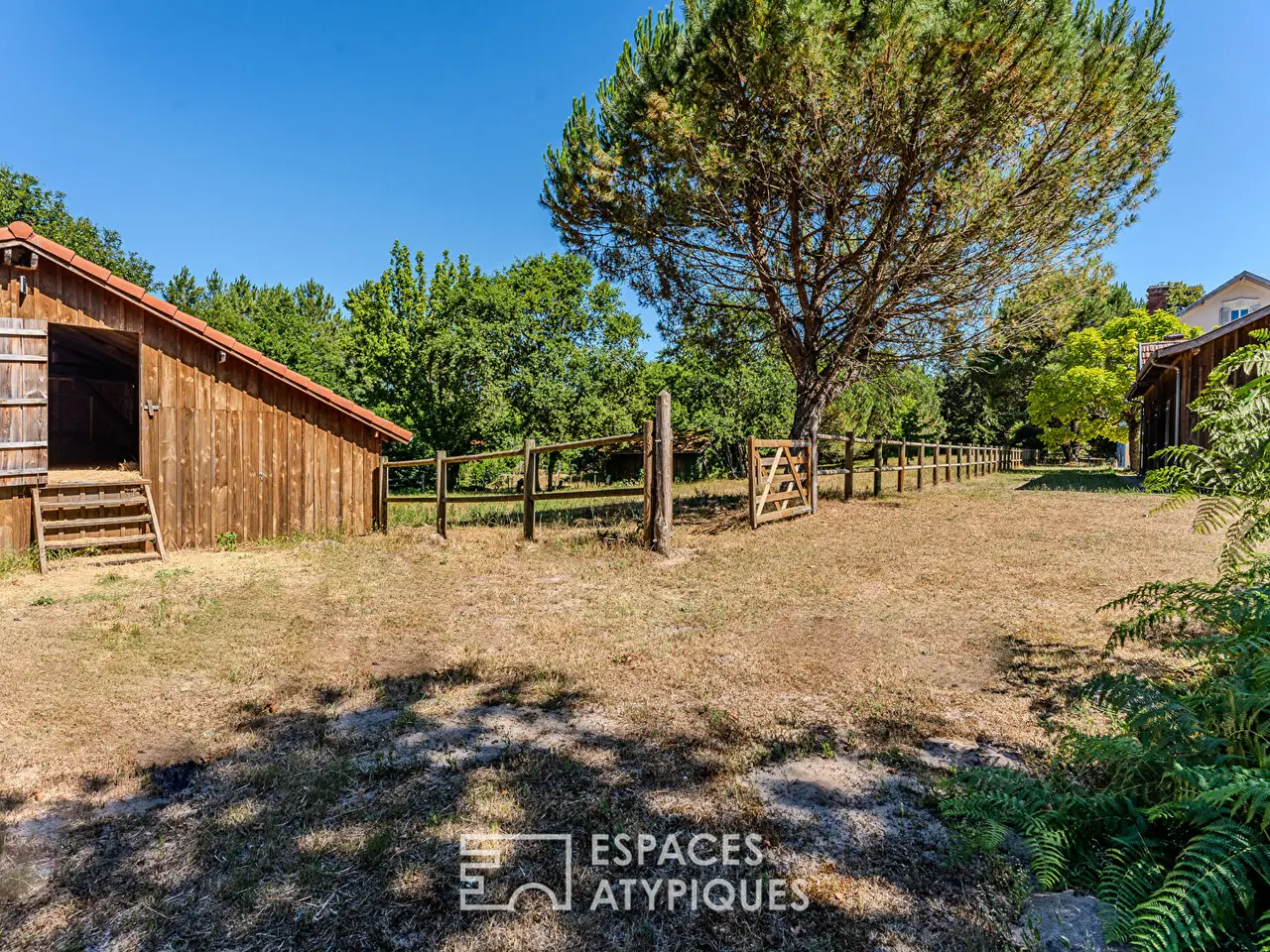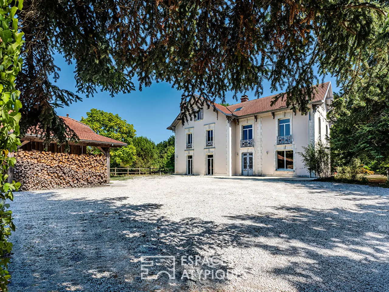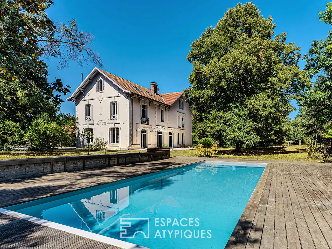 In Sanguinet, in the heart of a 1.4-hectare estate on the edge of the forest, this elegant mansion of approximately 360 sqm is spread over three levels. Carefully renovated, it combines old-world charm with high-end contemporary features. A true haven of peace, this exceptional property boasts a swimming pool, numerous outbuildings, and a wooded park with no overlooked views.The interior seduces with its generous volumes and omnipresent light. The ground floor features a vast living room, while a contemporary kitchen separated by a workshop glass wall extends this convivial space. The second living room, more intimate with its fireplace and library, is an invitation to relax.Upstairs, the master suite features a magnificent shower room and a large dressing room. Three spacious bedrooms and a bathroom complete this level.The pre-furnished top floor offers two additional bedrooms, a bathroom, and a large, modular space, providing the freedom to create, for example, an office, a workshop, or a games room.Outside, the park offers a preserved green setting, ideal for fully enjoying nature. The pool area also promises long moments of well-being.The property features a large barn, several shelters, and an equestrian area including two horse boxes and a tack room, perfect for lovers of forest walks and outdoor living projects.A rare place to live, this estate combines elegant character and remarkable amenities, in a privileged natural setting where calm and space reign supreme. A unique address for lovers of unique real estate while remaining close to Lake Sanguinet and its town center.REF. 11835EALDAdditional information* 12 rooms* 5 bedrooms* 1 bathroom* 2 shower rooms* Floor : 3* 3 floors in the building* Outdoor space : 15000 SQM* Property tax : 2 138 €Energy Performance CertificatePrimary energy consumptionb : 105 kWh/m2.yearHigh performance housing*A*105kWh/m2.year6*kg CO2/m2.yearB*C*D*E*F*GExtremely poor housing performance* Of which greenhouse gas emissionsb : 6 kg CO2/m2.yearLow CO2 emissions*A*6kg CO2/m2.yearB*C*D*E*F*GVery high CO2 emissionsEstimated average annual energy costs for standard use, indexed to specific years 2021, 2022, 2023 : between 2220 € and 3050 € Subscription IncludedAgency feesThe fees include VAT and are payable by the vendorMediatorMediation Franchise-Consommateurswww.mediation-franchise.com29 Boulevard de Courcelles 75008 ParisInformation on the risks to which this property is exposed is available on the Geohazards website : www.georisques.gouv.fr