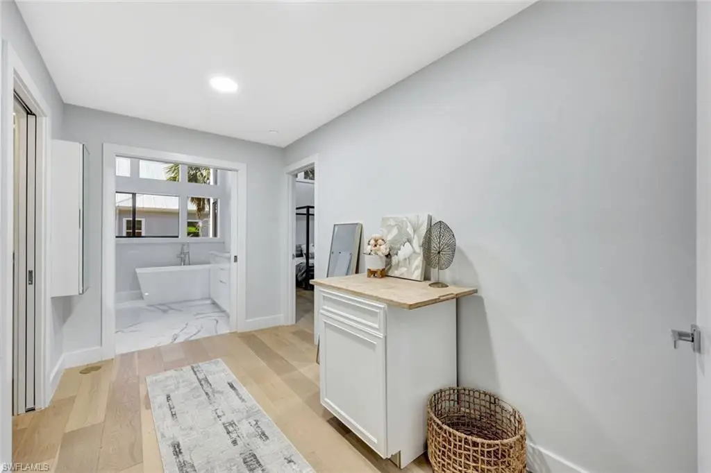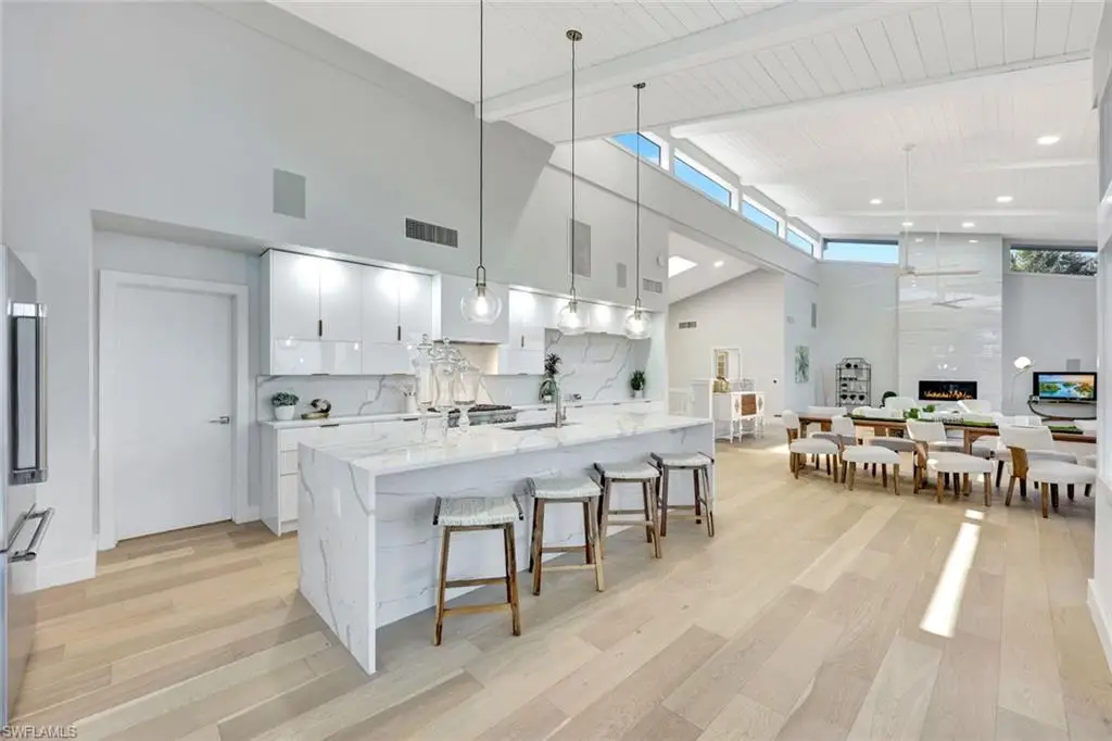 PRICE REDUCTION Please Bring Your Offers! Set within the serene enclave of Heron's Landing along the unspoiled waters of Clam Bayou, this extraordinary waterfront residence is a true architectural gem with furnishings negotiable. Originally envisioned in the spirit of Frank Lloyd Wright's Prairie-style design, the home reflects a deep connection to its natural surroundings through clean horizontal lines, expansive overhangs, and thoughtfully framed views that invite the outdoors in. Elegantly spanning over 3,000 square feet, the main level features four beautifully appointed bedrooms, three full bathrooms, and a powder room, offering both refined comfort and effortless flow. The primary suite is a sanctuary of its own, complete with dual walk-in closets, a spa-like soaking tub, and a luxurious dual-head shower. Two guest suites each enjoy private en suite baths, while a fourth bedroom provides double closets and serene treetop views. Graceful soaring ceilings and walls of glass allow natural light to cascade through the interiors, highlighting the architectural artistry and drawing focus to the lush mangroves and tranquil waters beyond. A private elevator ensures seamless movement between levels, adding ease and elegance to daily living. The heart of the home the chef's kitchen combines striking aesthetics with culinary functionality. Outfitted with a waterfall-edge quartz island, sleek gloss cabinetry, top-tier Thermador appliances, and a pot filler faucet, it's as well suited for quiet mornings as it is for lavish entertaining. Nearby, the laundry room offers abundant built-in storage and a deep utility sink for added practicality. The lower level features a 2-car garage and three versatile bonus rooms, one with an en suite bathùperfect as a studio, fitness room, or guest retreat. Outdoors, a saltwater pool and spa invite restful afternoons and al fresco evenings beneath the stars, framed by the natural beauty of Sanibel Island. Tucked along the peaceful edge of Clam Bayou, this residence captures enchanting views at every turnùimagine sipping coffee as herons glide across the water, or launching your kayak from the shoreline for an afternoon paddle through protected waters. This is more than a homeùit is an experience in graceful coastal living, where architectural sophistication and nature exist in perfect harmony. Opportunities like this are rare; schedule your private showing and discover the soul of Sanibel living.