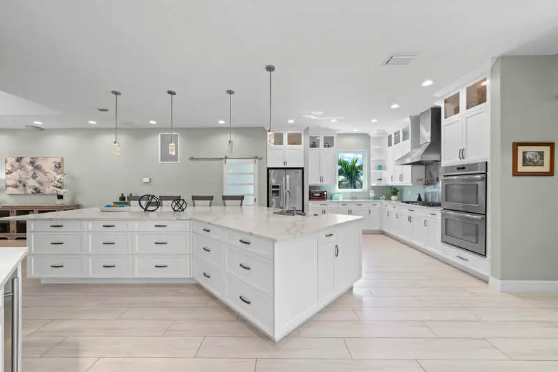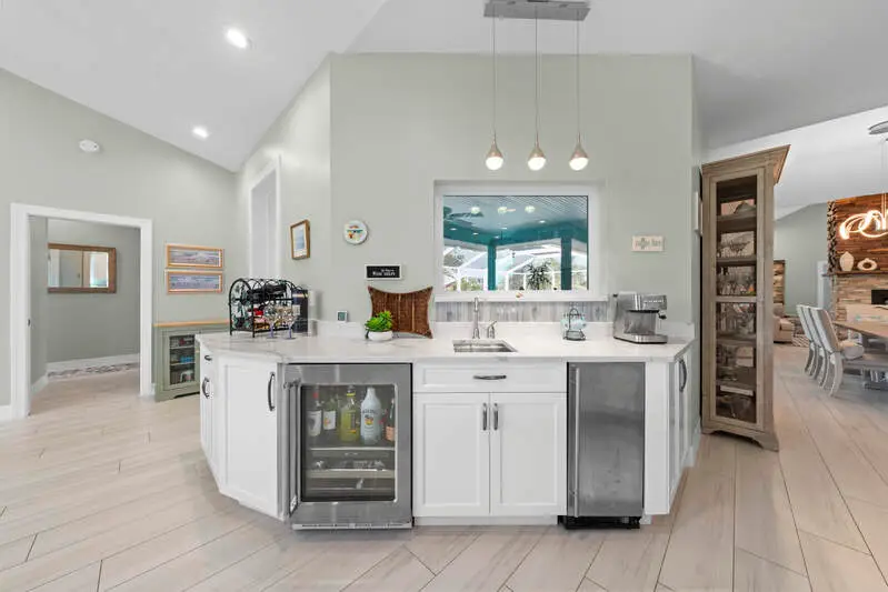 900 FEET TO THE BEACH! DIRECT GULF ACCESS CANAL! 3 LOTS! LARGE SCREENED POOL! ELEVATOR! Welcome to this breathtaking, fully remodeled 3-bedroom, 3-bath home (2 ensuite), plus den and office, perfectly situated just steps from the beach. This is an elevated home set on three expansive lots. An exceptional property that offers the ultimate coastal lifestyle with modern upgrades, beautiful outdoor spaces, and for boating enthusiasts, private dock with new 10,000 lb boat lift, and direct access to the Gulf. As you enter this home through the beautiful foyer, you're greeted by an open concept living area. The gourmet kitchen is a chef's dream, featuring stainless steel appliances, gas cooktop, quartz countertops, custom cabinetry, wet bar and coffee bar, and an oversized island perfect for both cooking and entertaining. The elegant family room and dining area, with 3-sided gas fireplace, leads to the screened porch with sliding doors that pocket back for more seating areas for relaxation, and overlook the oversize pool. The soothing primary suite includes a fantastic shower with multiple showerheads. The split bedroom floor plan includes 2 additional spacious bedrooms and bathrooms. Step outside and appreciate the professional landscaping, enjoy a refreshing swim in the pool, go boating, or to the beach, and take in the gorgeous sunsets. Whatever you desire, this home won't disappoint!