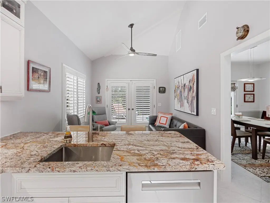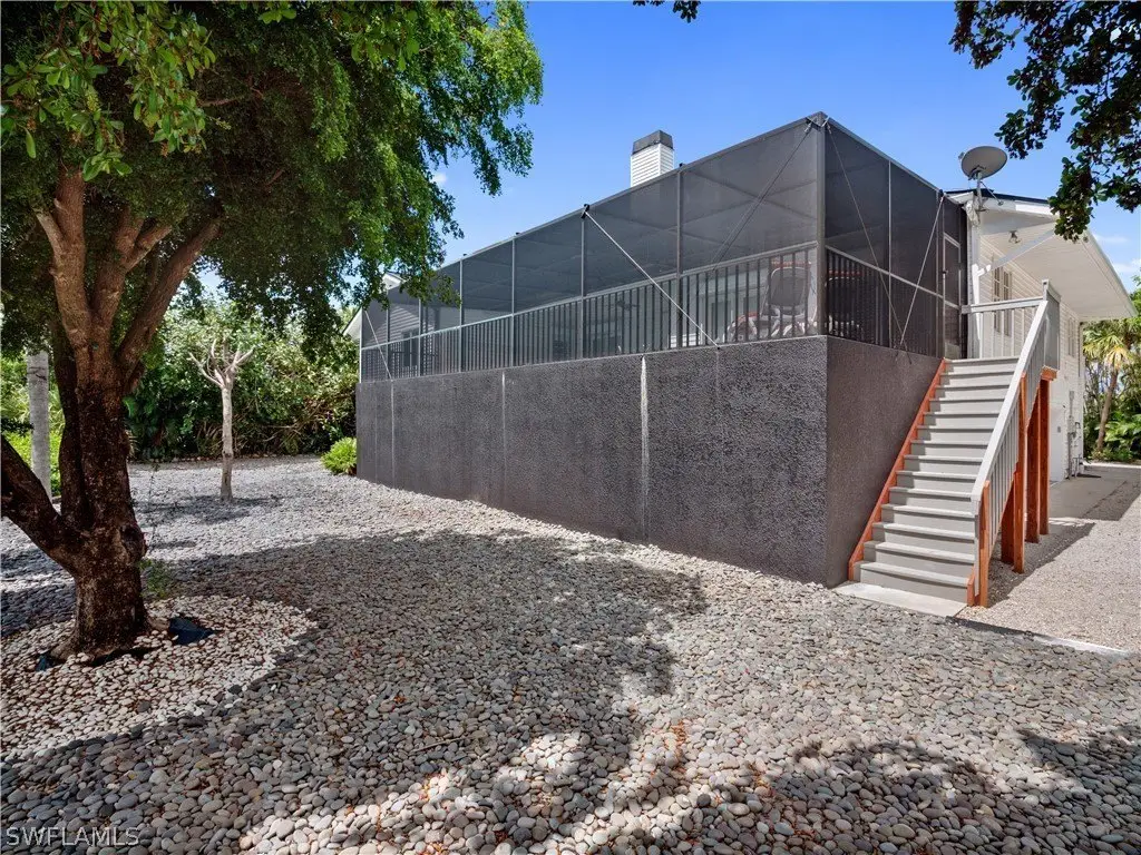 This impeccably located Old Florida-style lakefront 3/4 Bedroom home offers an ideal blend of privacy and convenience. Nestled on the east end of the island, it boasts 180+/- feet of serene lake frontage on an oversized lot with mature native vegetation and lush landscaping, providing stunning lake views. The location ensures easy access on and off the island, perfect for year-round residents. This well-maintained home, fully updated and ready to be your forever home, features a grand entrance with a winding drive, a grand staircase, and a private elevator. The raised caged pool, recently resurfaced with new pavers, is a standout feature, complemented by large porches, abundant deck space, and a new metal roof (2024). Inside, the main living level boasts high ceilings, a cupola, and a fireplace in the great room. The master suite offers his and hers baths, while two guest suites each have private baths. Additional spaces include a den with a half bath, a huge loft area, a formal dining room, and a kitchen with high-end Bosch and Monogram appliances. Modern comforts are ensured with a new mini split AC unit, updated AC ductwork, a new dishwasher, and two new water heaters. The lower level includes three large garage bays and ample storage and recreational space. This home combines timeless style with contemporary updates in a secluded, yet accessible, setting.