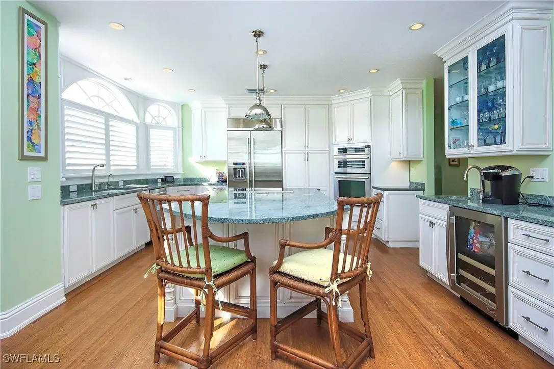 Don't miss the opportunity to own in the exclusive and small private boating and beach neighborhood of Victoria Cove. Made up of only 7 homes, this home features an elevator that provides convenient access from the ground to the fabulous, master suite. 970 Victoria Way has everything you need to enjoy island living. This stunningly remodeled home is located directly across the street from the Gulf where there is deeded beach access along with private beach parking. Your dock and 20,000# boat lift with all new mechanical and remote controls are located behind your home. A few of the features of this lovely home are impact glass windows and sliders with 10+ ceilings and trayed ceilings. The warm, bamboo wood flooring is throughout the home. The oversized kitchen and living room are designed with entertaining in mind. The kitchen features top of the line stainless appliances, large breakfast bar and premium granite. Stunning views of the canal from the kitchen, living room and lanai. The lanai features an outdoor kitchen. A beautiful premium elevator services all areas of the home. A magical, two-story library features custom designed steps taking you to the private library and reading area off the primary bedroom suite . The spacious primary suite includes elevator access, morning kitchen and private balcony with access to the rooftop sundeck where you can enjoy the views of the gulf waters. The primary bathroom features a large, walk-in shower, separate his and her vanities, his and her walk in closets with built in shelving and a soaking tub. Plenty of space for entertaining with 3 bedrooms, 3 1/2 baths. The murphy bedroom and play nook is perfect for grandchildren. Extensive storage throughout the home, six + porches, professionally landscaped yard, fenced salt water pool & spa with new wifi controlled equipment in 2023. Top of the line brand new 21 Seer HVAC units in 2023. The owners thought of everything when remodeling this home including easy, low maintenance. The entire home has Hardie Board siding with PVC trim, IPE front stairs and porch. A major addition was completed in 2017 that included 2 dormers and 2 added rooms along with a new metal roof. Large 2 car garage plus extra storage for a small car/cart and tool storage. No interior damage from any storm. Victoria Cove is a small community on the convenient east end of Sanibel with boating access and convenient beach access a two-minute walk away. The home is being sold unfurnished, but furnishings are negotiable.