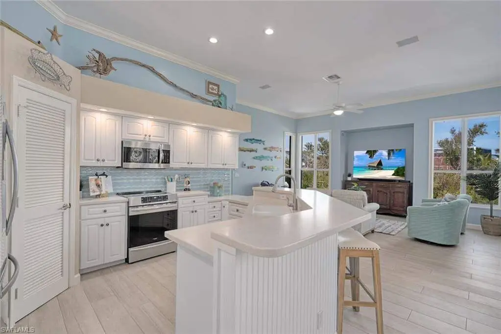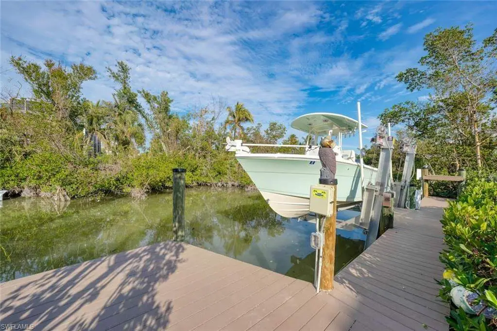 Boaters and beach lovers - this is THE ONE! Welcome to Your Tropical Retreat on Sanibel Island! This stunning 3-bedroom + den, direct Gulf-access home offers the ultimate in island living. Located just minutes from the Bay and the Gulf of Mexico, your private composite wood boat dock with 7.5lb lift sets the stage for unforgettable days on the water - whether you're boating, fishing, shelling, or simply soaking in the serene beauty of Sanibel. Just steps from the beach, you can hear the waves from your front door, while your back deck offers front-row seats to Florida's incredible wildlife - dolphins, manatees, nesting birds, and more. Perfectly positioned to capture breathtaking sunrise and sunset views, this home invites you to live in harmony with nature. Inside, you'll find a meticulously maintained and thoughtfully designed layout featuring soaring ceilings, plank tile flooring throughout, and abundant natural light. The spacious kitchen is a chef's dream - complete with modern finishes, generous counter space, and a welcoming flow for entertaining. The primary suite is a luxurious sanctuary with ample closet space, a separate soaking tub, a custom glass walk-in shower, and gorgeous quartz countertops embedded with sea shells - a true coastal touch. Each of the three bedrooms includes walk-in closets for plenty of storage, while the den offers versatility as an office, gym, or easily a fourth bedroom. A 2-car attached garage provides plenty of space for vehicles and toys, and an expansive lower-level storage/workshop area is ideal for hobbies or stowing all your gear. Built solid with concrete construction and a newer metal tile roof (2022), this home is designed to weather the elements with ease. The seller has already paid for premium Marvin Coastline impact windows and doors, scheduled for professional installation by Sanibel Glass on December 15th - delivering peace of mind and added value. Located on Sanibel's desirable west end, where "island time" begins, you're steps from the beach, close to over 26 miles of bike paths, and just minutes from the restaurants and shops of Captiva Island. This is more than a home - it's a lifestyle. Experience the very best of island living today.