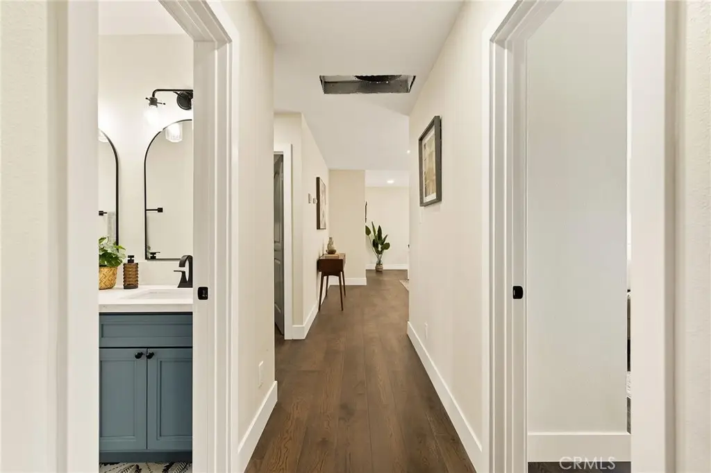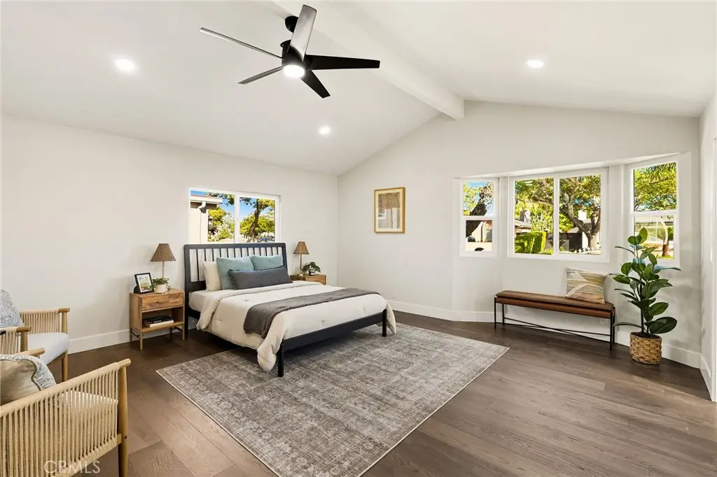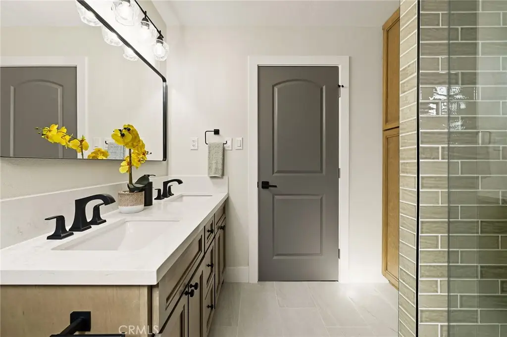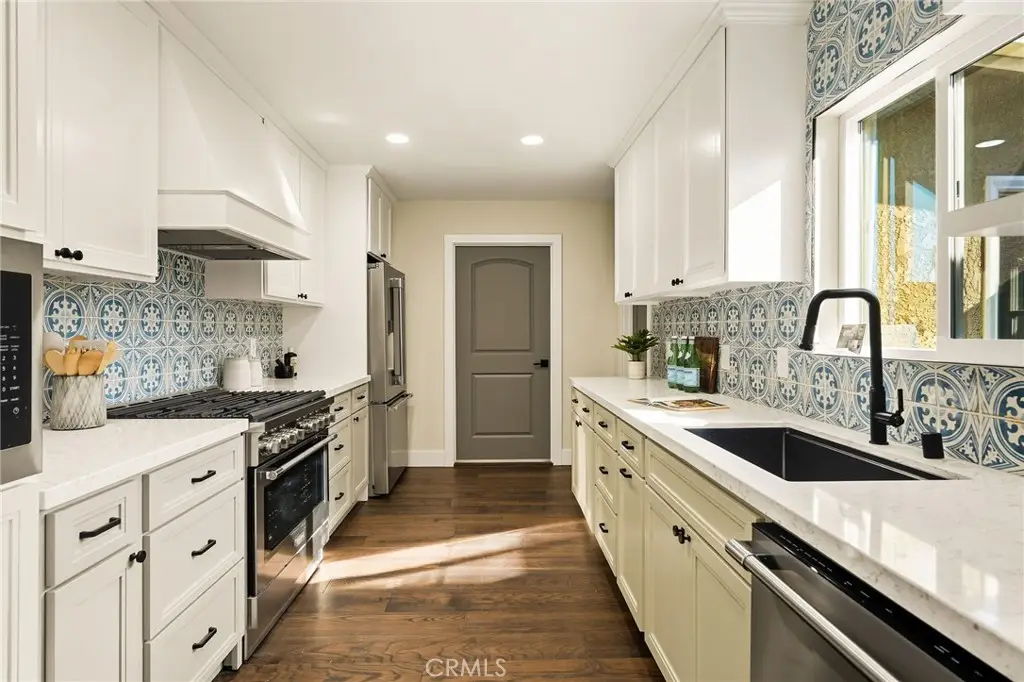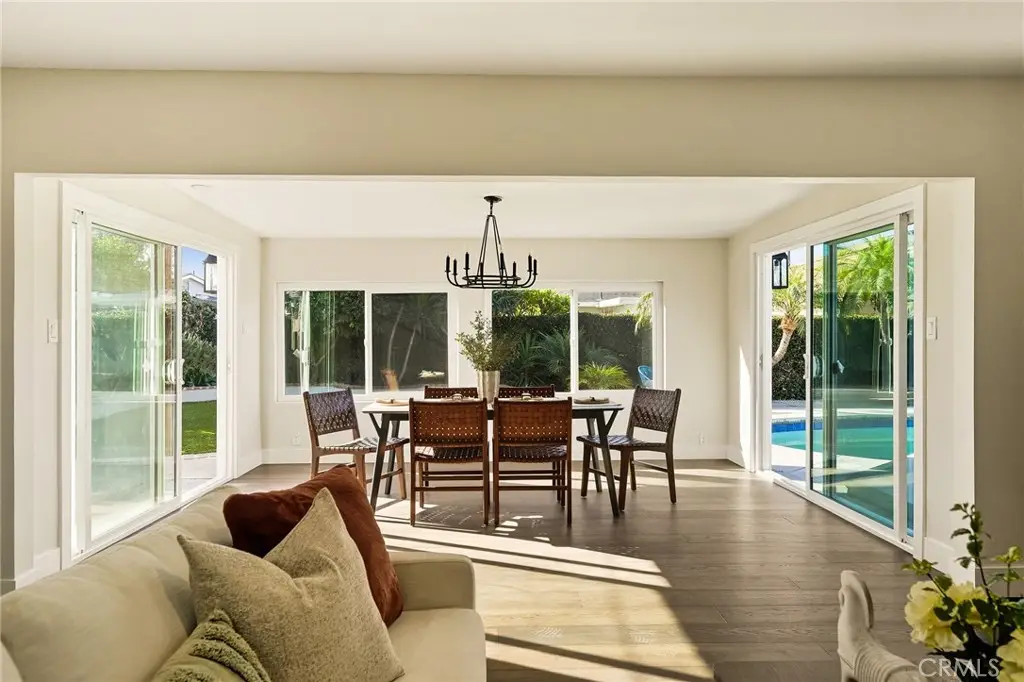 Welcome to this beautifully UPDATED 5 bedroom, 2-bathroom pool home. This home has an inviting curb appeal with an enclosed landscaped front yard and front courtyard area with new Saltillo tile. The kitchen has been updated with new two-tone cabinets, sleek counter tops, tile backsplash, stylish fixtures and stainless-steel appliances. The spacious primary bedroom has vaulted ceilings, a large walk-in closet with custom built-ins, and ensuite bathroom. Both the primary and hall bathroom feature new double sink vanities, stylish new fixtures, and custom tile work. Other features include freshly painted interior and exterior, new engineered hardwood flooring throughout the living area and bedrooms, new energy efficient vinyl windows, new plumbing and light fixtures, upgraded electrical panel, HVAC, new garage door and motor, and spacious indoor laundry room. This home is great for fun and entertainment with a great outdoor space. The private enclosed backyard has a large, covered patio, manicured yard and sparkling in ground pool and spa. There is a two-car garage and additional off-street driveway parking. Tax rolls show different bedroom and bath count and square footage.