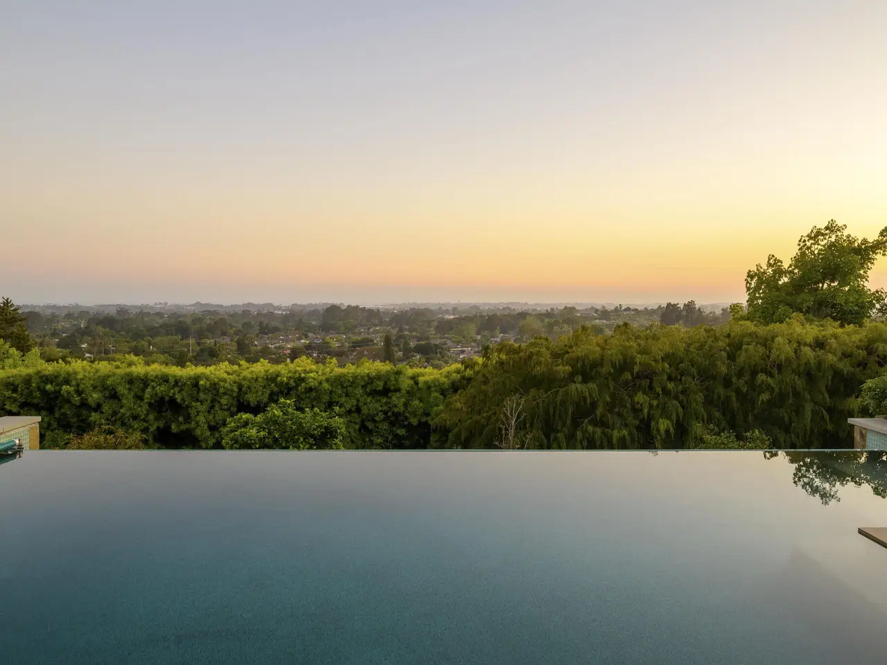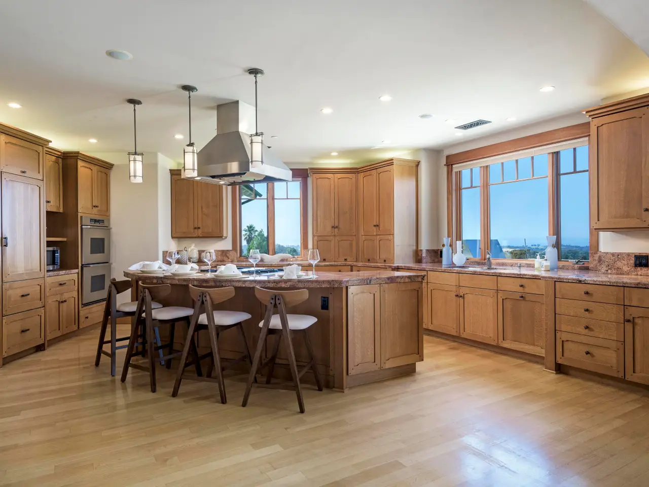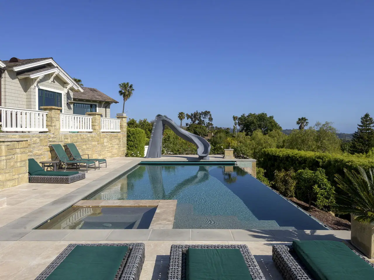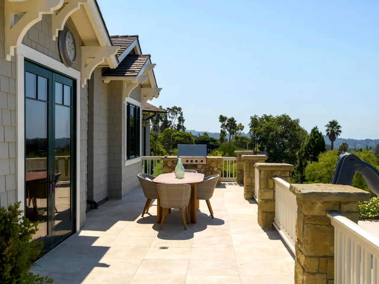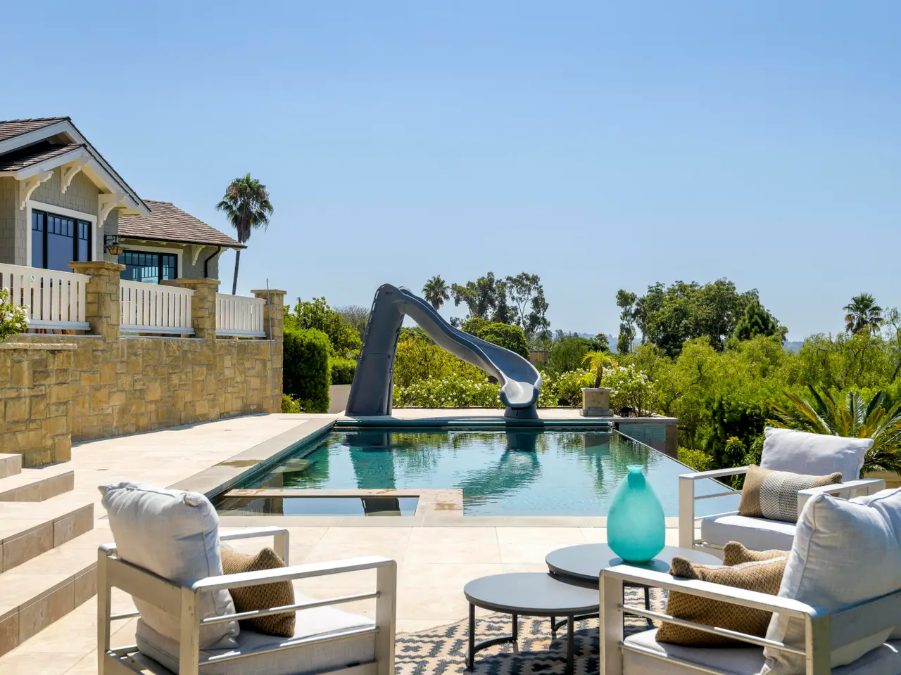 Perched on a Park Highlands promontory with 180-degree ocean, island, and mountain views, this modern Craftsman-inspired retreat offers luxurious living and year-round sunsets. Enjoy Santa Barbara's iconic pink mountain moments from expansive view decks, an infinity pool, and lush, fruit-filled gardens. Inside, rich Arts & Crafts details include natural wood, stonework, built-ins, and a spacious kitchen opening to a great room with fireplace and bar. Views surround the formal living, dining and family rooms which are framed by classic Craftsman pillars and rich wood detail. The primary suite is a serene escape with spa bath, fireplace, and private balcony. All bedrooms feature ensuite baths and walk-in closets. A separate-entry suite adds flexible space for guests, gym, or office.
