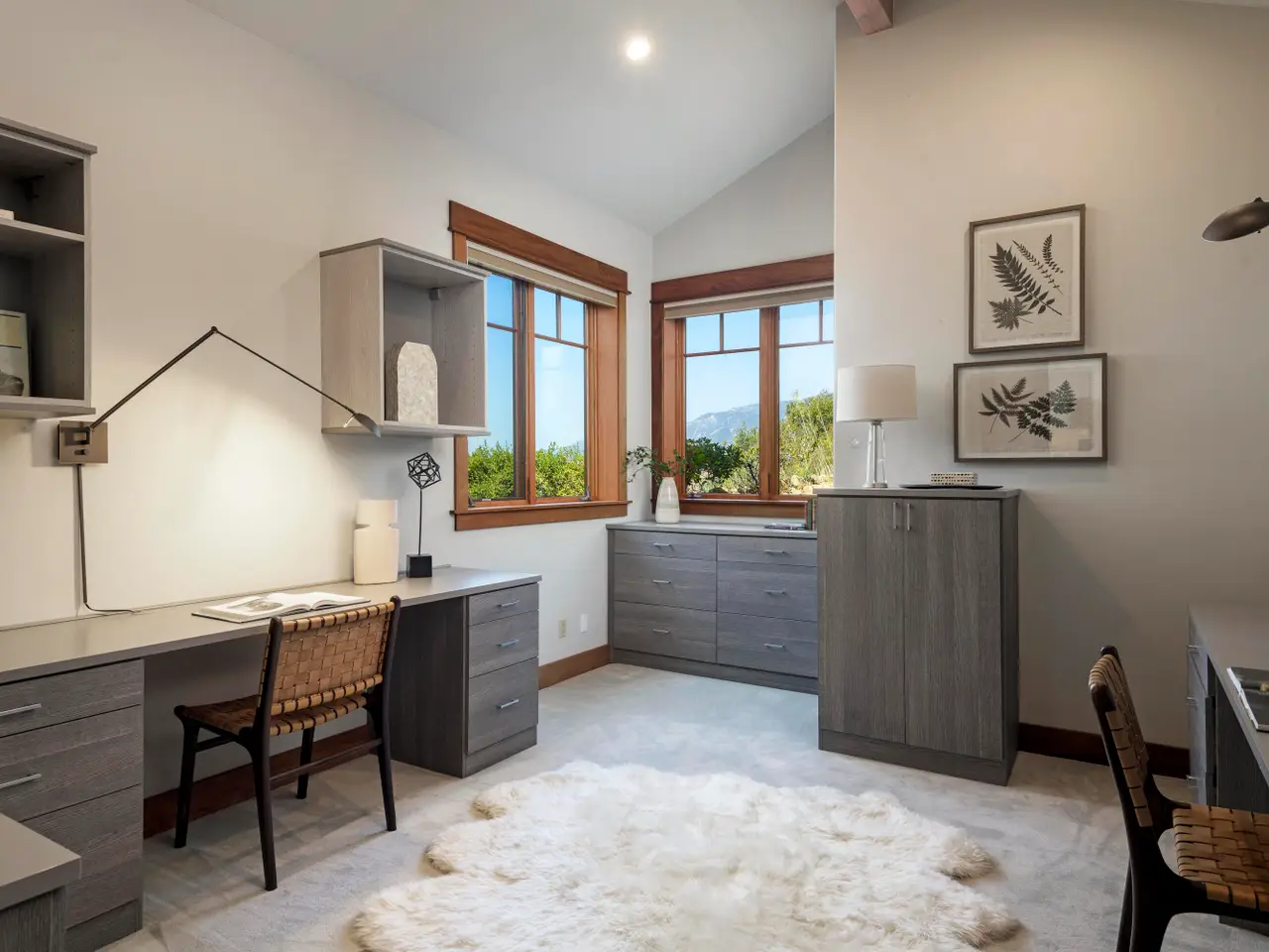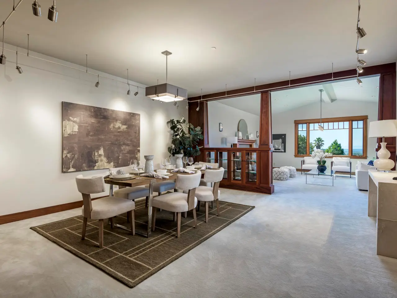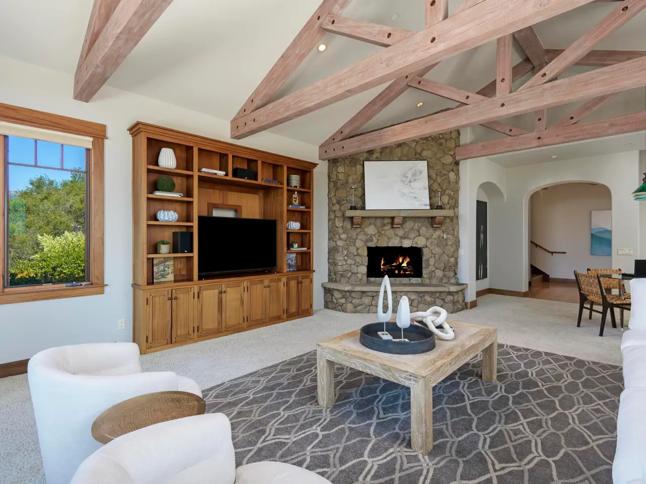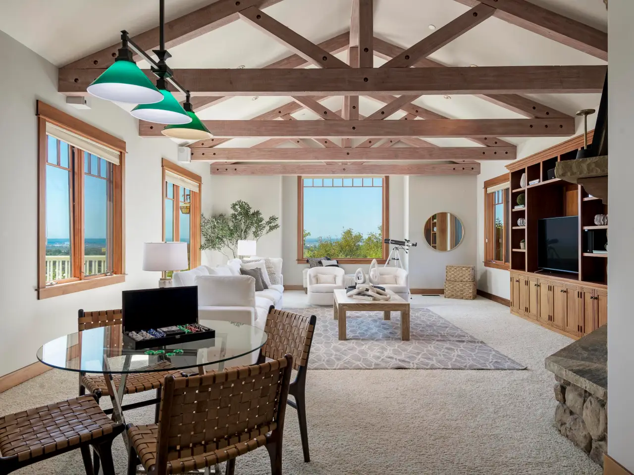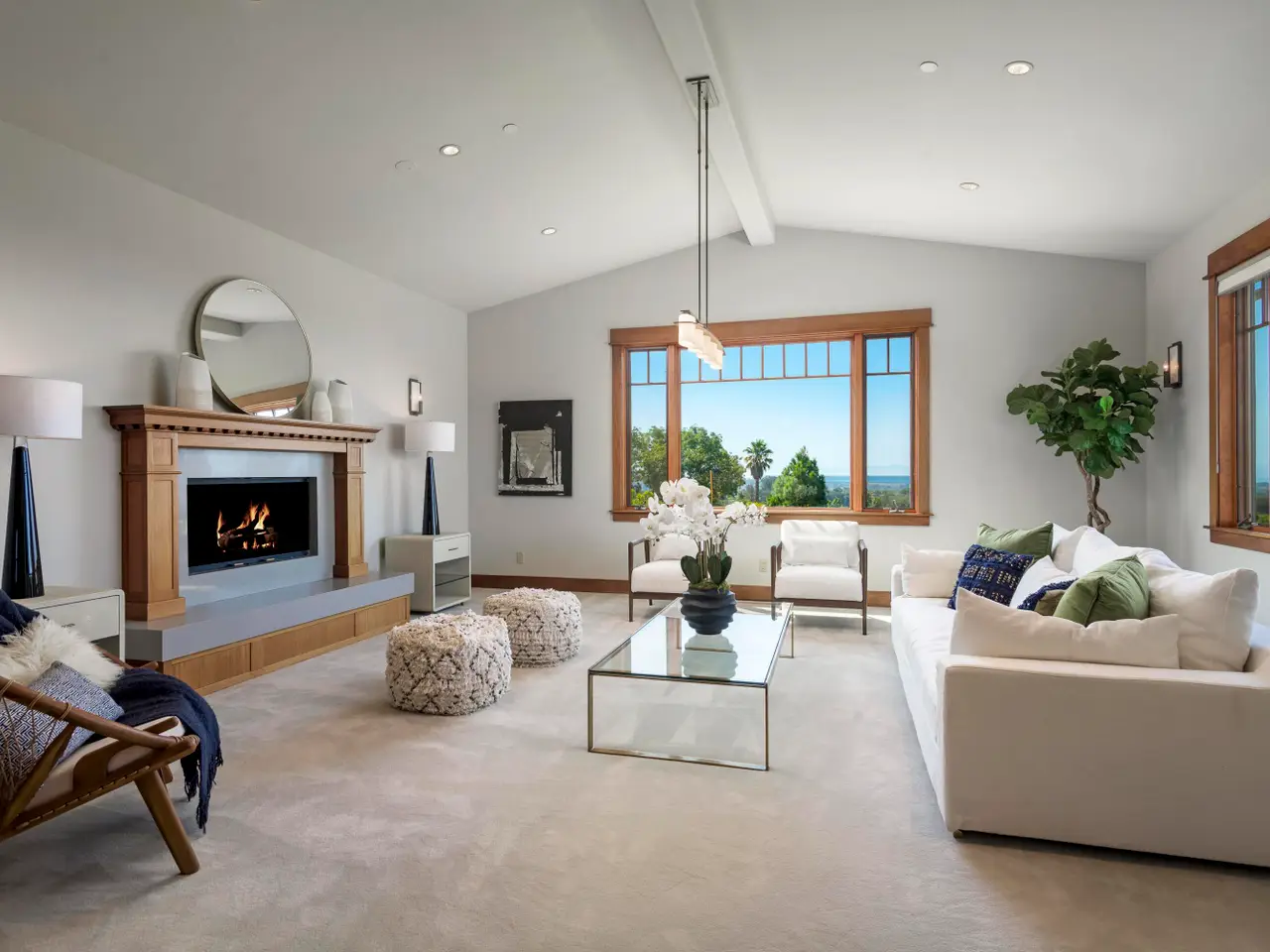 Perched on a Park Highlands promontory with 180-degree ocean, island, and mountain views, this modern Craftsman-inspired retreat offers luxurious living and year-round sunsets. Enjoy Santa Barbara's iconic pink mountain moments from expansive view decks, an infinity pool, and lush, fruit-filled gardens. Inside, rich Arts & Crafts details include natural wood, stonework, built-ins, and a spacious kitchen opening to a great room with fireplace and bar. Views surround the formal living, dining and family rooms which are framed by classic Craftsman pillars and rich wood detail. The primary suite is a serene escape with spa bath, fireplace, and private balcony. All bedrooms feature ensuite baths and walk-in closets. A separate-entry suite adds flexible space for guests, gym, or office.