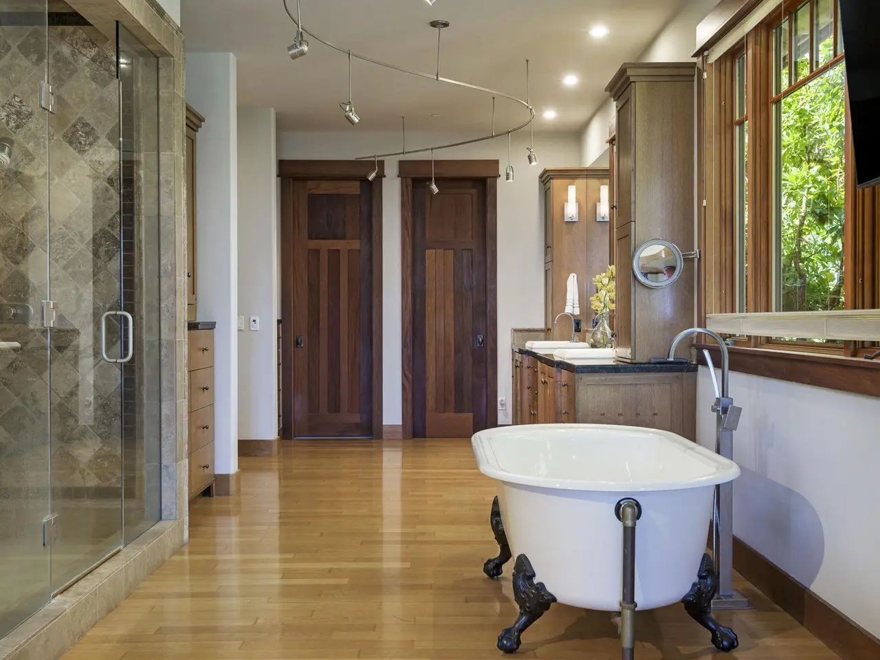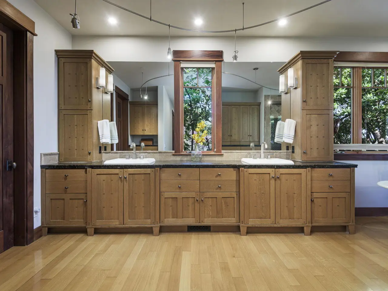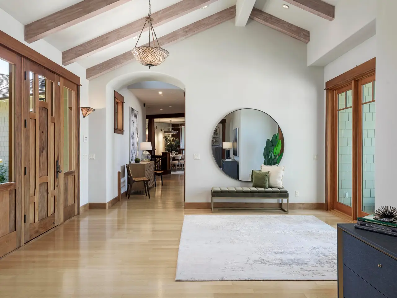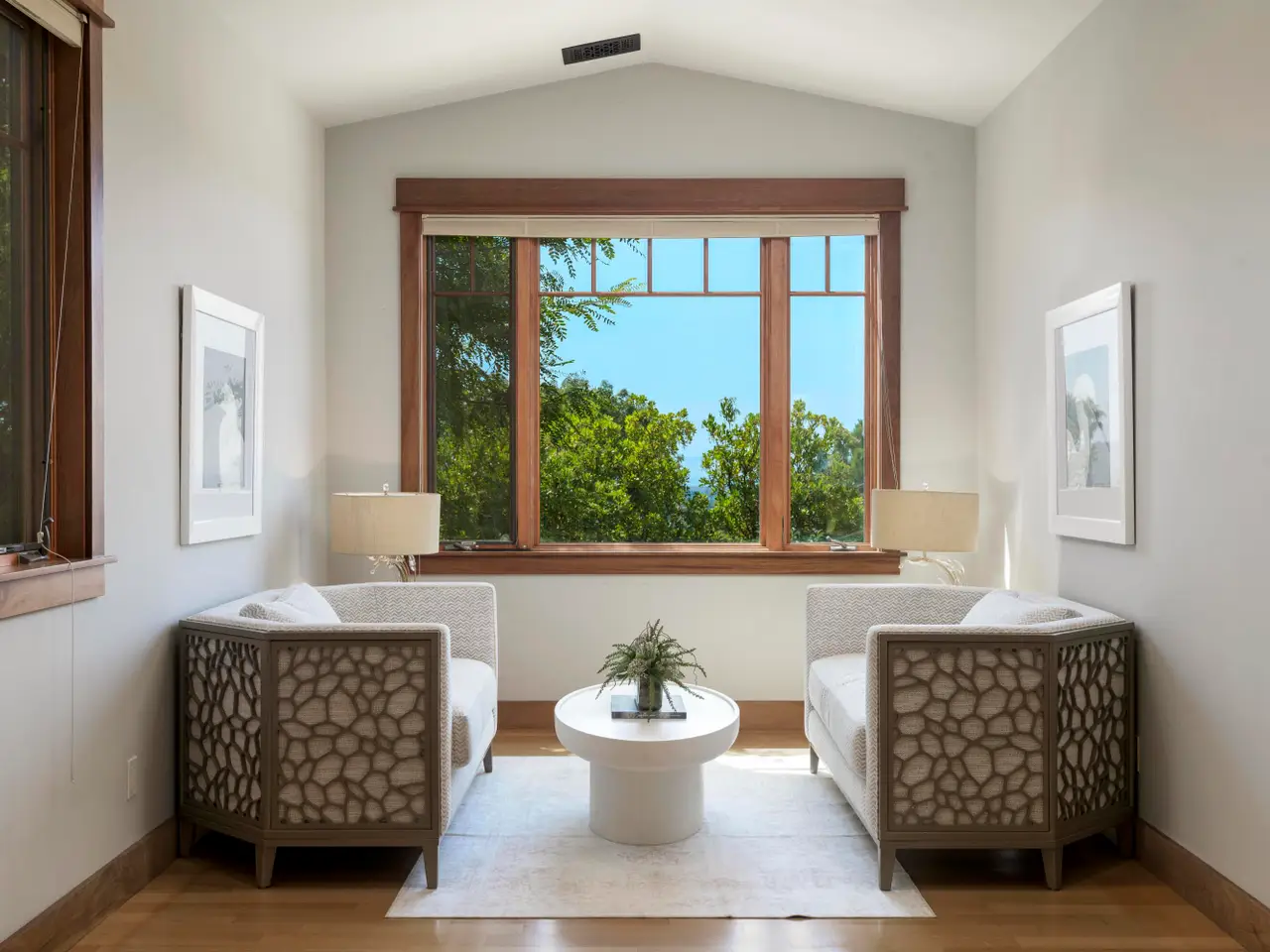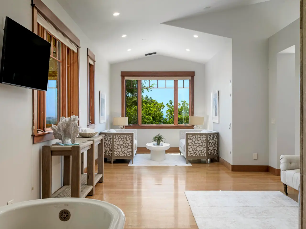 Perched on a Park Highlands promontory with 180-degree ocean, island, and mountain views, this modern Craftsman-inspired retreat offers luxurious living and year-round sunsets. Enjoy Santa Barbara's iconic pink mountain moments from expansive view decks, an infinity pool, and lush, fruit-filled gardens. Inside, rich Arts & Crafts details include natural wood, stonework, built-ins, and a spacious kitchen opening to a great room with fireplace and bar. Views surround the formal living, dining and family rooms which are framed by classic Craftsman pillars and rich wood detail. The primary suite is a serene escape with spa bath, fireplace, and private balcony. All bedrooms feature ensuite baths and walk-in closets. A separate-entry suite adds flexible space for guests, gym, or office.