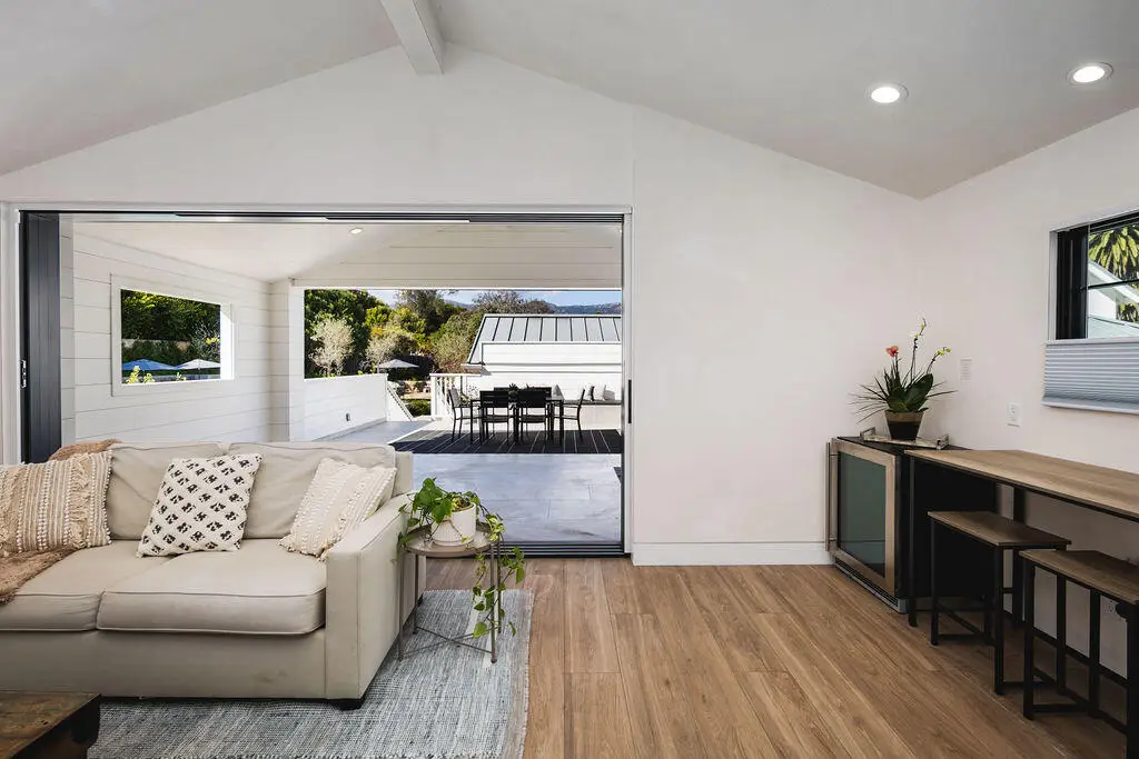 Step into the future of luxury living with this newly built Smart Home, tucked behind the exclusive gates of Hope Ranch--one of Santa Barbara's most coveted coastal enclaves. Surrounded by natural beauty and equestrian charm, this Contemporary Farmhouse blends timeless design with cutting-edge technology for effortless California living. Inside, soaring 27-foot vaulted ceilings and sun-drenched interiors create a sense of openness and ease. At the heart of the home, a spacious great room with a bi-fold door spanning 20 feet that opens to a resort-style backyard with a pool, spa, firepit, and expansive courtyard patio--perfect for entertaining or relaxing under the stars. A sleek glass fireplace adds warmth and modern elegance. The chef's kitchen impresses with a massive island finished in honed Calacatta antique porcelain, a 60' Wolf range, and dual full-size Sub-Zero refrigerators built for both daily living and large gatherings. The primary suite is a private retreat with vaulted ceilings, spa-inspired features including a soaking tub and steam shower, an oversized closet, and French doors that open to the backyard. Three additional bedrooms, a private office, and an expansive and multipurpose lower level provides flexible living ideal for a theater, entertainment room, or studio. A detached 1-bedroom, 1-bath guest house sits privately above the spacious 3-car garage offering a beautifully appointed space for guests or extended family. Adjacent to the garage, a dedicated fitness area provides a convenient space for workouts. Modern amenities include solar panels with four Tesla Powerwalls, dual SPAN smart panels for energy efficiency, Sonos audio, Lutron lighting, and automated shades all easily controlled by a smartphone. Benefit from Hope Ranch amenities, which include access to the private beach, 32 miles of riding and walking trails, tennis courts, top-rated schools, and tree-lined streets just minutes from Santa Barbara's best dining, shopping, and culture. A rare opportunity to own a cutting-edge Smart Home in one of California's most iconic coastal communities.