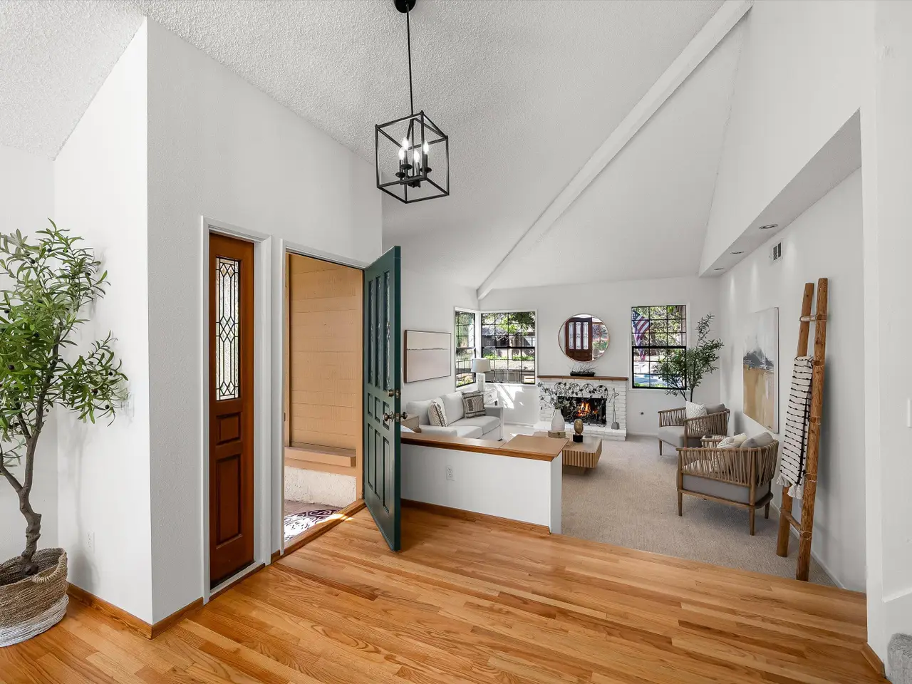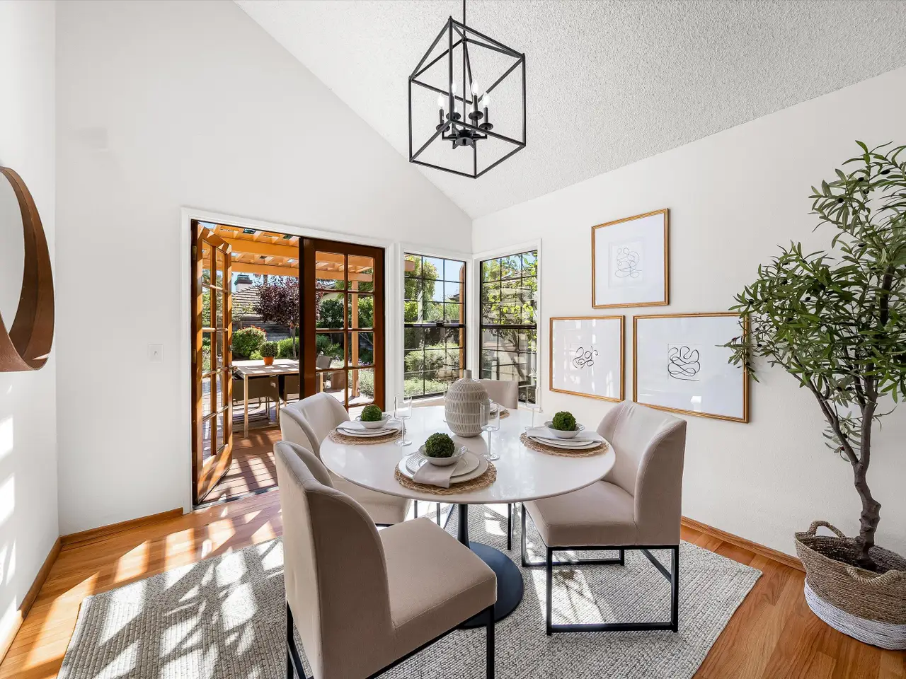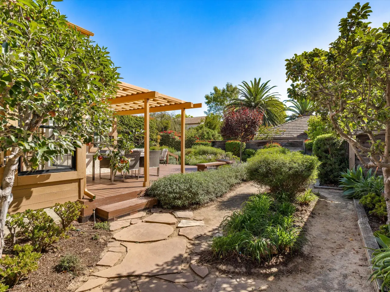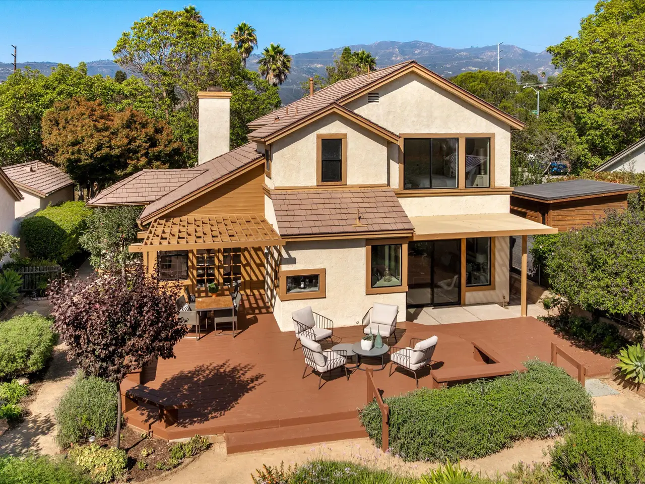 Graceful Santa Barbara Living in a Peaceful Villa San Marcos with Community Tennis/Pickleball Court. Welcome to a bright & inviting home where comfort meets lifestyle. Nestled in a serene pocket off main roads, this timeless designed residence features soaring ceilings, a formal living room with fireplace, and a casual family room that flows into a sunlit, eat-in kitchen with an abundance of cabinetry & storage, the perfect space for gathering & everyday indoor outdoor living. The home also includes a powder bath, open office area, laundry room w/sink &a two-car garage. The indoors open to your own private south facing oasis, complete beautiful landscaping, apple trees & a spacious entertaining deck with covered outdoor dining ideal for gatherings, relaxing, or enjoying quiet moments.