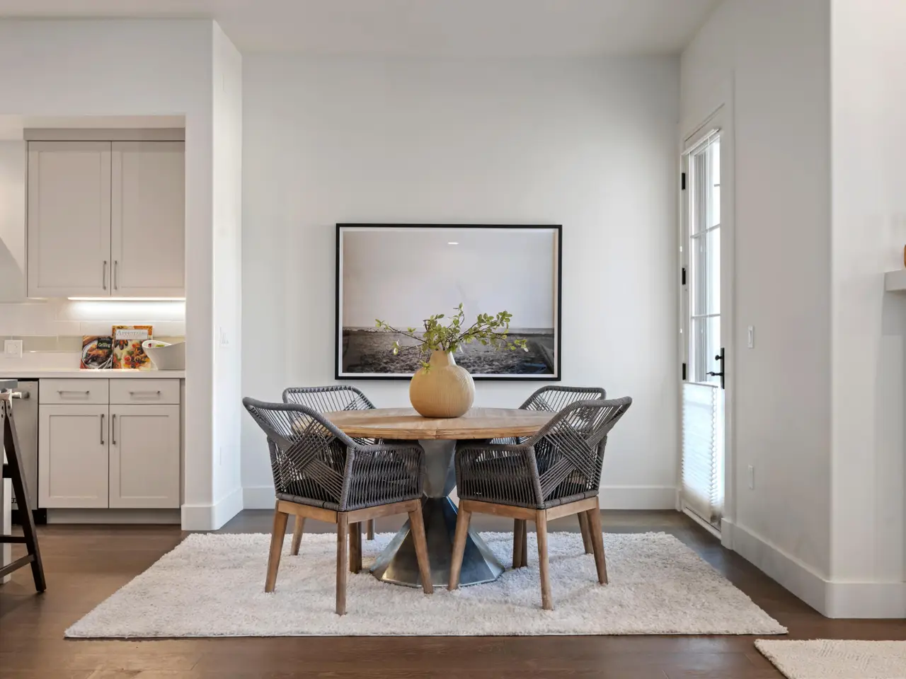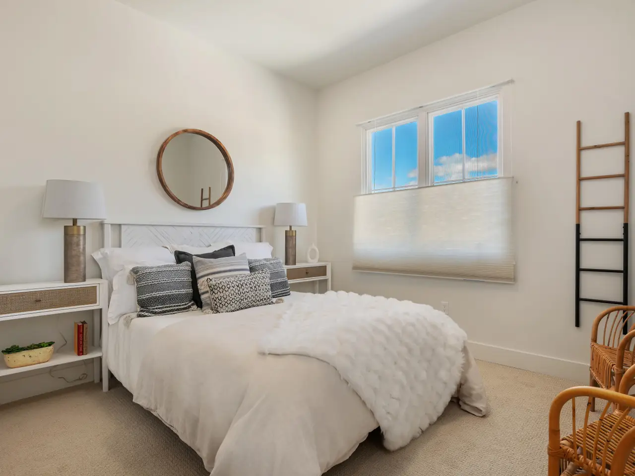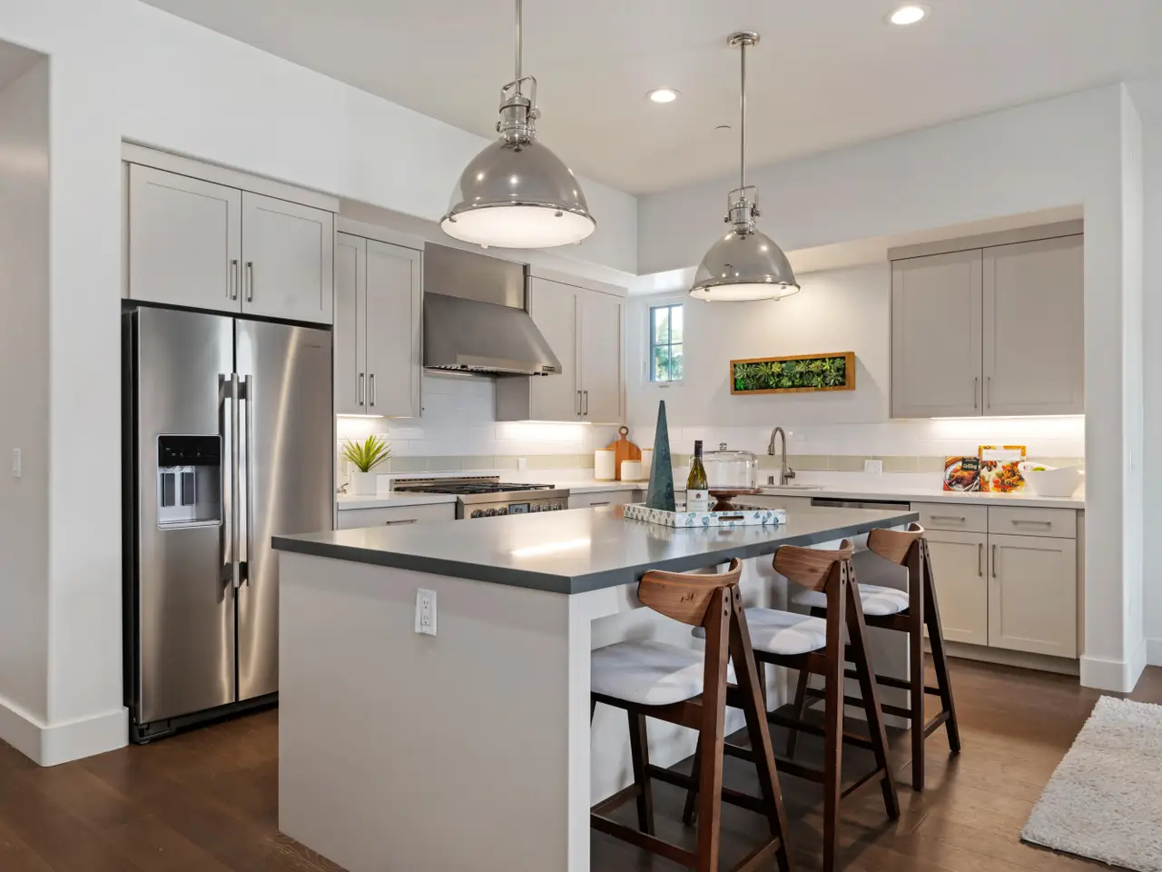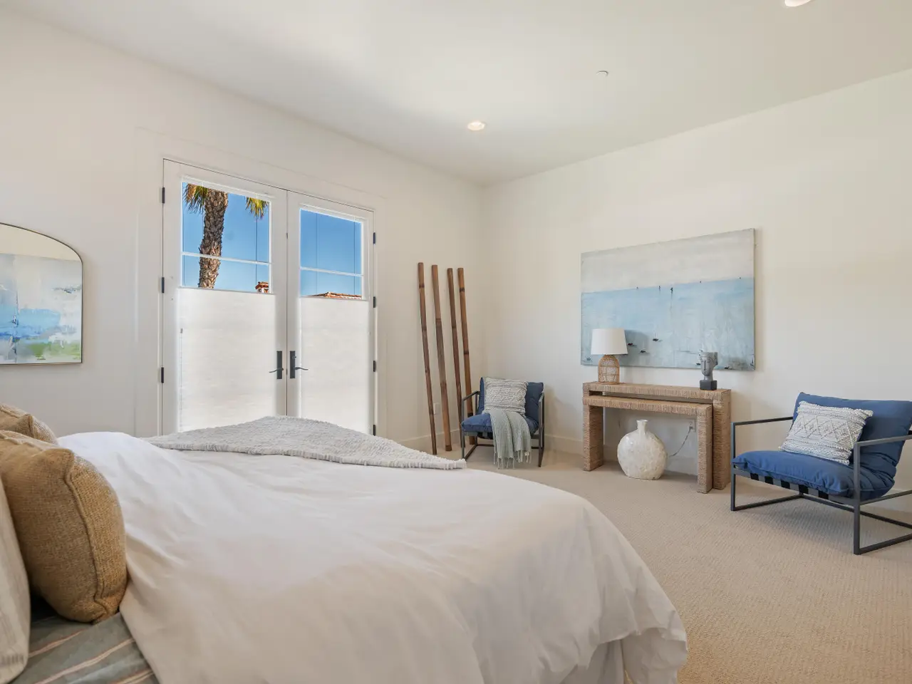 Welcome to Estancia, a contemporary enclave built in 2018 located on vibrant Upper State Street. This 2,045 sf home offers 3 bedrooms and 3 full baths, making it one of the largest in the community. Premiere location at the quiet rear of the HOA. Expansive great room with 10-ft ceilings, open living and dining, fireplace, and gourmet kitchen with island and stainless appliances. Abundant windows and a private balcony capture mtn. views. Designer touches include gray oak floors, quartz countertops, and intricate tile work. The spacious primary suite boasts a Juliet balcony, spa-like bath with dual sinks, soaking tub, separate shower, soothing mountain views, and two walk-in closets. A/C. Attached garage and a dedicated uncovered parking space. Walk to shops, dining, and La Cumbre Plaza.