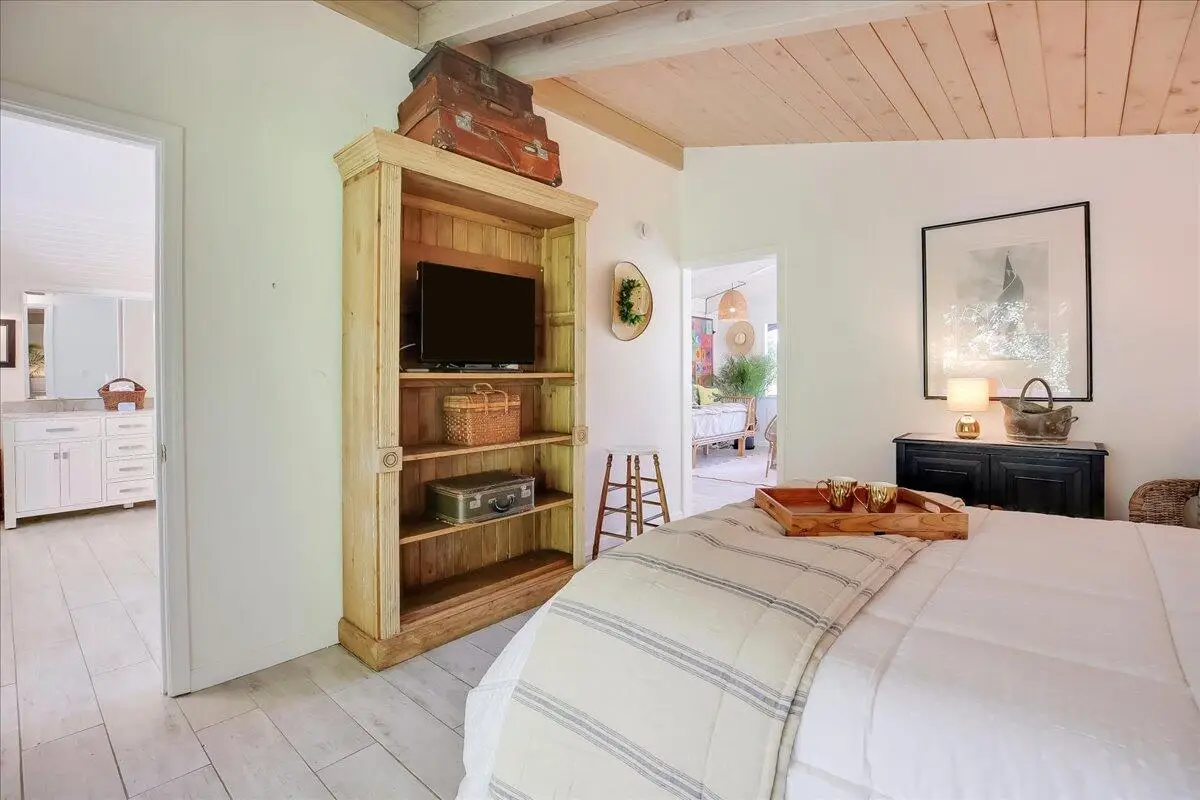 • Vaulted ceilings with whitewashed beams