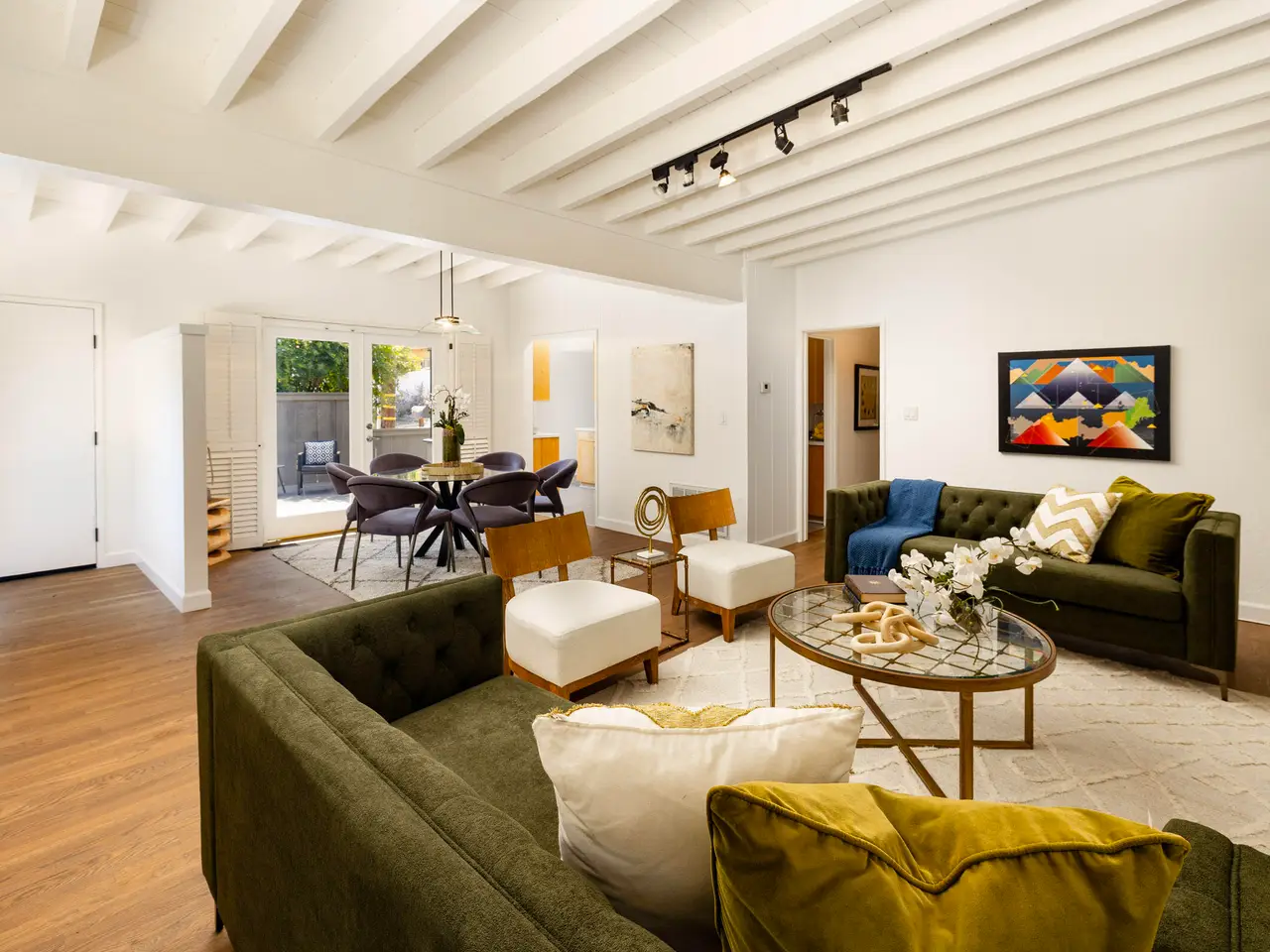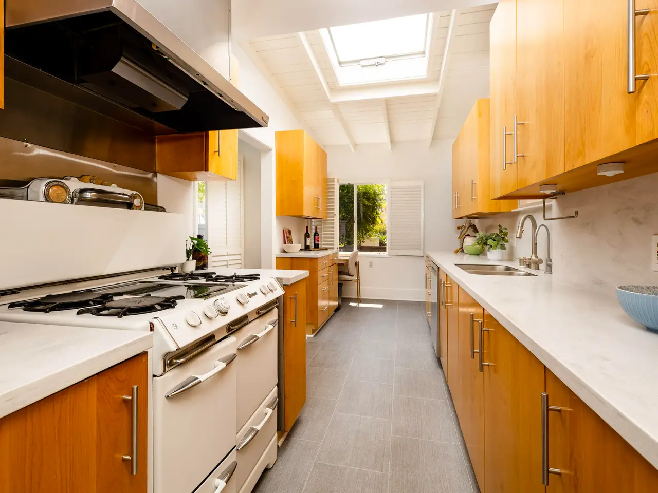 Bring Backup - Continue to Show!! Nestled close to the Mesa & in one of Santa Barbara's most desirable neighborhoods you'll stumble upon 1330 Valerio. Originally constructed in 1951 this single level mid-century modern home blends timeless design with thoughtful updates. Thirteen-thirty offers light filled living spaces, modern amenities and vintage charm. The living room features an exposed beam ceiling, solid oak floors, a wood burning fireplace, multiple skylights & a south facing bay window. The kitchen combines a vintage O'Keefe & Merritt stove with modern updates like a Bosch dishwasher & contemporary style cabinetry. Wander beyond the kitchen to an expansive primary suite which includes a large sitting area w/ a fireplace, a custom en-suite bath, laundry and French doors leading to the backyard. The second bedroom and bath are ideal for guests, family or a home office. Garden spaces feature beautiful drought tolerant landscaping, fruit trees and outdoor living spaces. Attached to the home is a fully finished 1 car garage that can be easily accessed off of Calle Cerro. This home is located in a beautiful neighborhood just a short distance to Eilings Park, Hendry's Beach & the Mesa!